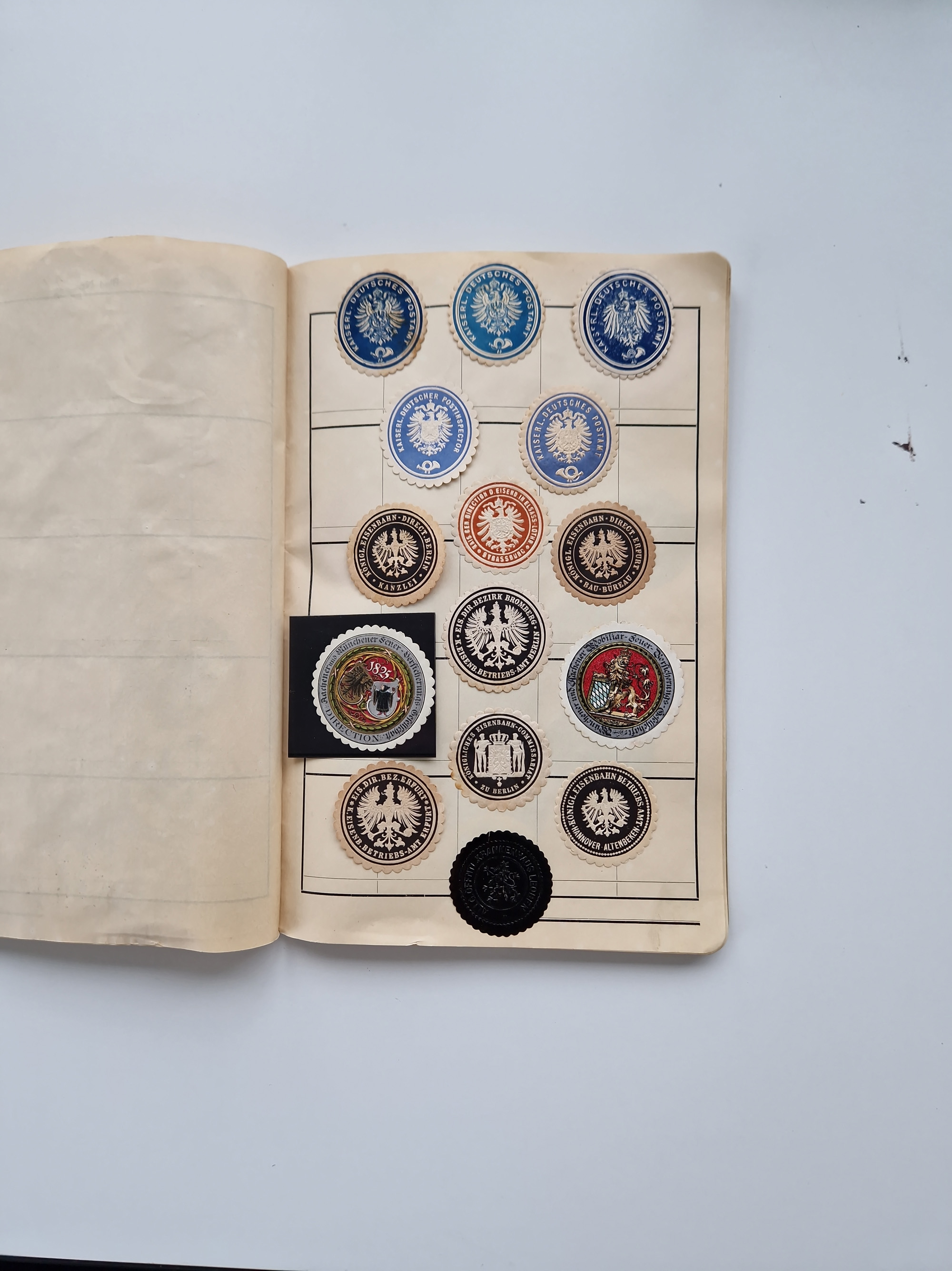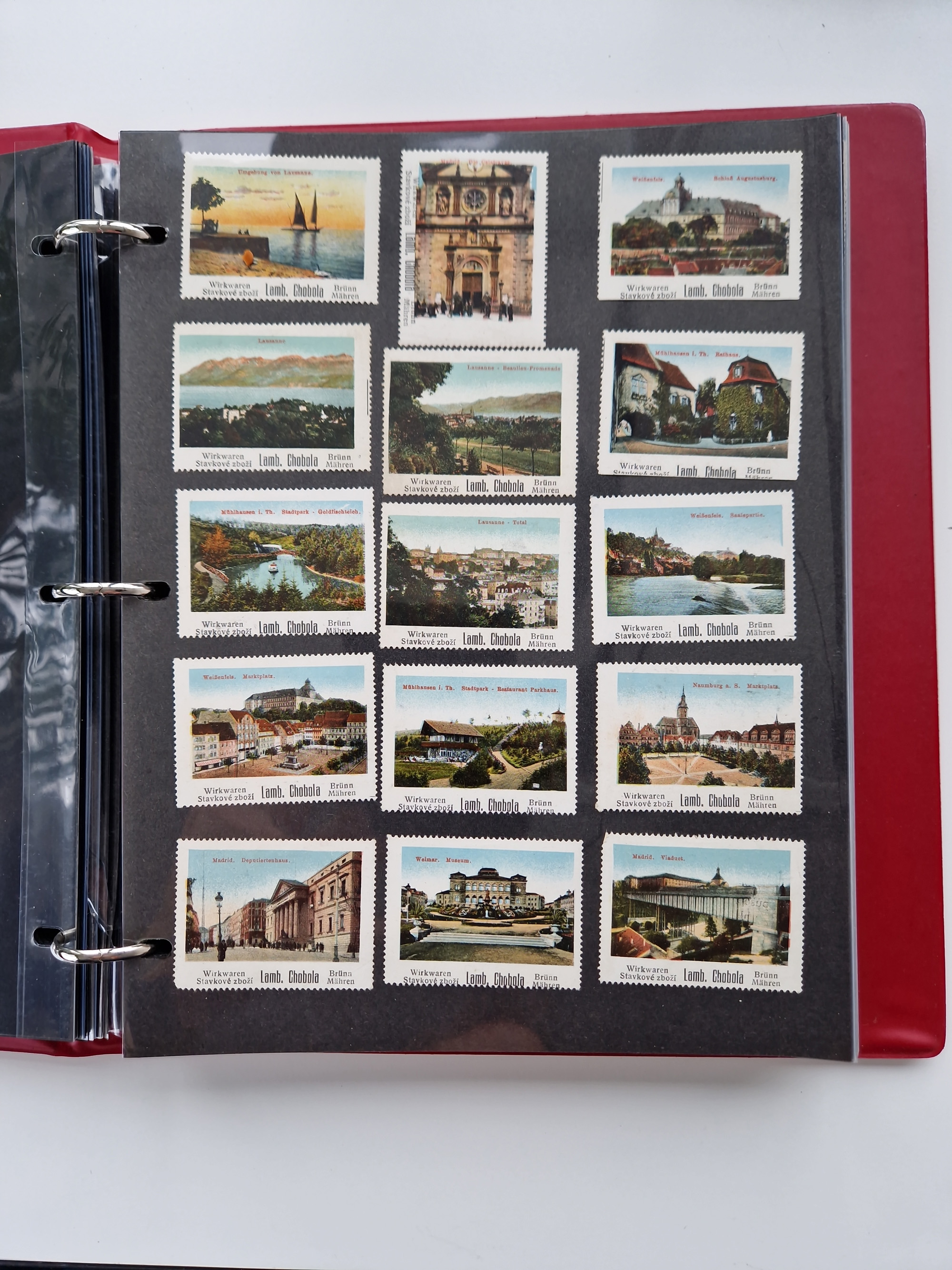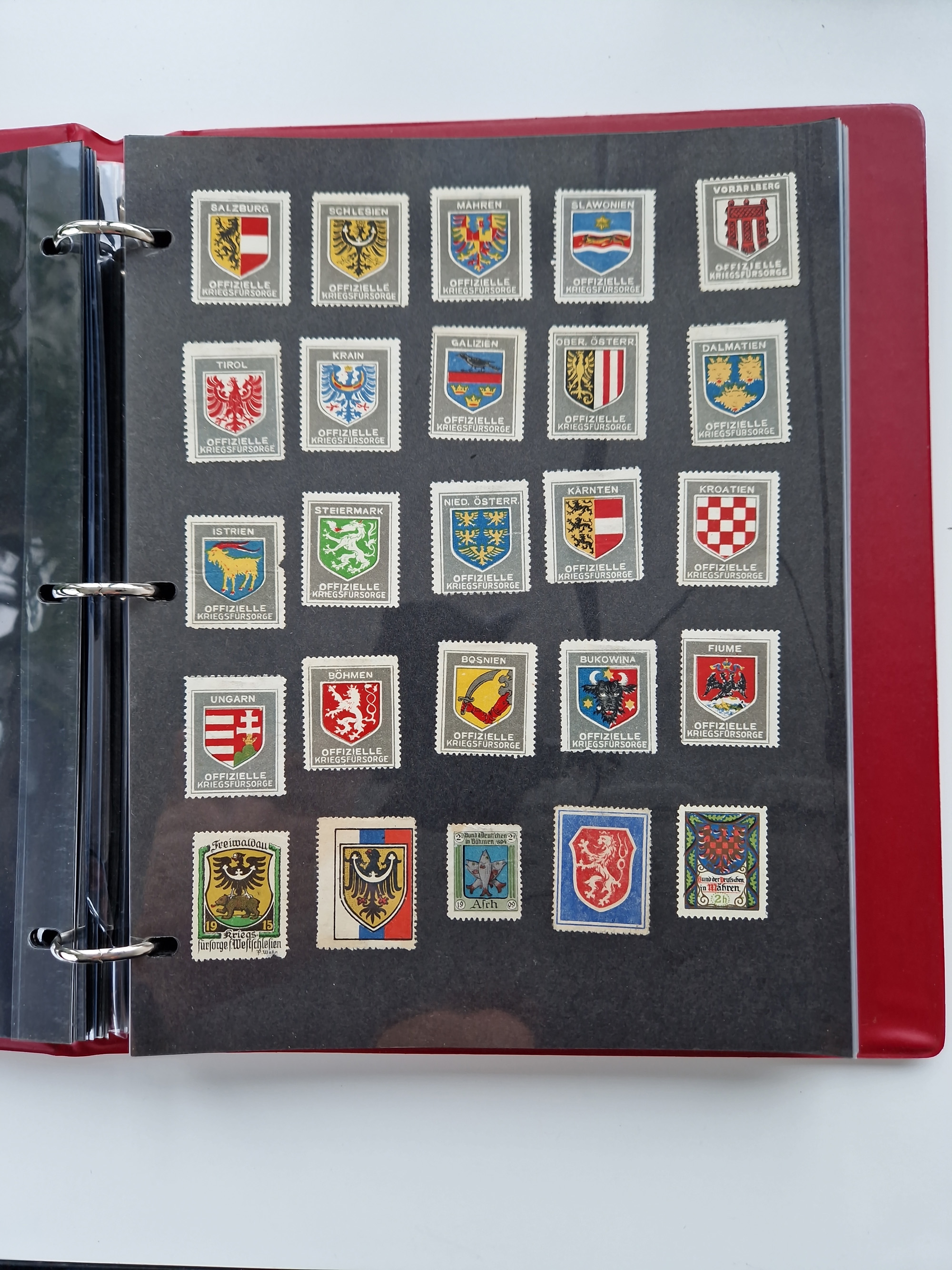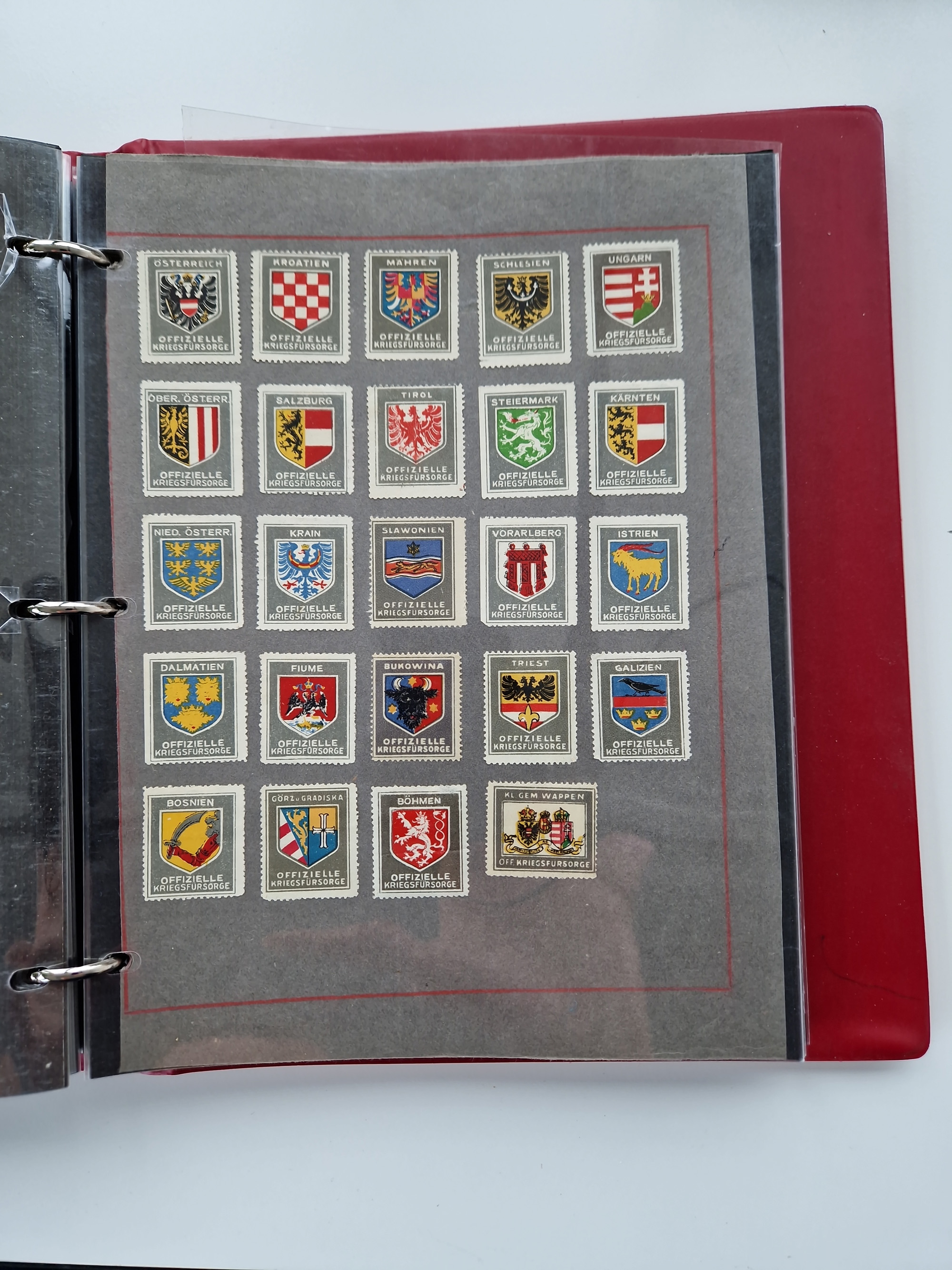 Sammelbilder-Alben: Umfangreiche Sammlung mit ca. 40 Bänden, dabei u.a. 1. WK mehrfach, Flaggen (2 verschiedene Bände), Deutsche Kolonien (2x), Wappen mit u.a. “Danziger Wappenwerk”, verschiedene Bände III. Reich mit u.a. “Männer im III. Reich”, zwei Bände “Bunte Vögel aus aller Welt” , zwei verschiedene Bände “Zeppelin”. kleinformatige Bände “Tiere”, “Vögel” und “Fauna” usw., dazu Fotobände II.WK (Band1-2) und ein Wirtschafts-Atlas der deutschen Kolonien. Bis auf wenige Bilder augenscheinlich immer komplett, Einbände zum Teil mit Spuren und kleinen Fehlern, zum Teil wie neu, in zwei Kartons