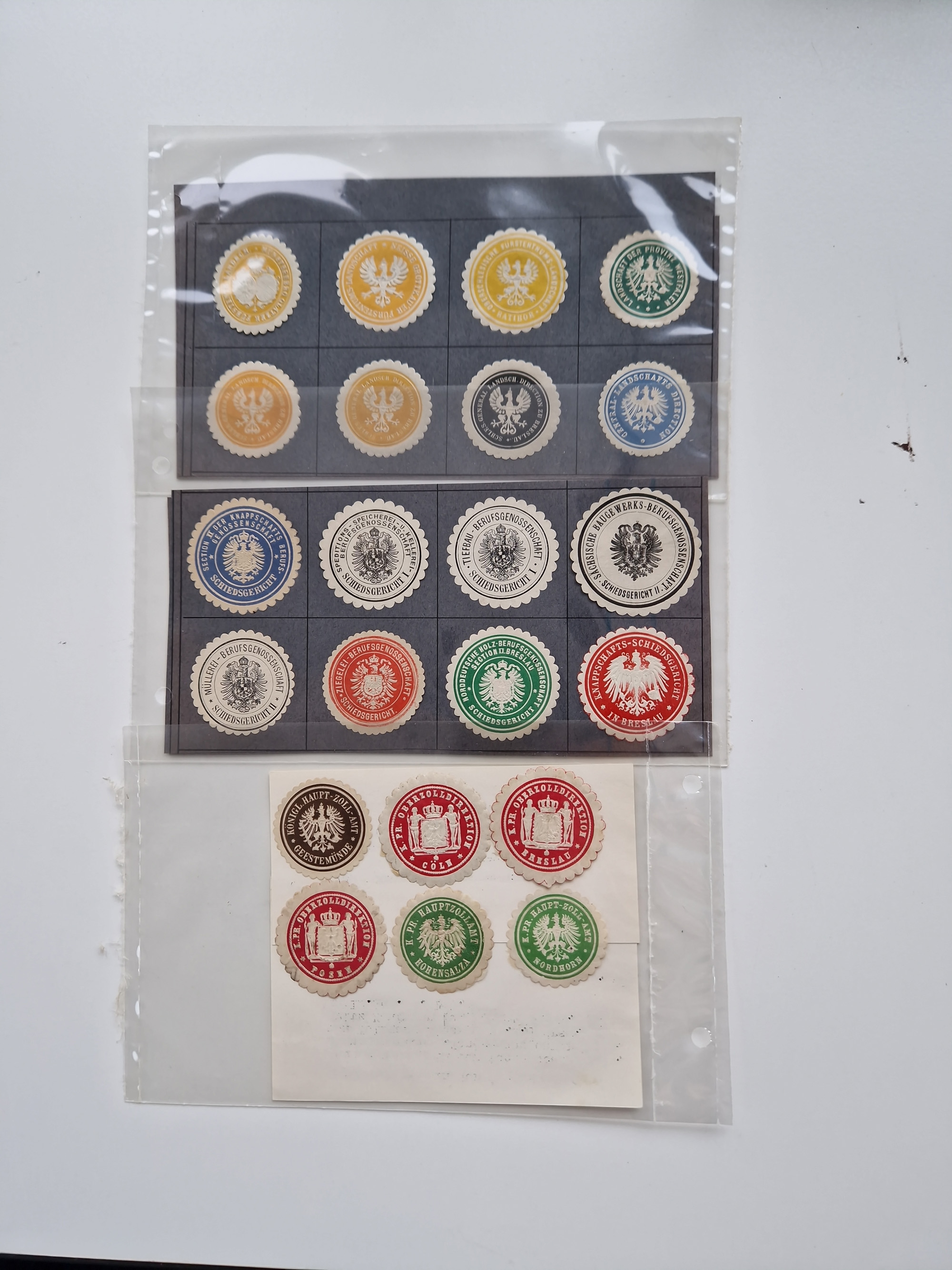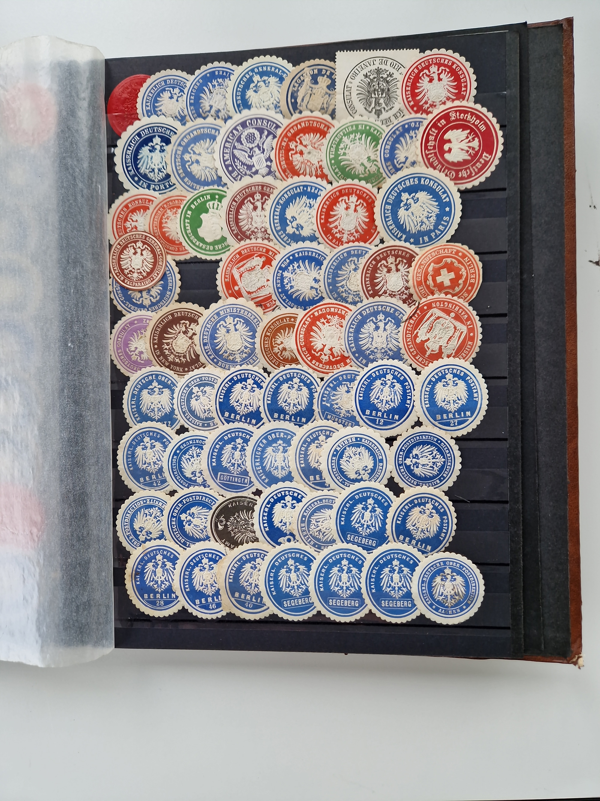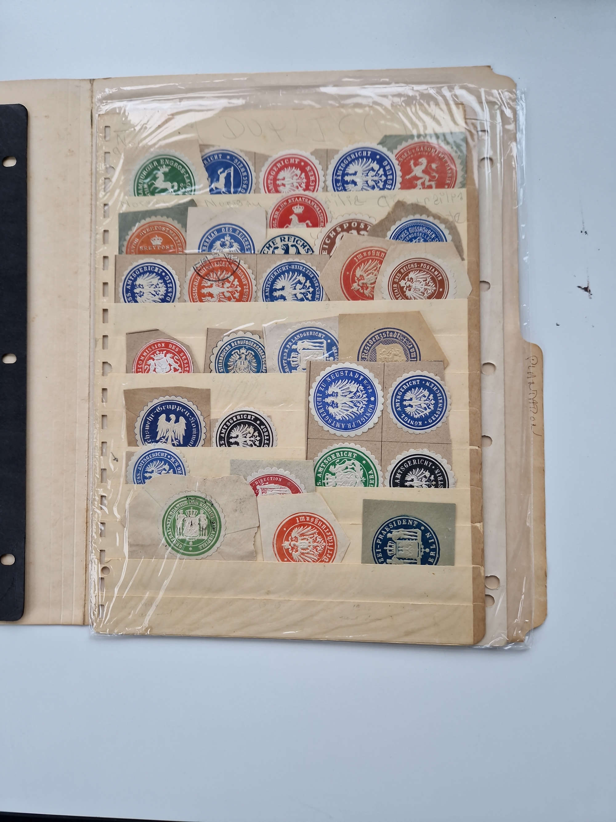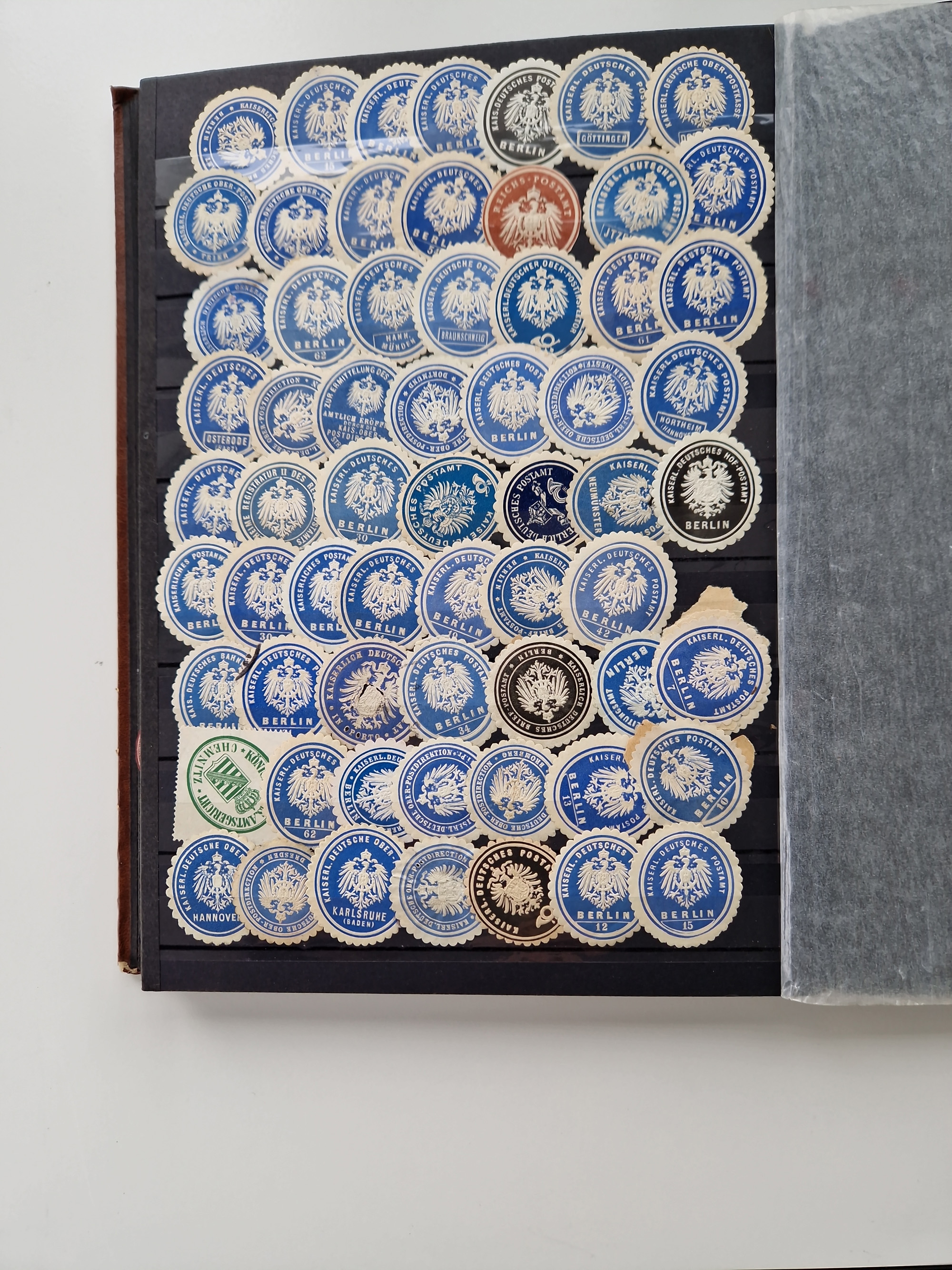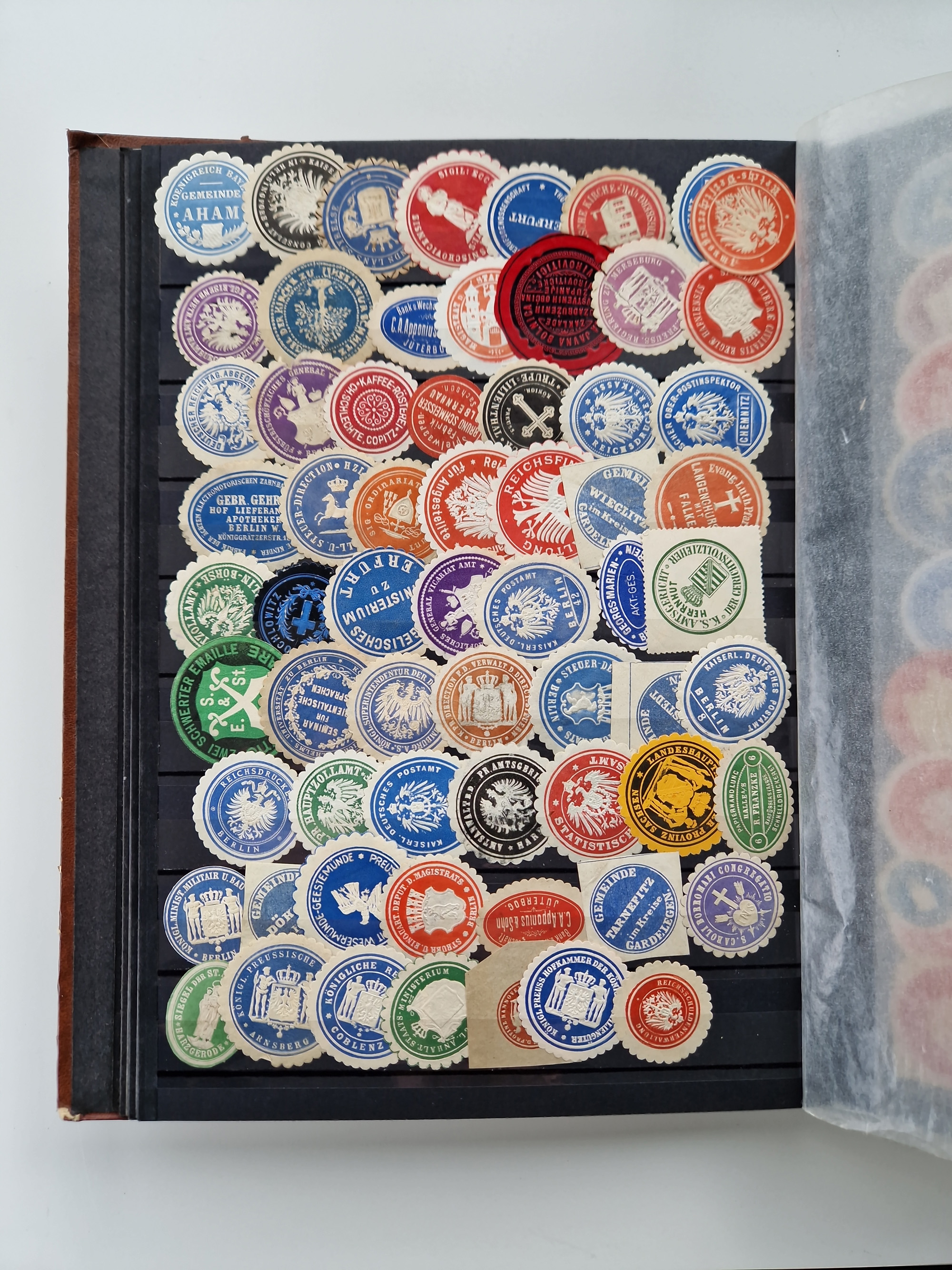 1875/1945 (ca.), hochinteressanter Bestand mit einigen Tausend Fiskalmarken, Stempelmarken, Eisenbahnmarken, Kaigeld, etc. sowie einem kleinen Teil Kapselgeld, Notgeld und Privatpost mit u.a. Ganzsachen, dabei u.a. 1898 Kaiser Wilhelm II Jubiläumskarte mit (Halt gegen das Licht) Zelluloid Porträt, vieles in Tüten oder auf amerikanischen Händlerkarten, vieles mehrfach, in zwei Kartons