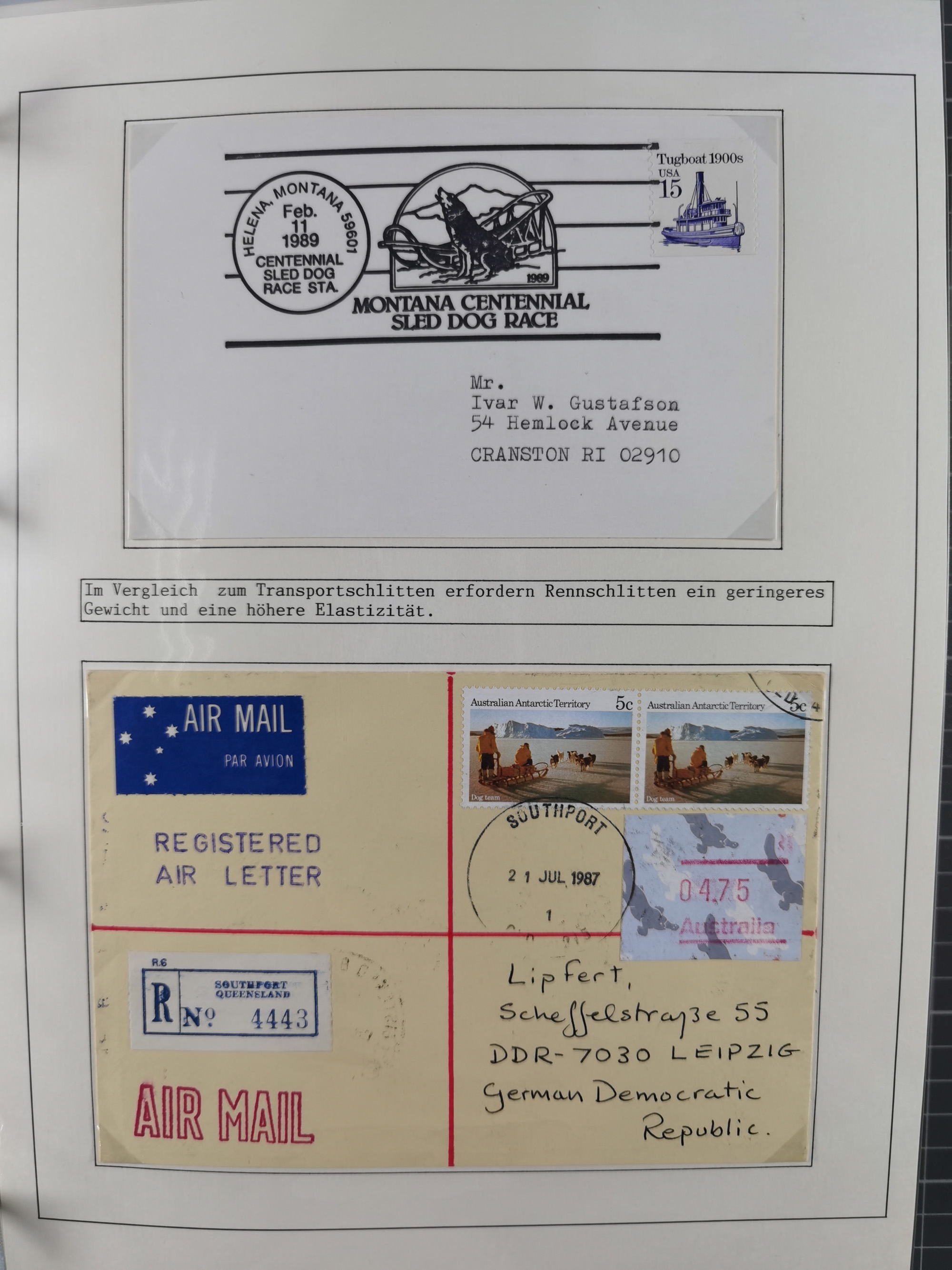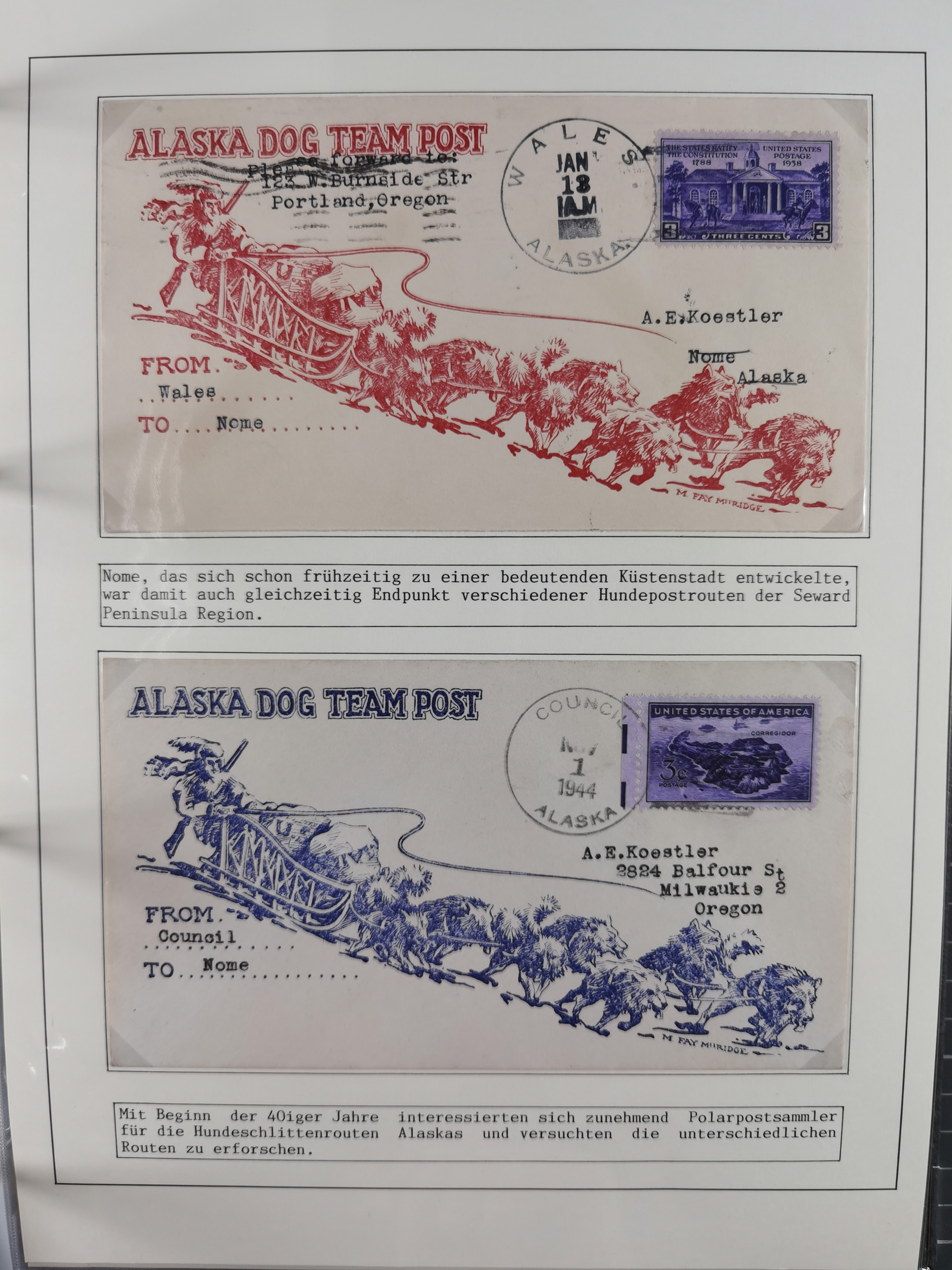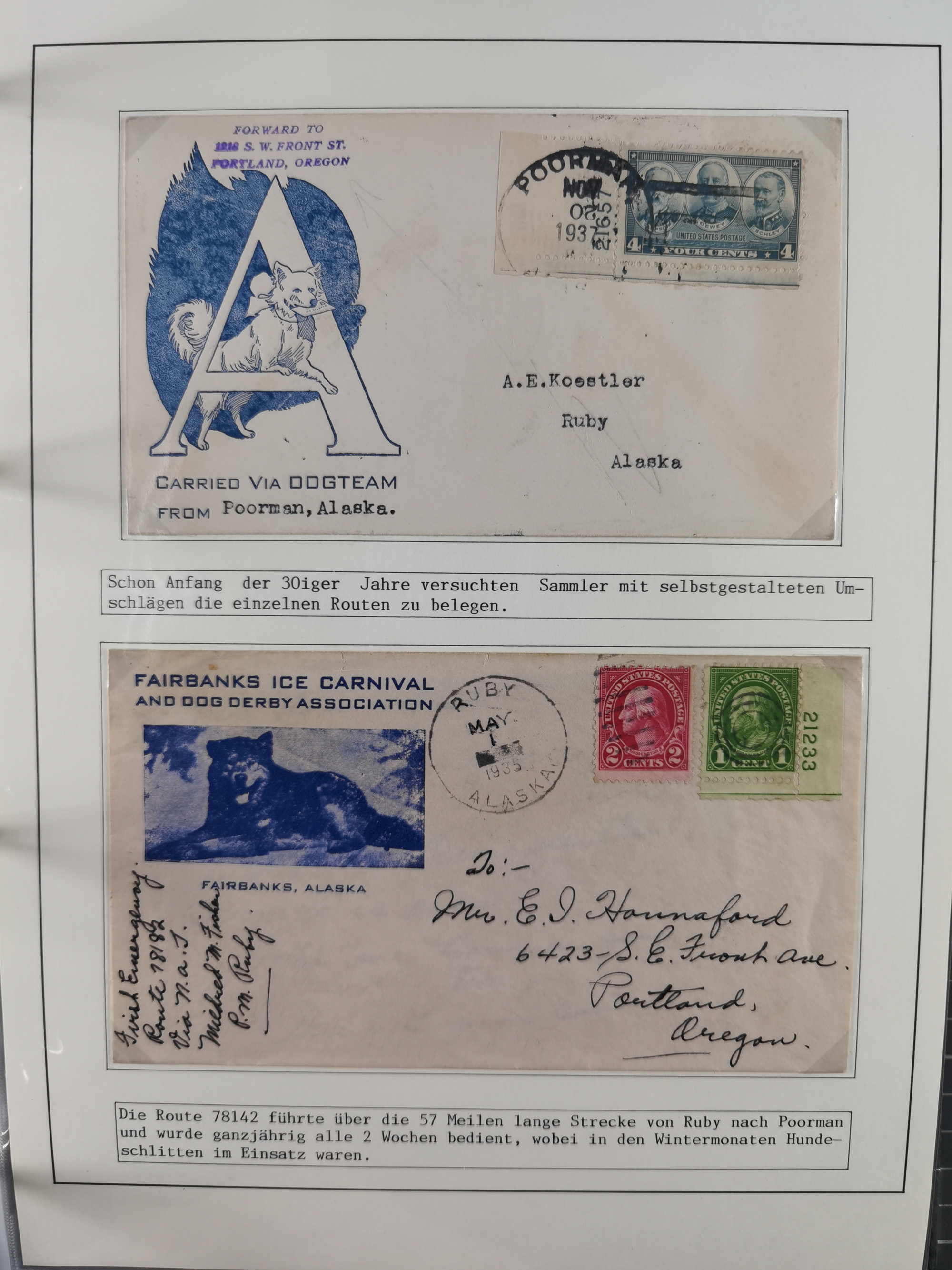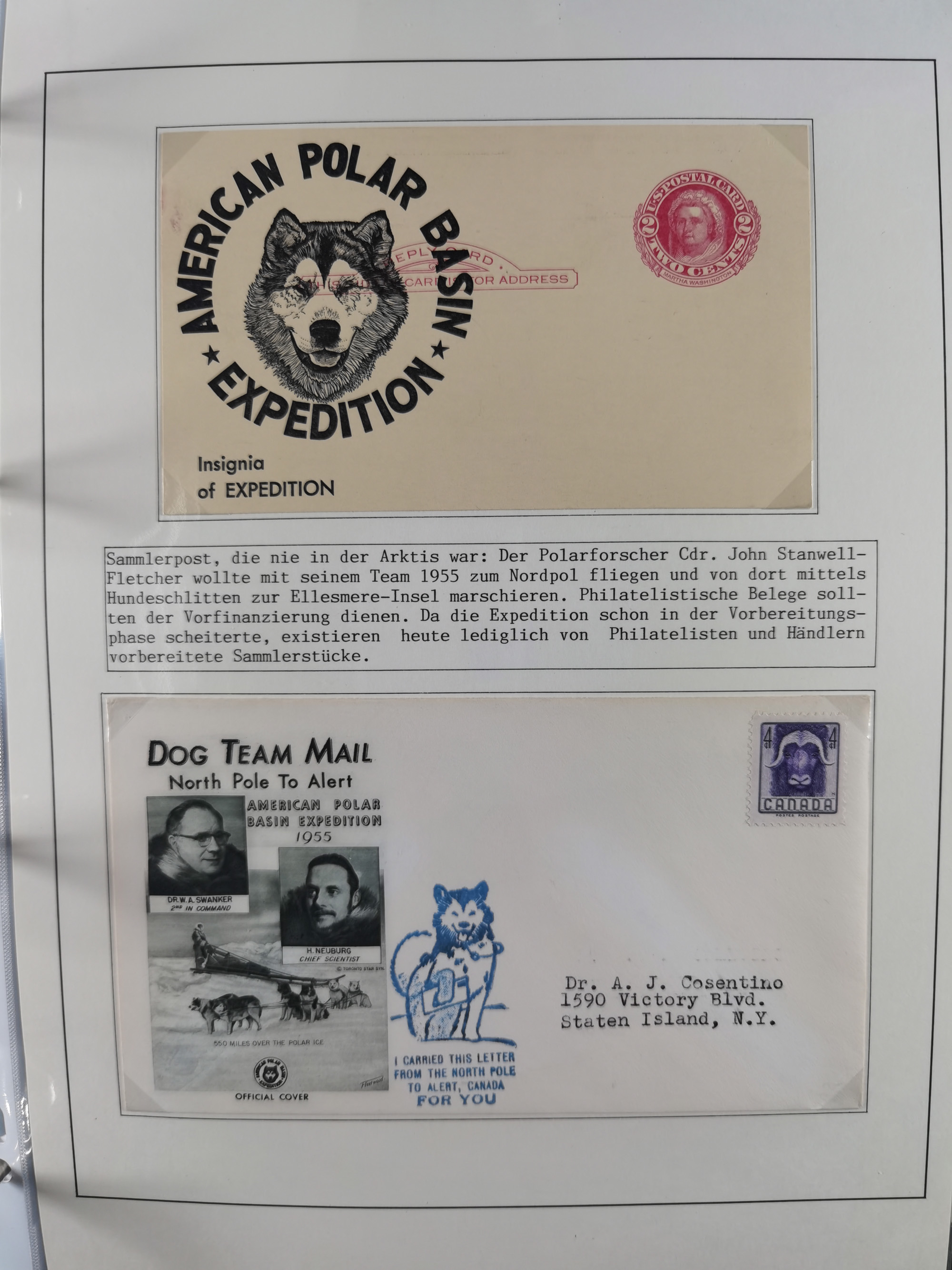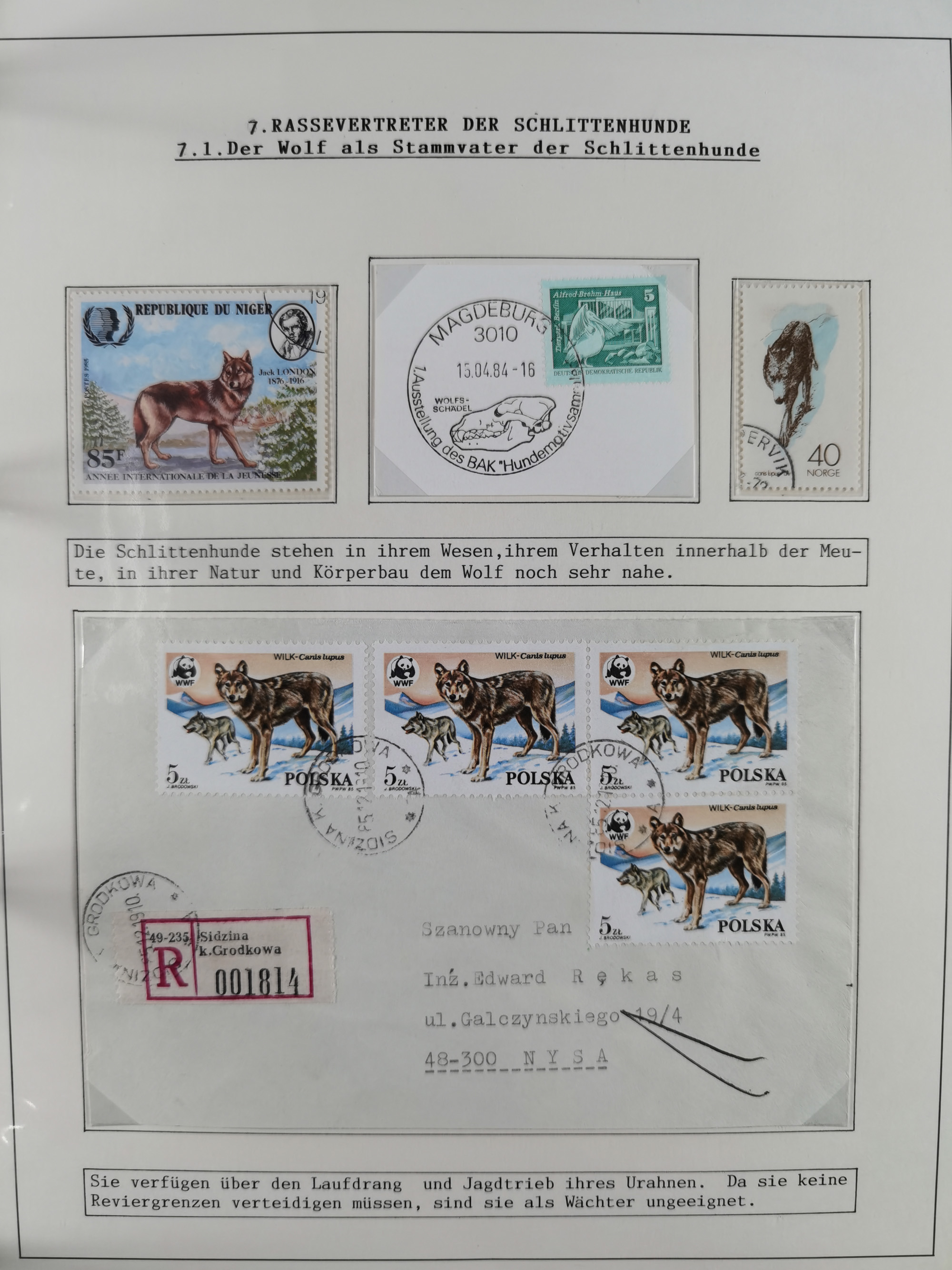 HUNDE: 1894/1992 (ca.), interessante Ausstellungssammlung “Schlittenhunde im Einsatz”, mit vielen Marken, FDCs, Schmuckbriefen, Telefonkarten, dabei frühes und besseres Material, ferner etwas Literatur, in zwei Ordnern