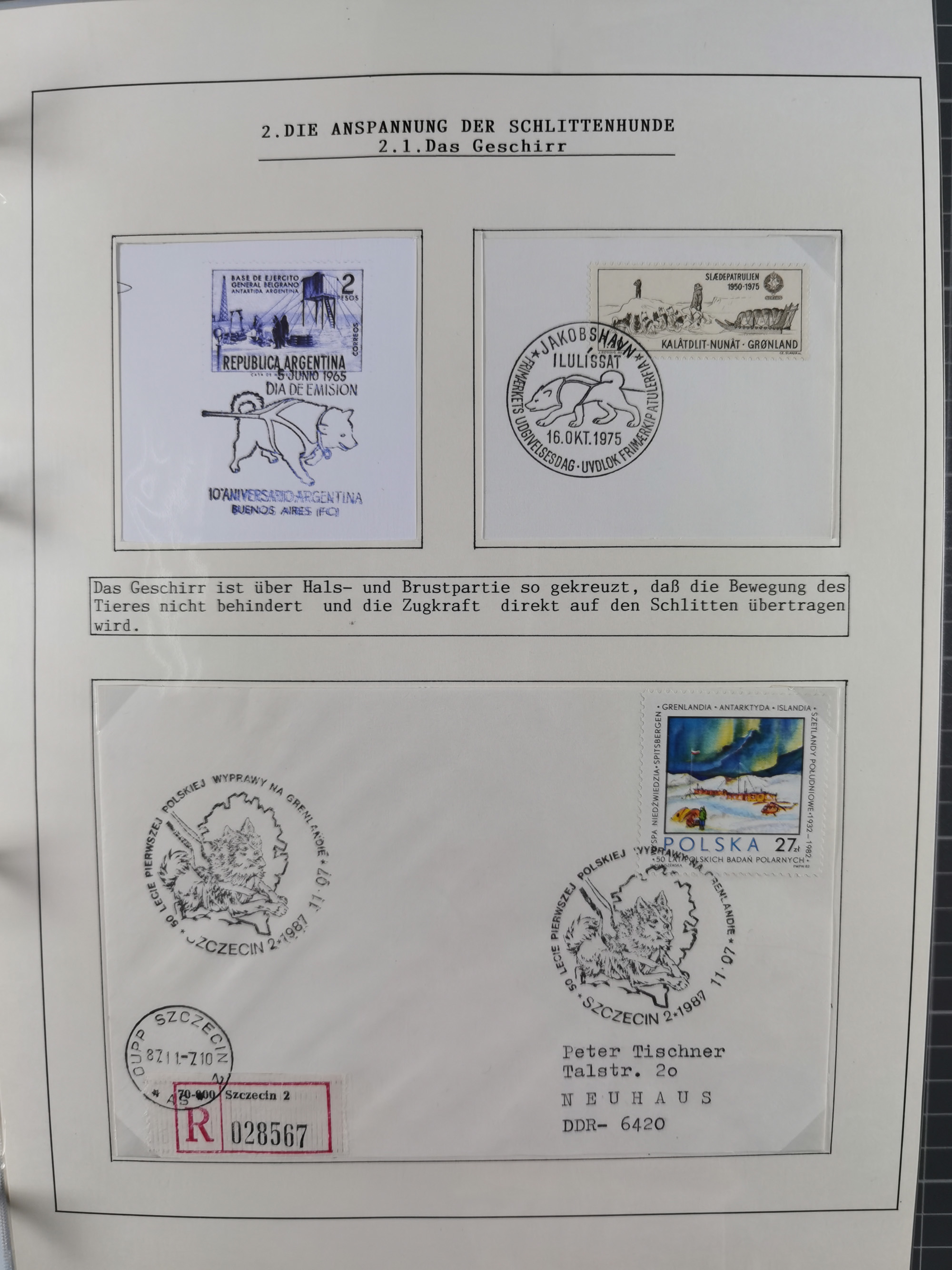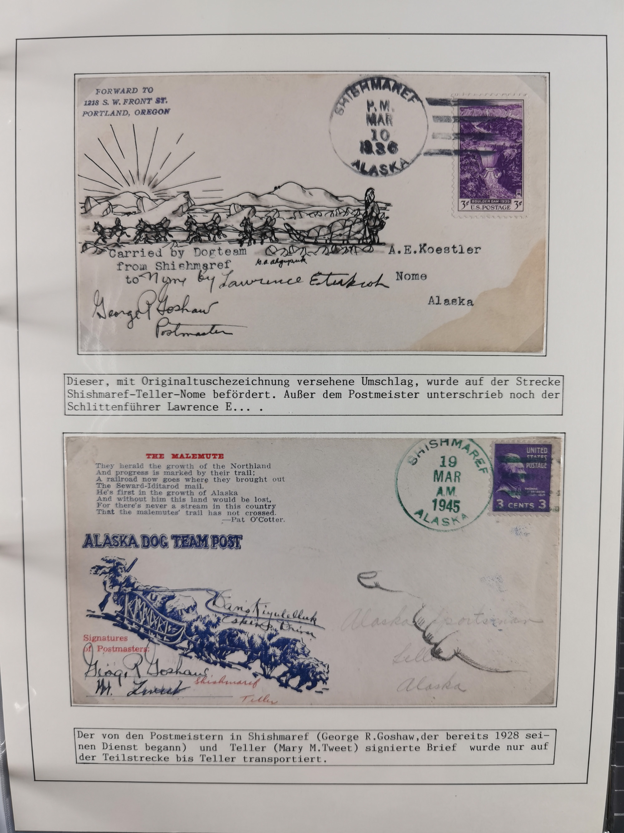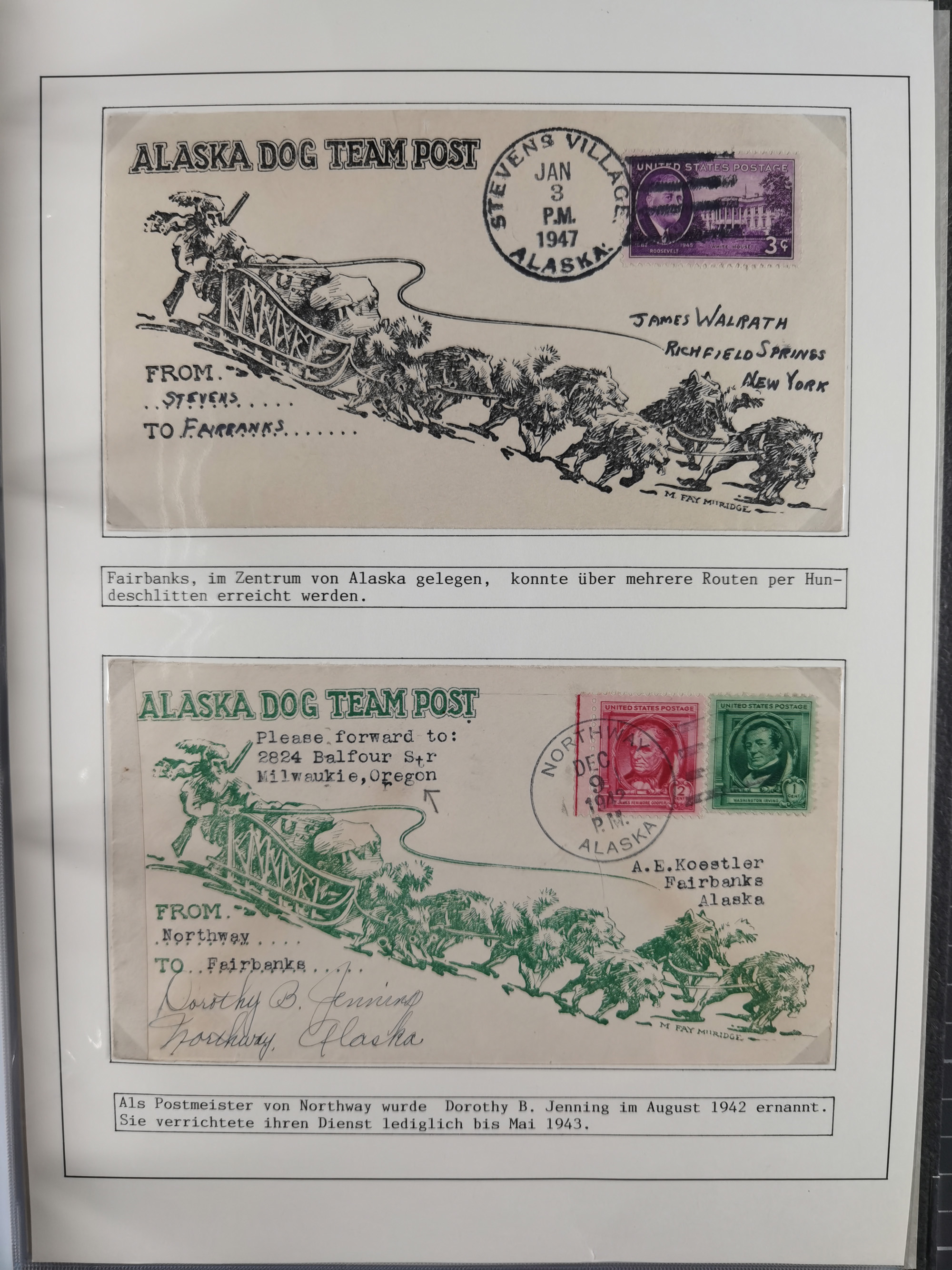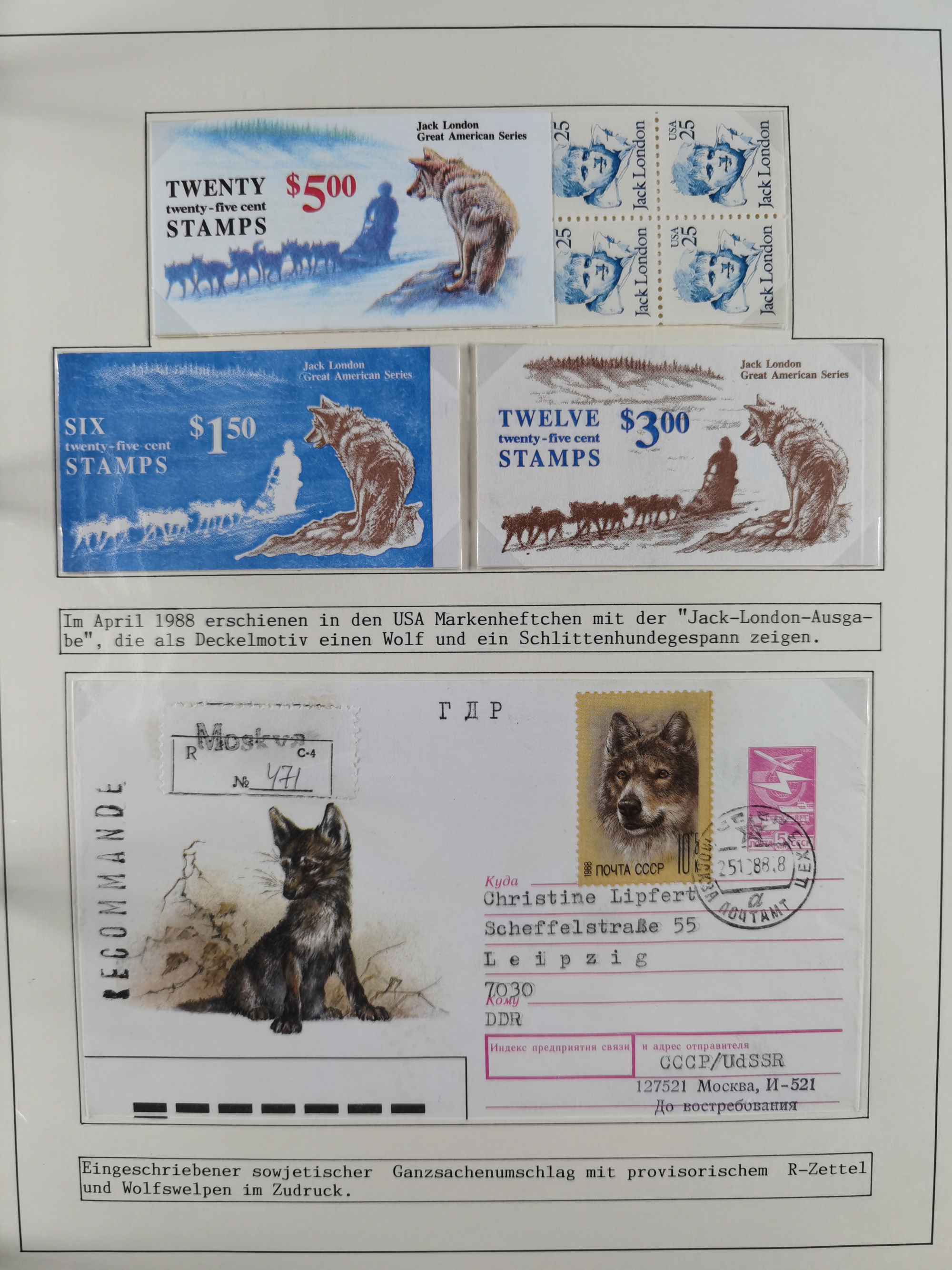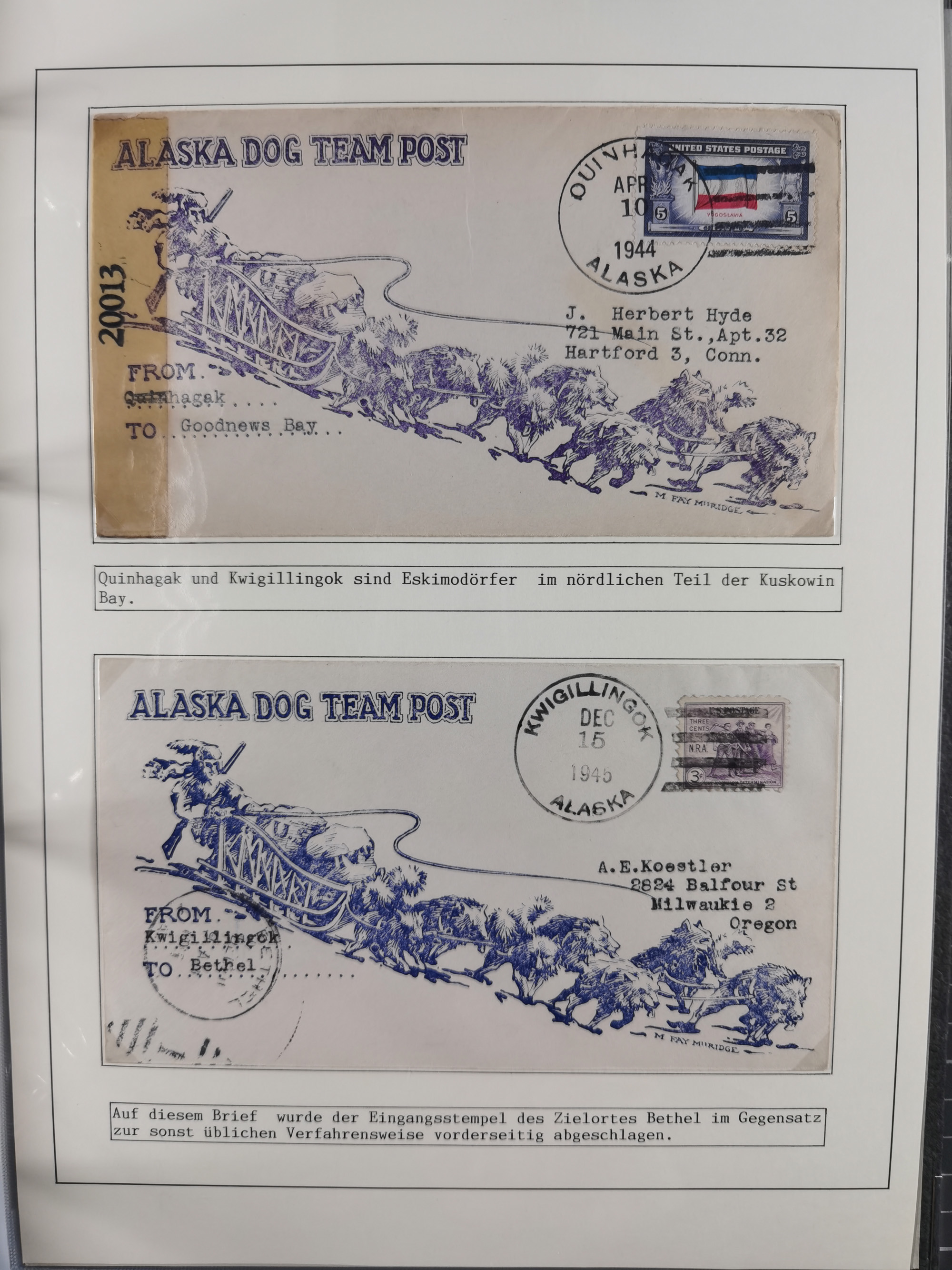 HUNDE: 1894/1992 (ca.), interessante Ausstellungssammlung “Schlittenhunde im Einsatz”, mit vielen Marken, FDCs, Schmuckbriefen, Telefonkarten, dabei frühes und besseres Material, ferner etwas Literatur, in zwei Ordnern
