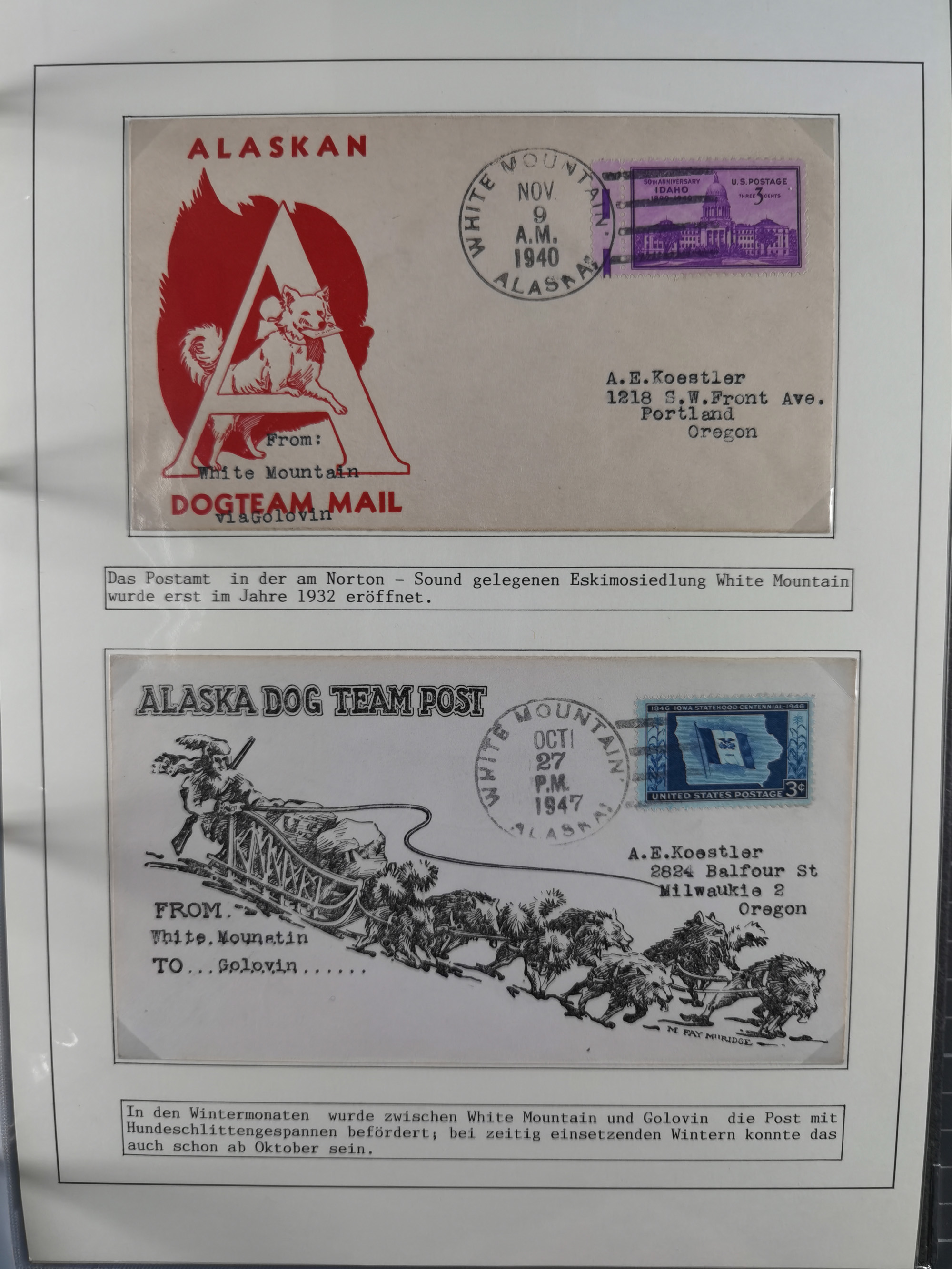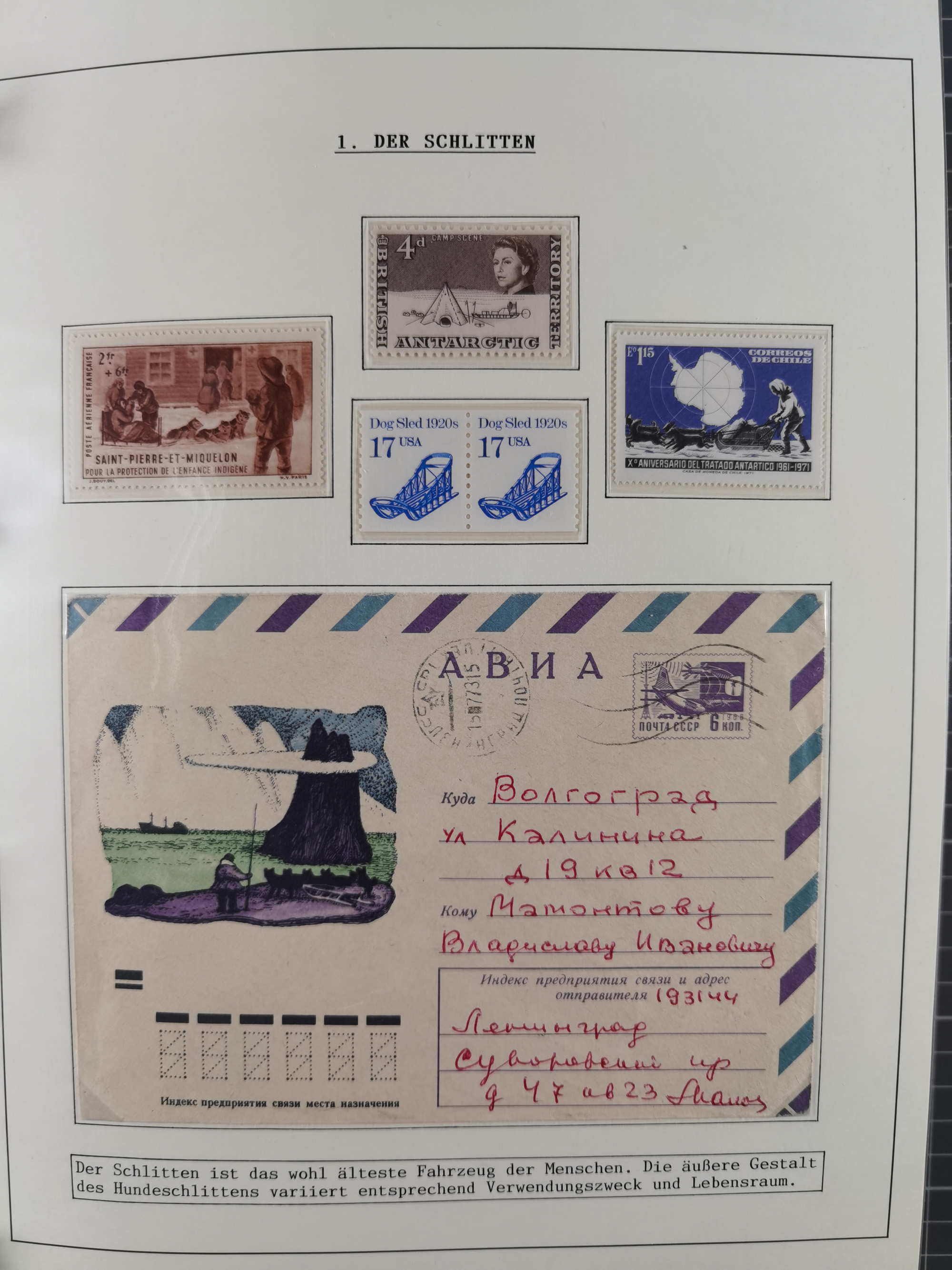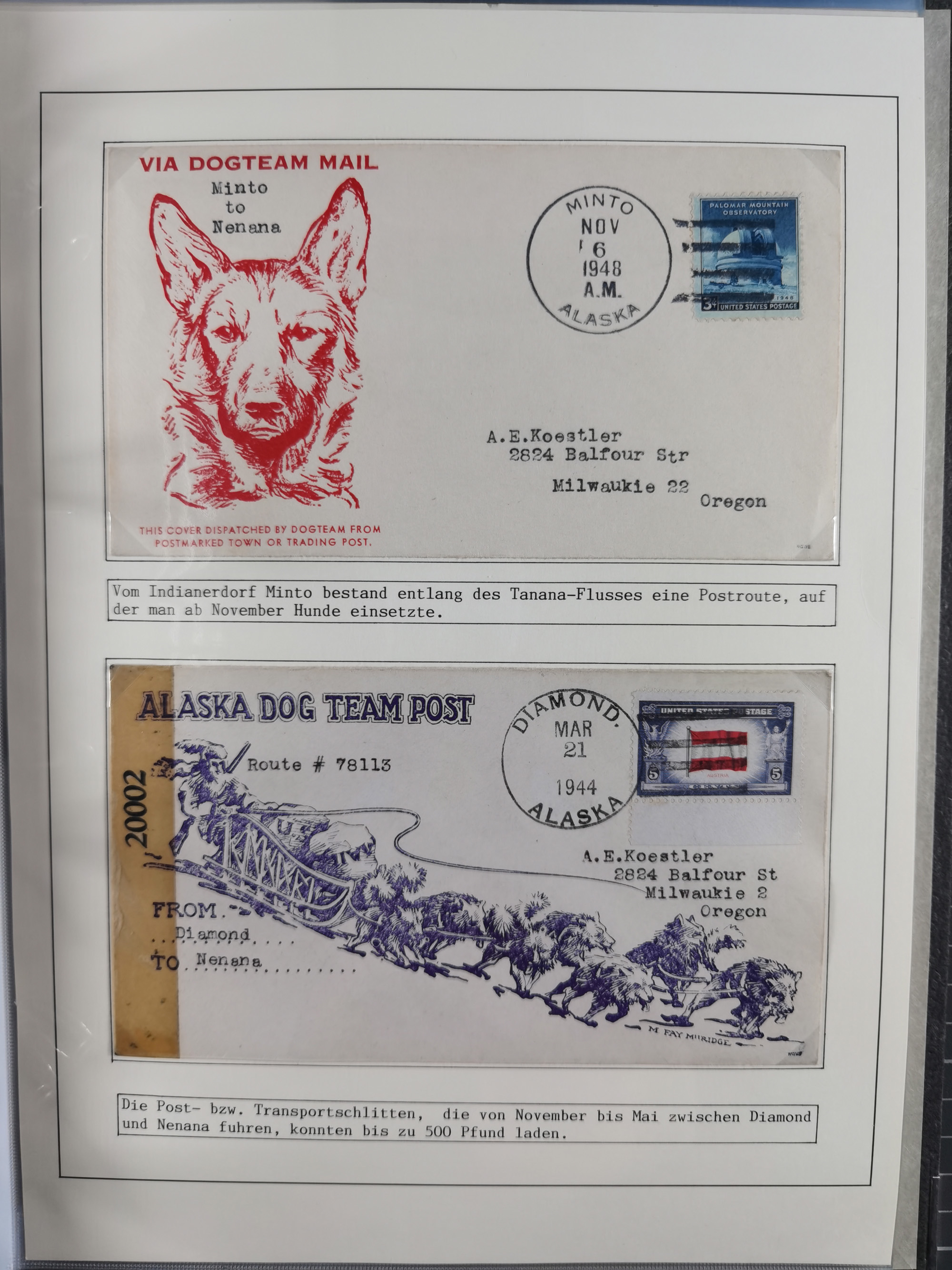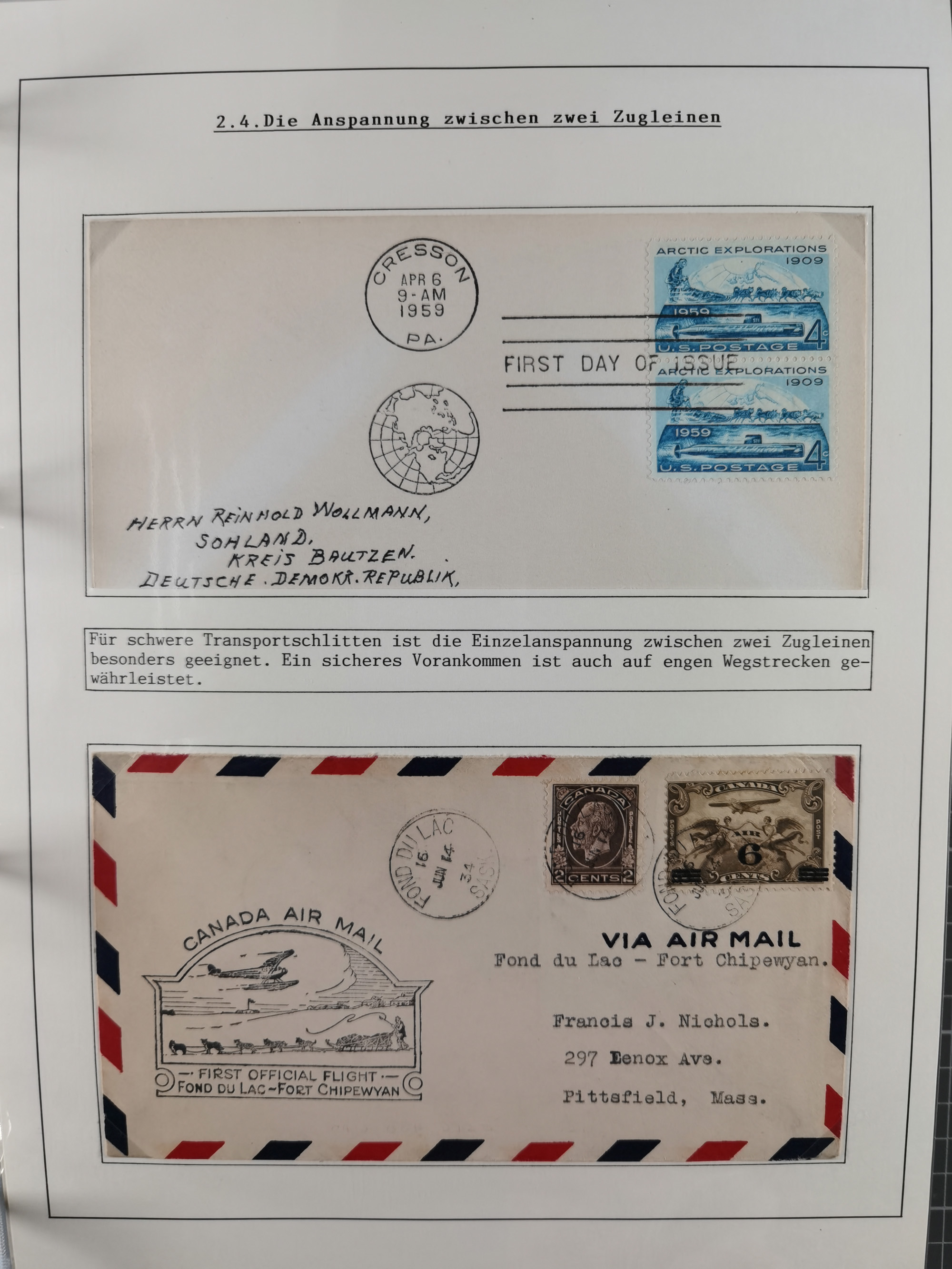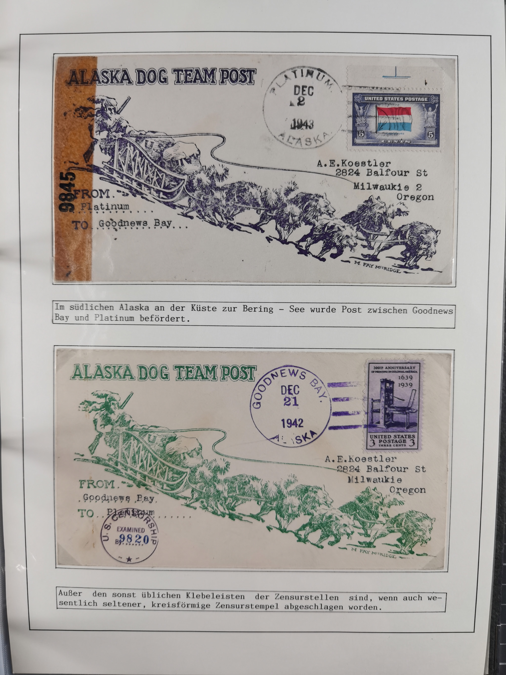 HUNDE: 1894/1992 (ca.), interessante Ausstellungssammlung “Schlittenhunde im Einsatz”, mit vielen Marken, FDCs, Schmuckbriefen, Telefonkarten, dabei frühes und besseres Material, ferner etwas Literatur, in zwei Ordnern