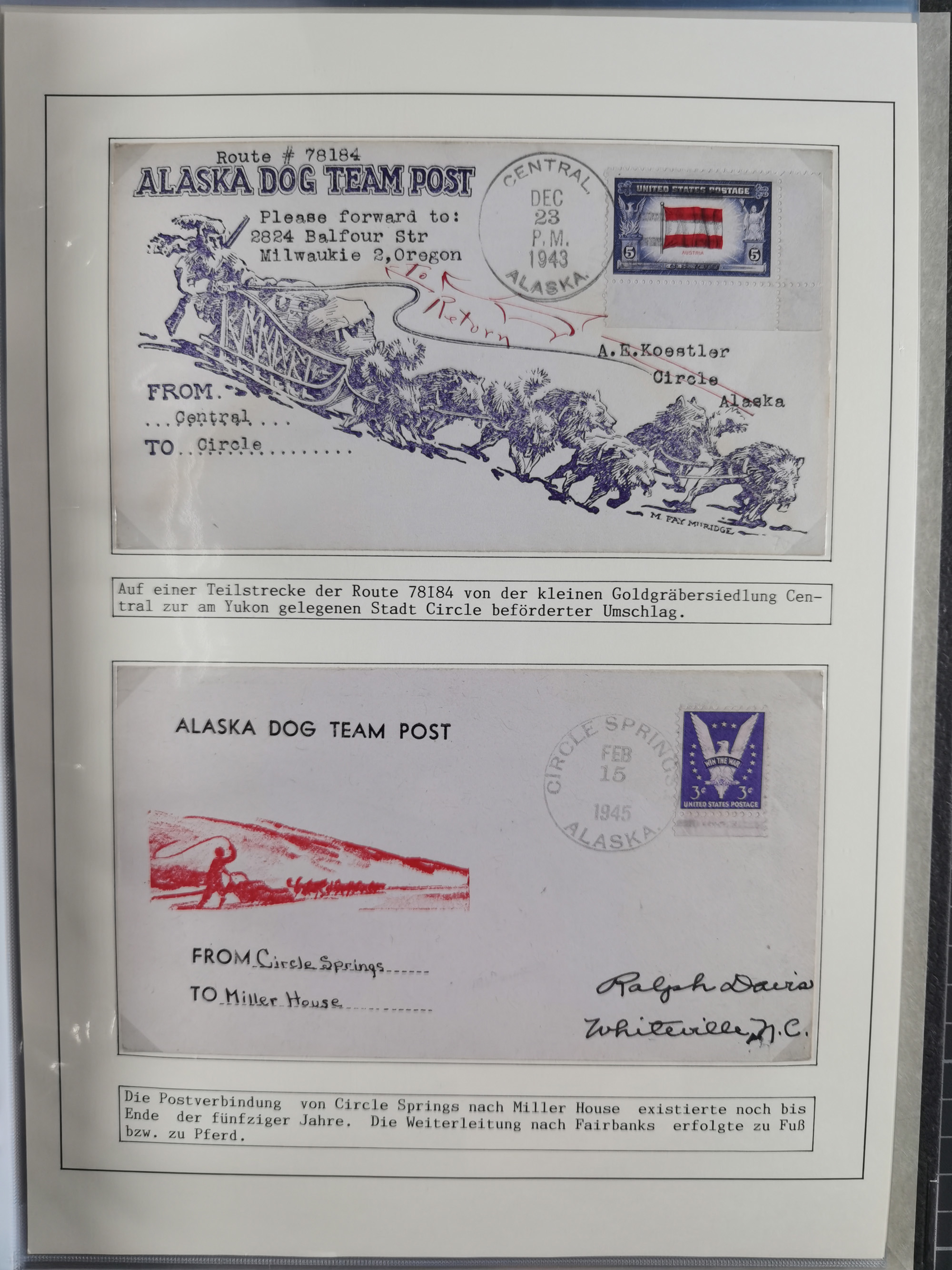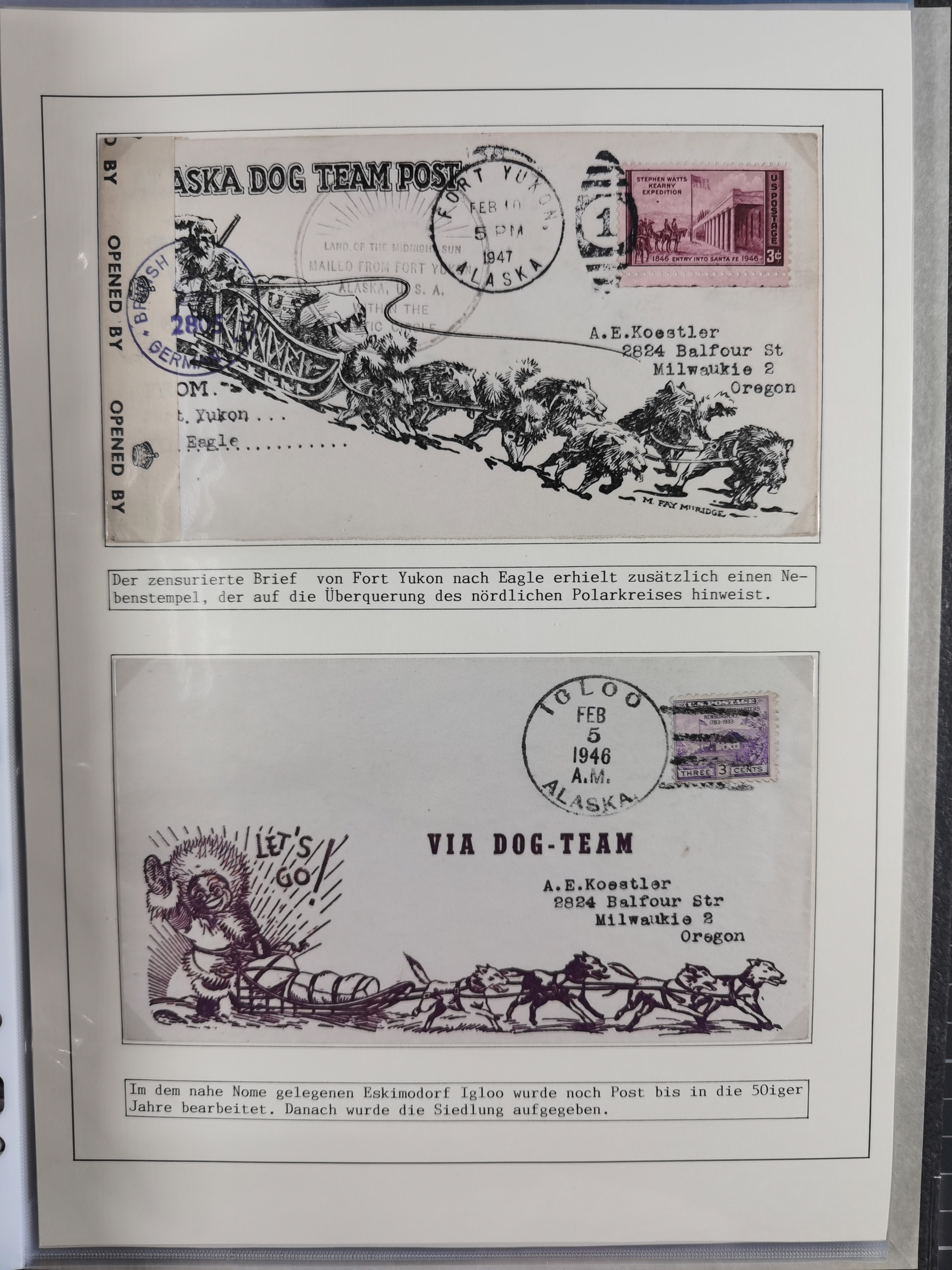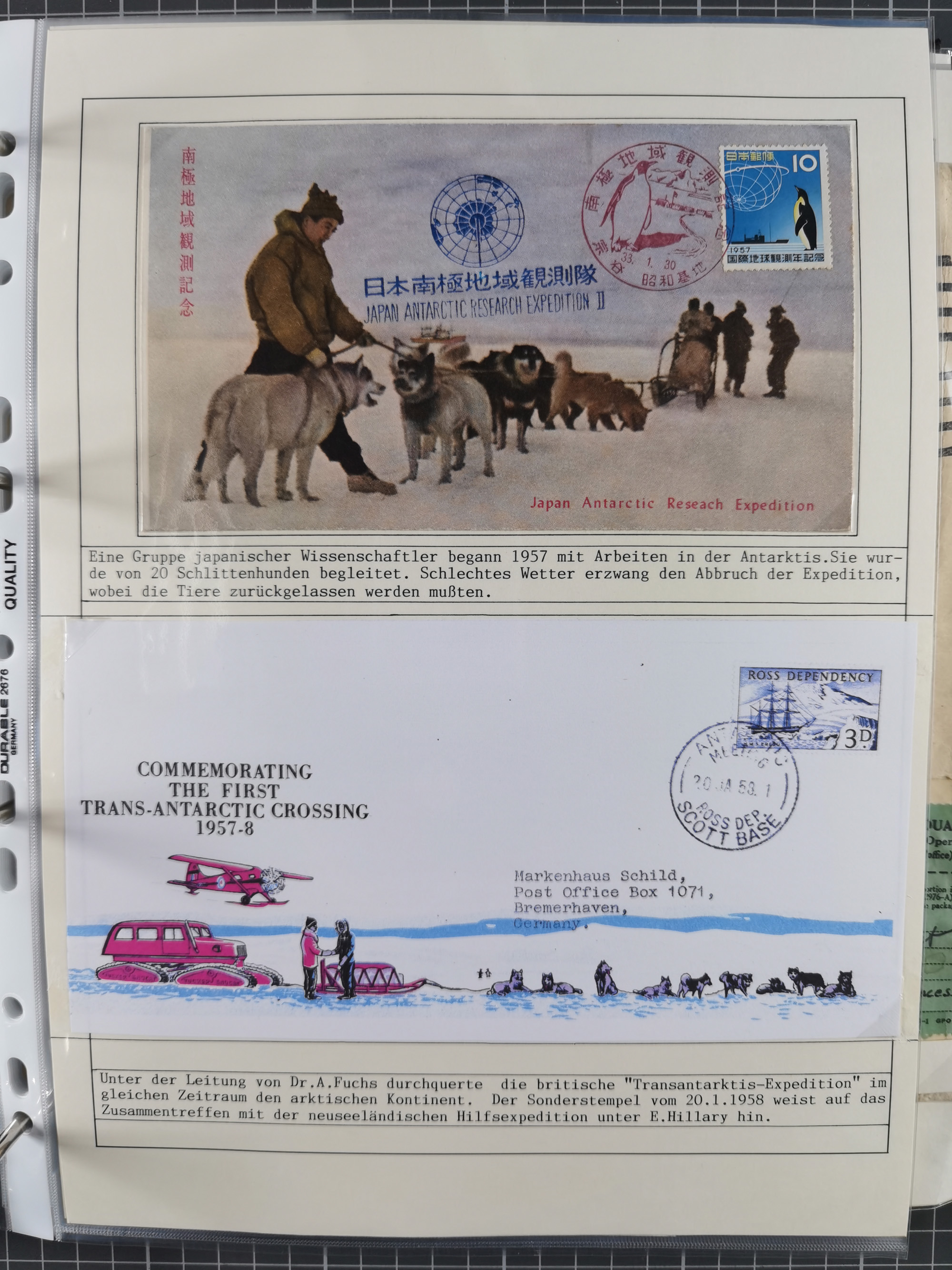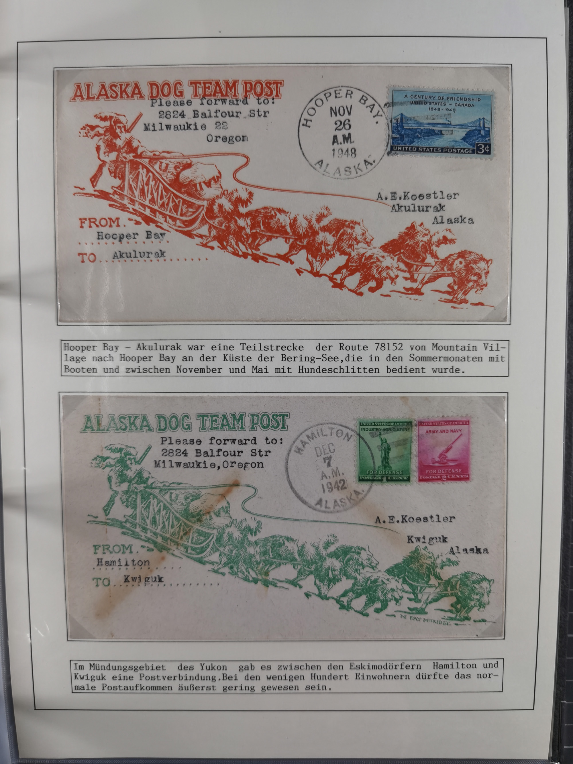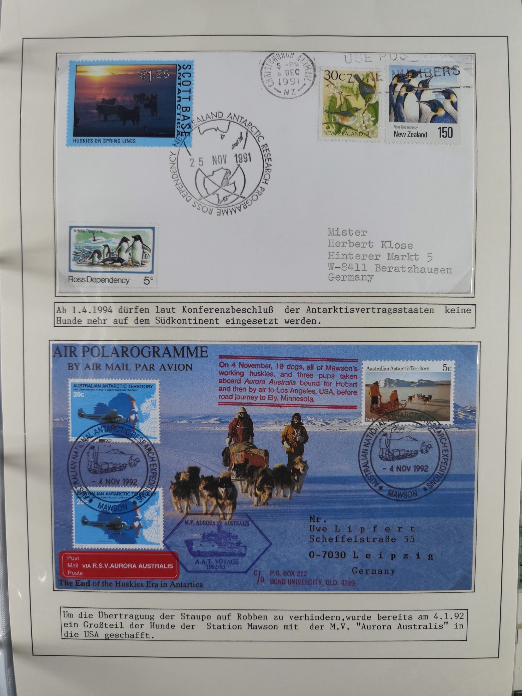 HUNDE: 1894/1992 (ca.), interessante Ausstellungssammlung “Schlittenhunde im Einsatz”, mit vielen Marken, FDCs, Schmuckbriefen, Telefonkarten, dabei frühes und besseres Material, ferner etwas Literatur, in zwei Ordnern
