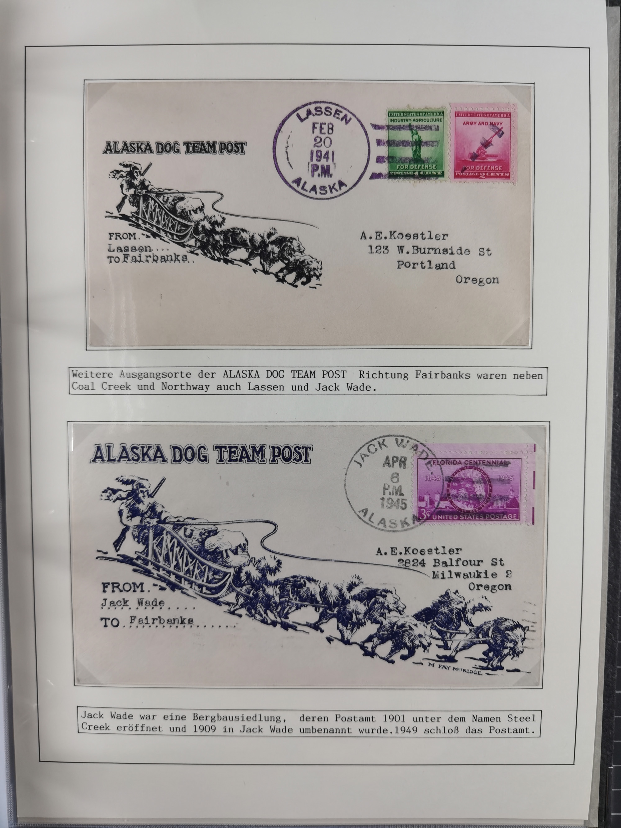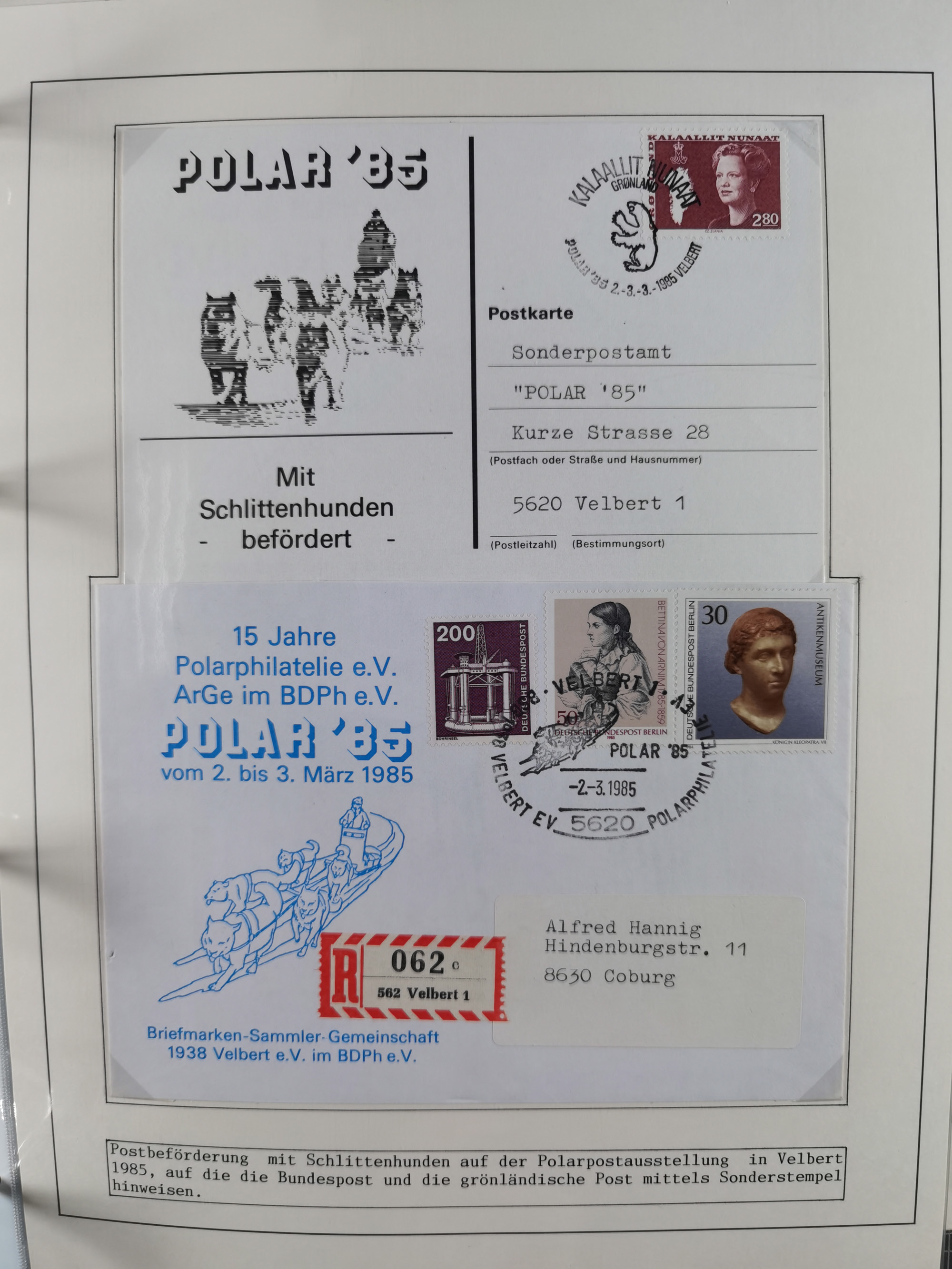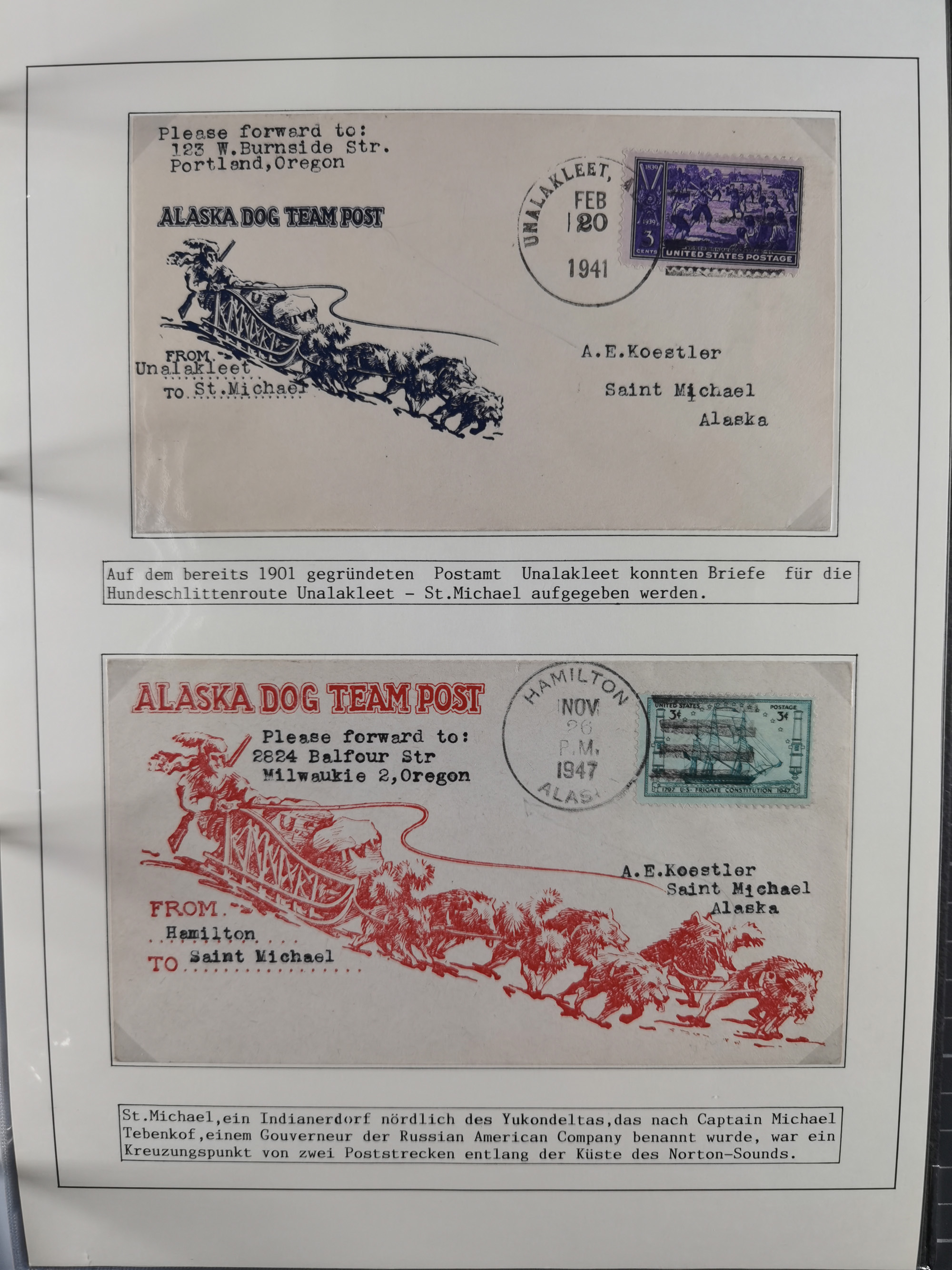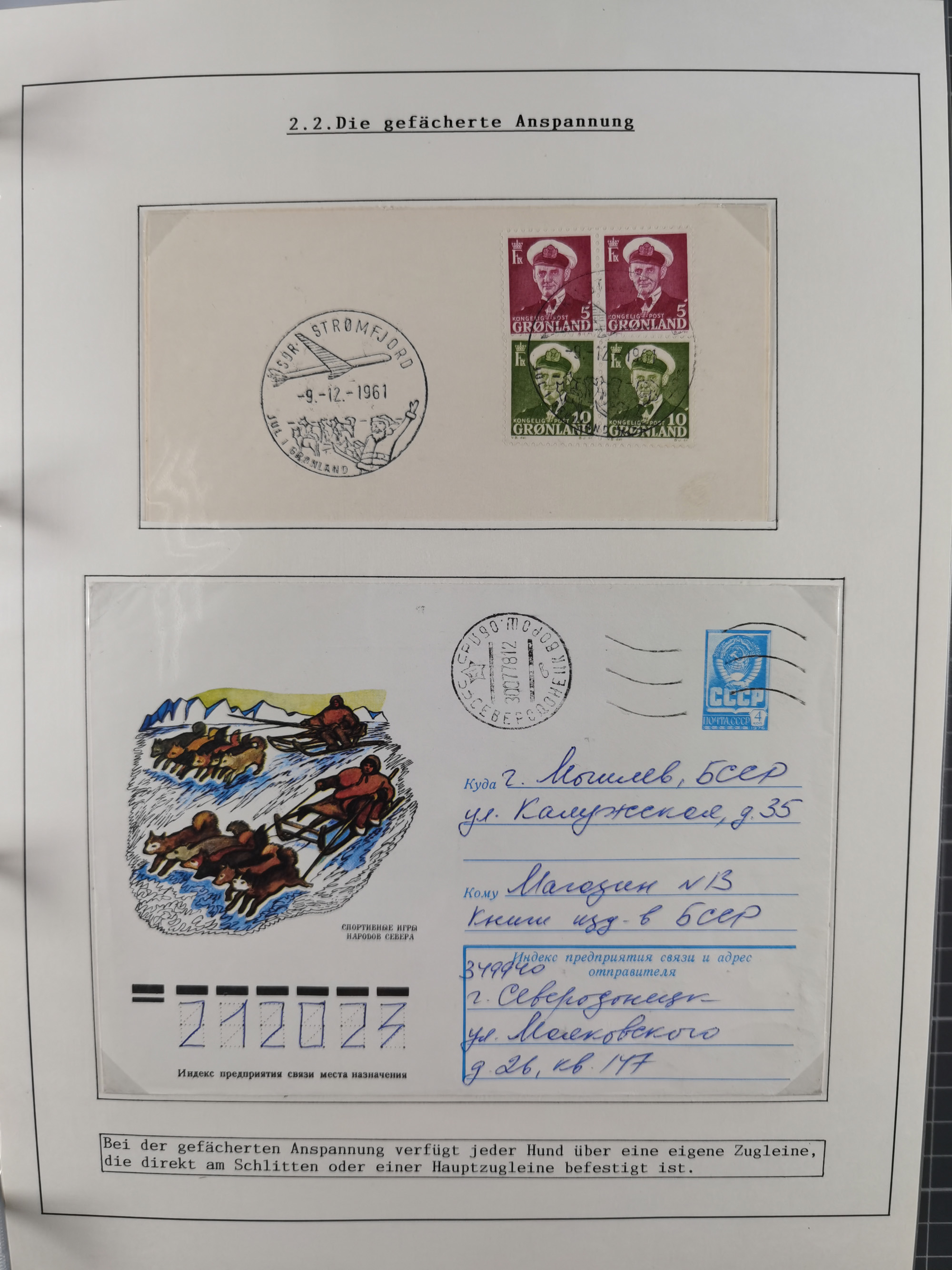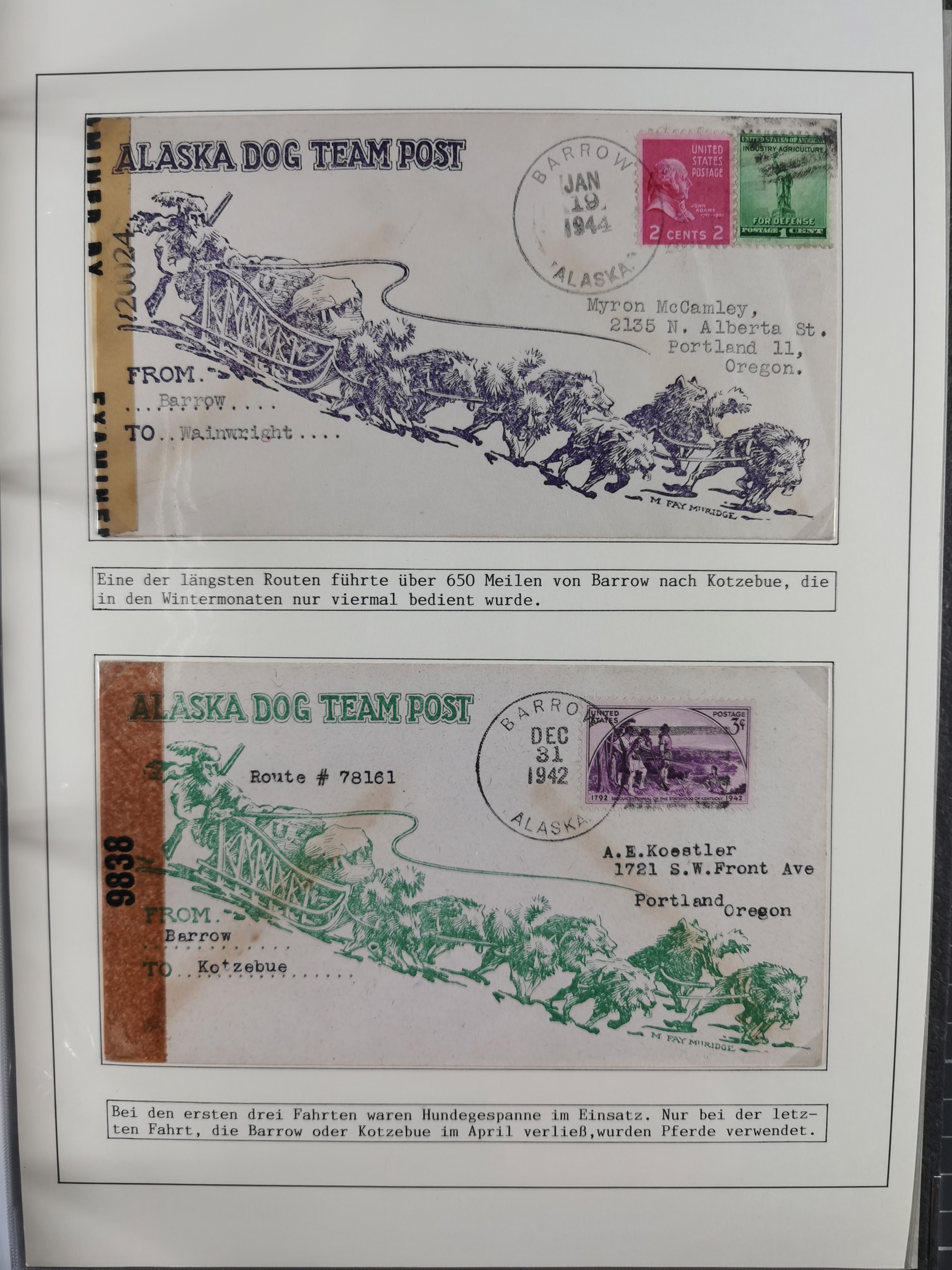 HUNDE: 1894/1992 (ca.), interessante Ausstellungssammlung “Schlittenhunde im Einsatz”, mit vielen Marken, FDCs, Schmuckbriefen, Telefonkarten, dabei frühes und besseres Material, ferner etwas Literatur, in zwei Ordnern