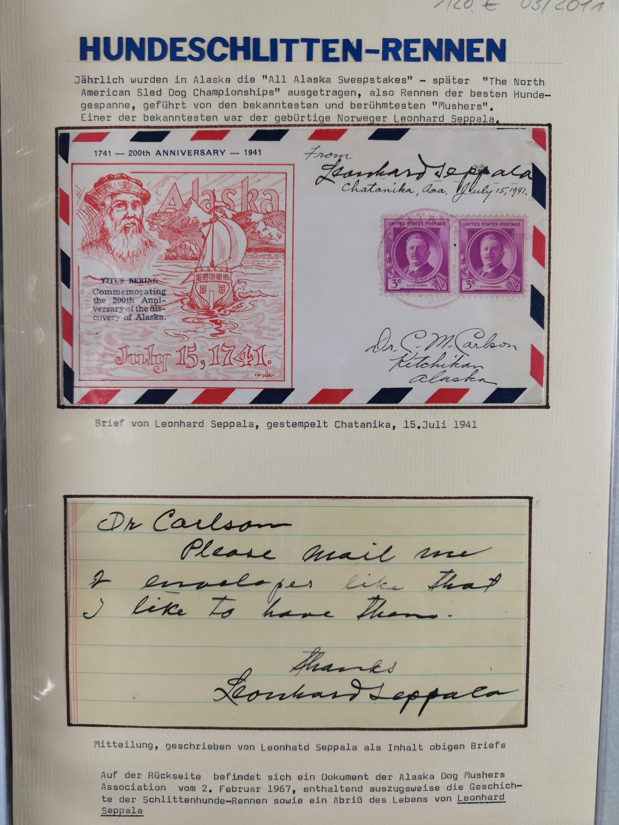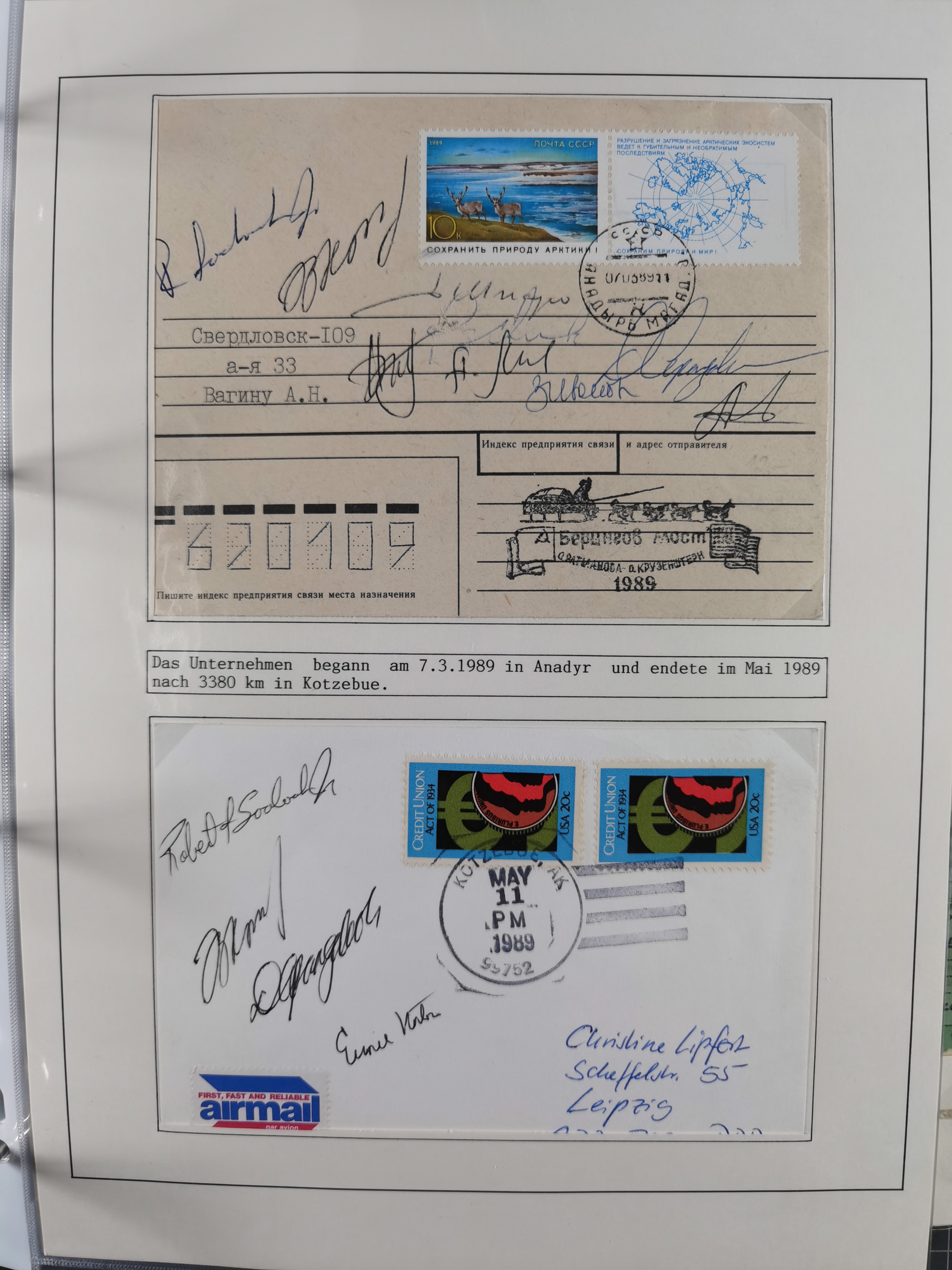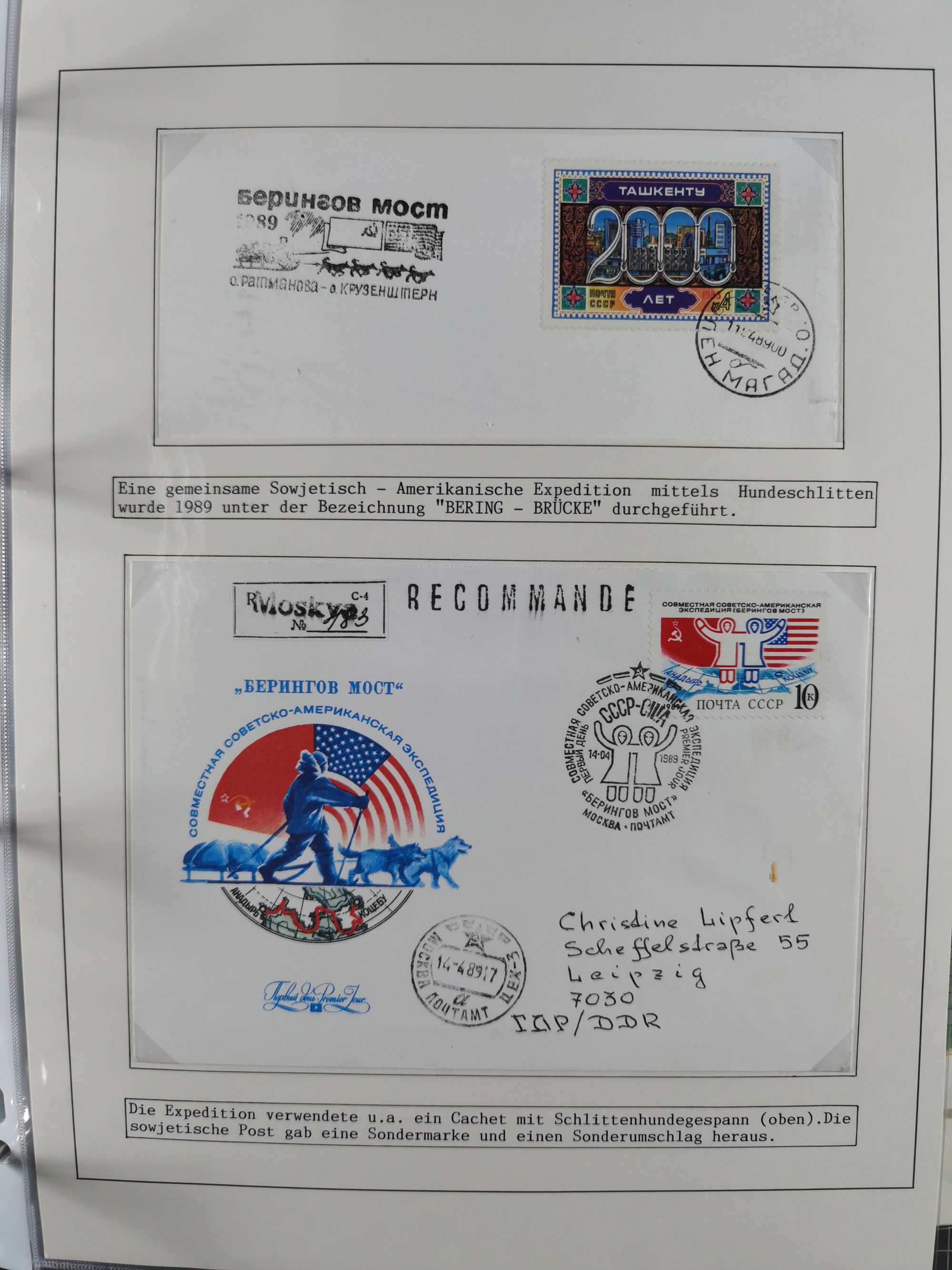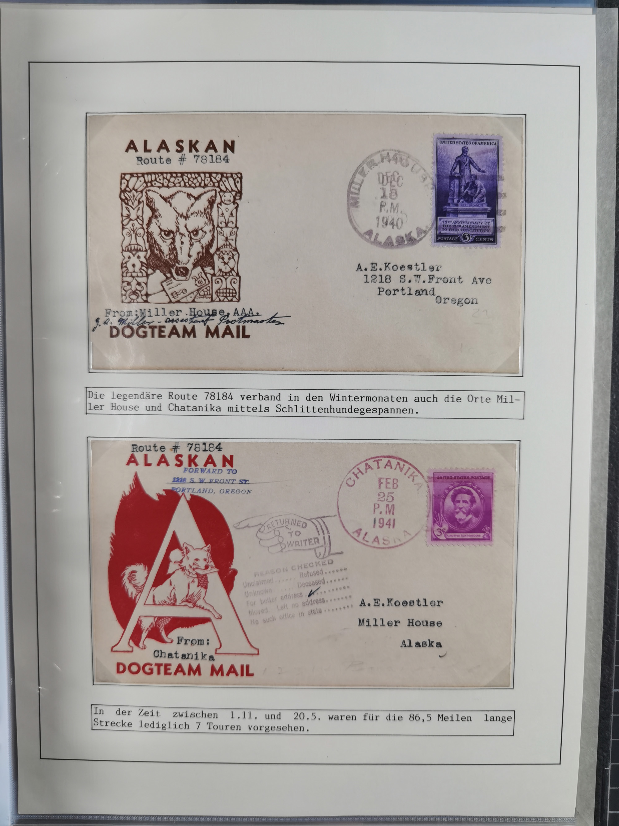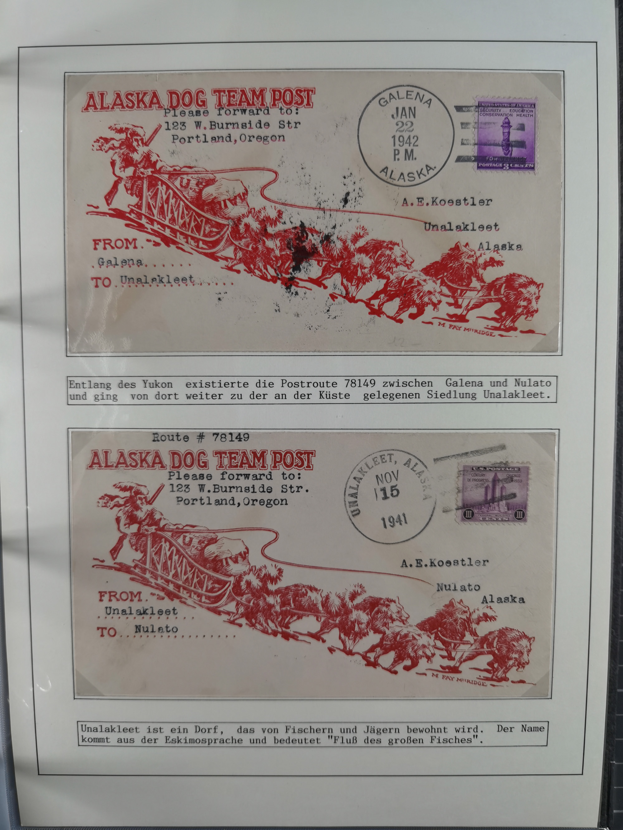 HUNDE: 1894/1992 (ca.), interessante Ausstellungssammlung “Schlittenhunde im Einsatz”, mit vielen Marken, FDCs, Schmuckbriefen, Telefonkarten, dabei frühes und besseres Material, ferner etwas Literatur, in zwei Ordnern