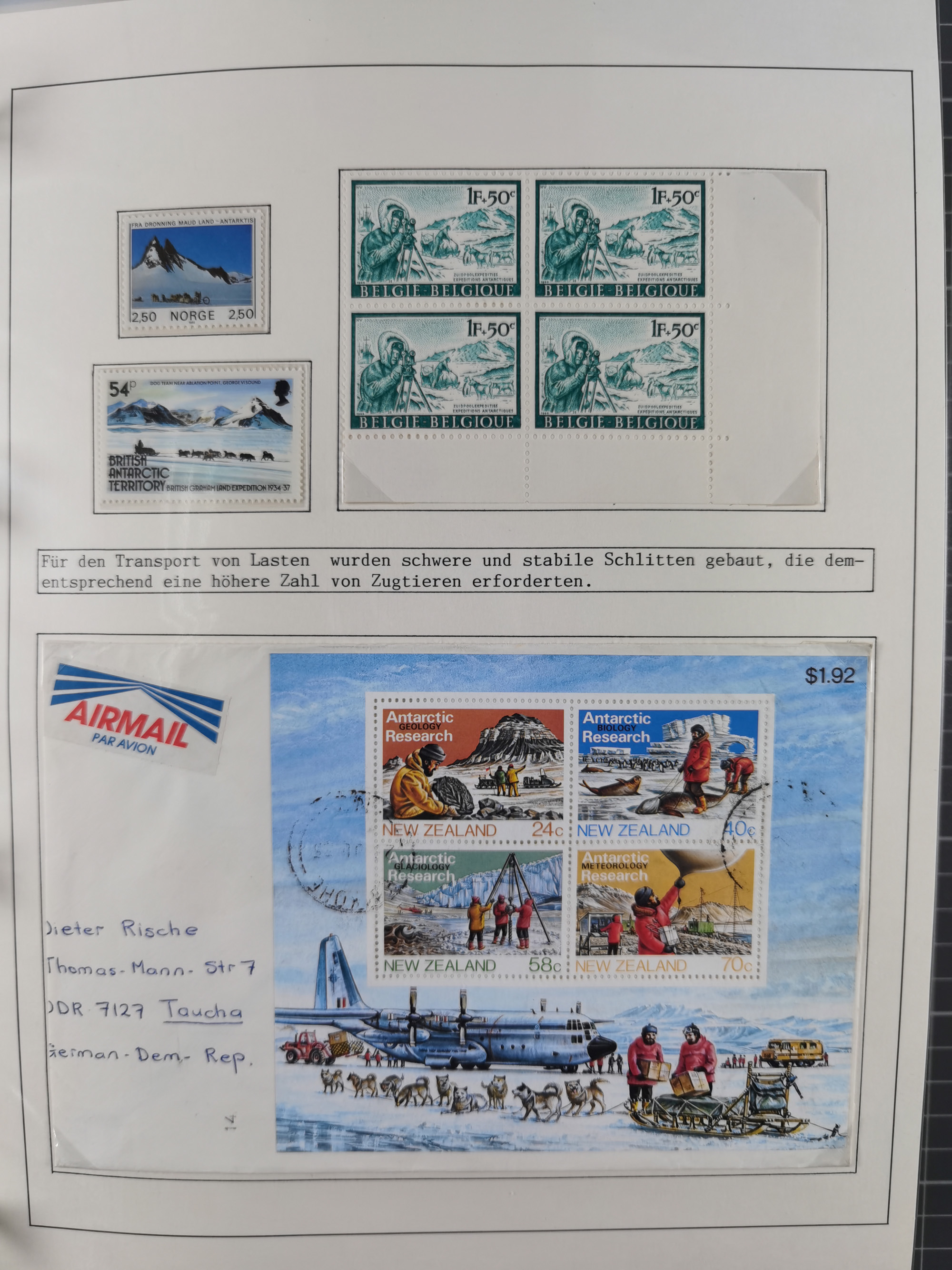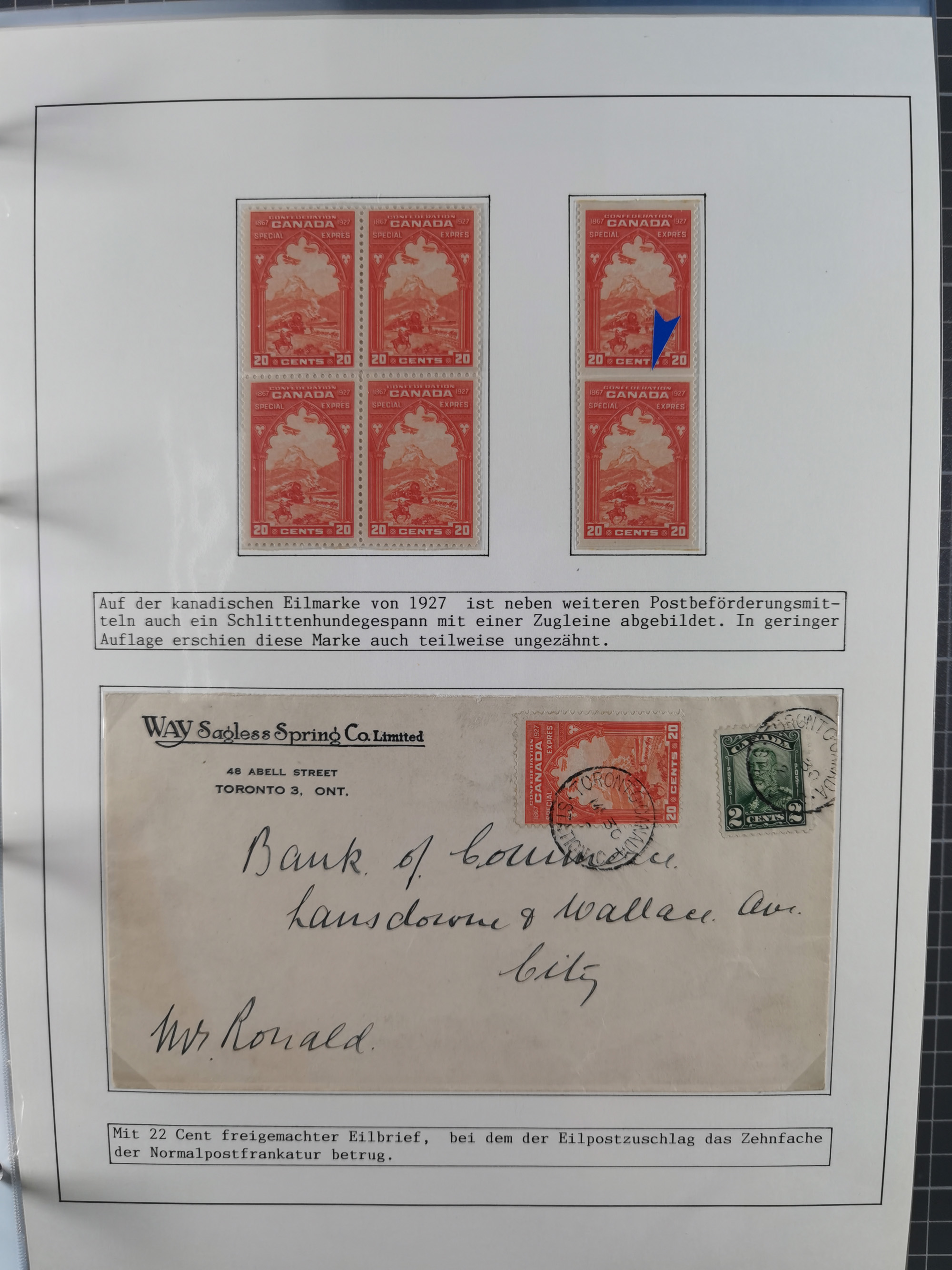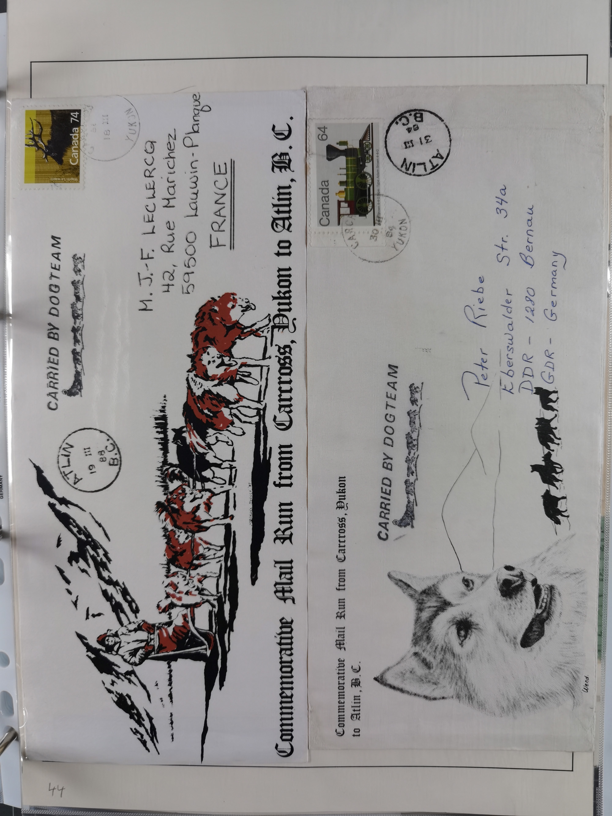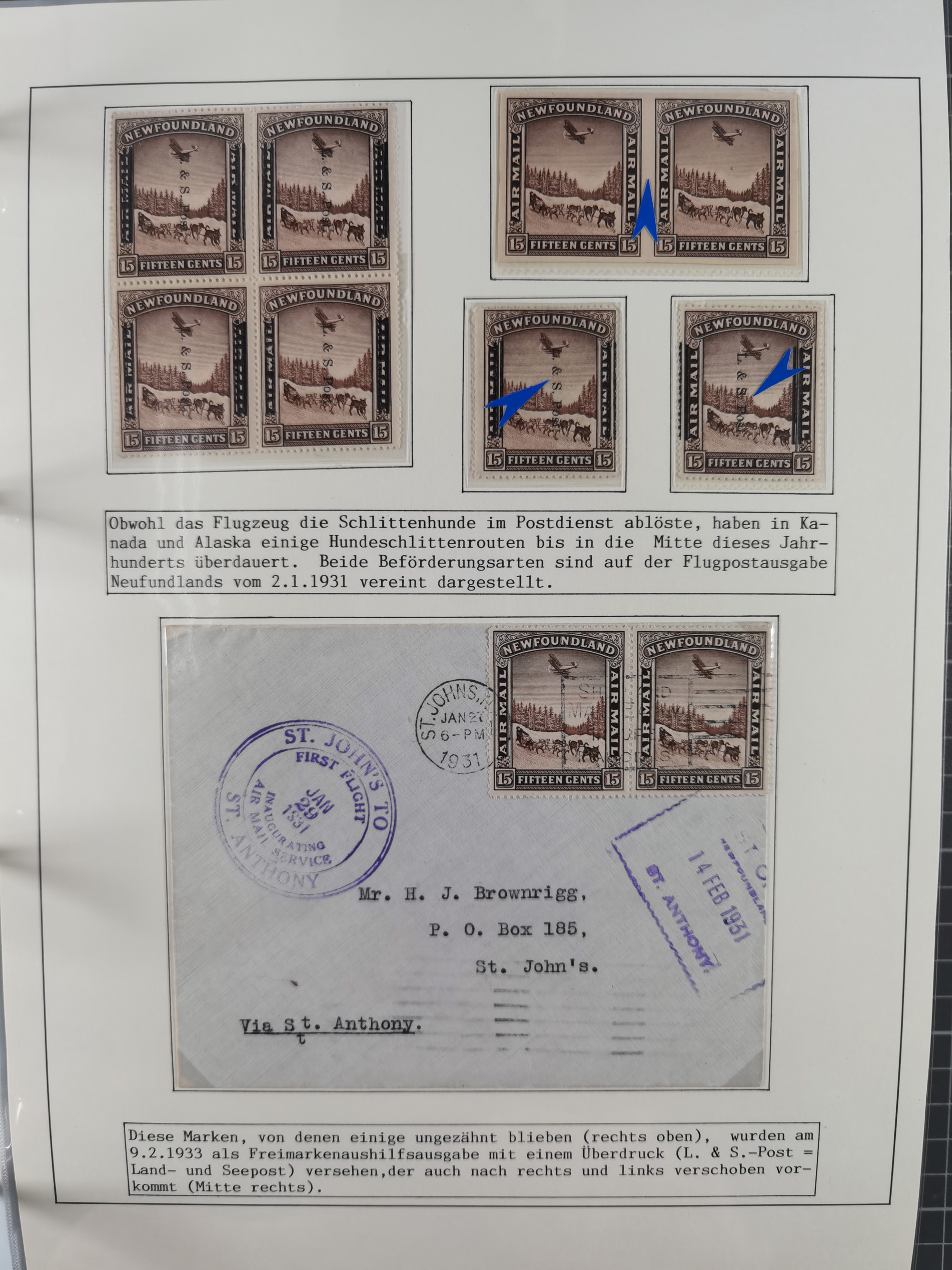HUNDE: 1893/2010 (ca.), interessante Sammlung mit Schwerpunkt Schlittenhunde, dabei ca. 500 Briefe und Karten, mit u.a. Neufundland Mi.-Nr. 35 im 4er-Block auf Ganzsachenumschlag, 115 FDC, 193II auf Brief, 193 (25), ferner Kanada, USA, Grönland mit u.a. Mi.-Nr. 13 4er-Block auf Brief und Belgien mit u.a. Werbestempeln, Flugpost-Cachets, “By labrador dog team post”, Dogteam-Mail, etc., viele bessere, ferner etwas Literatur, gute Erhaltung
