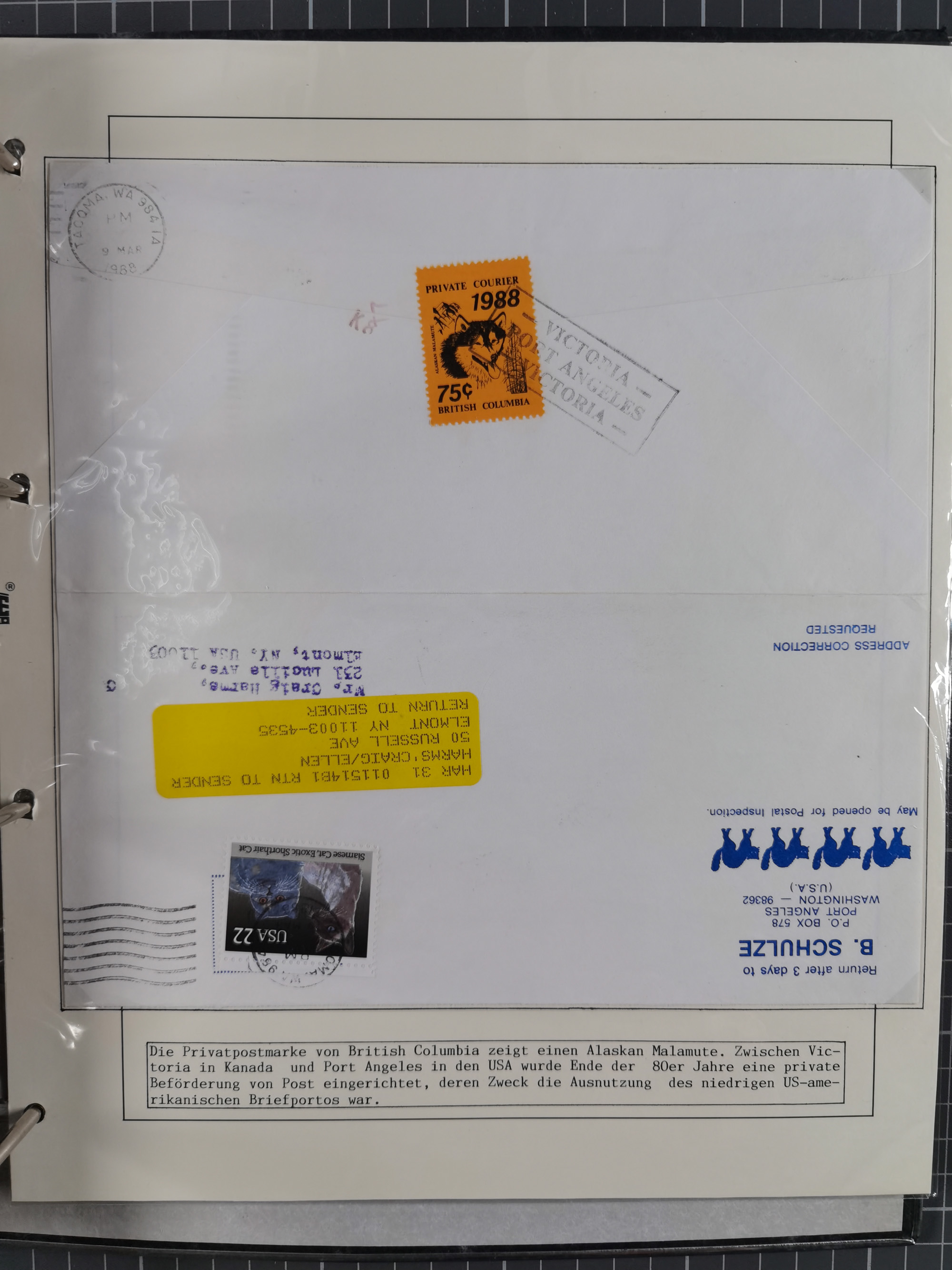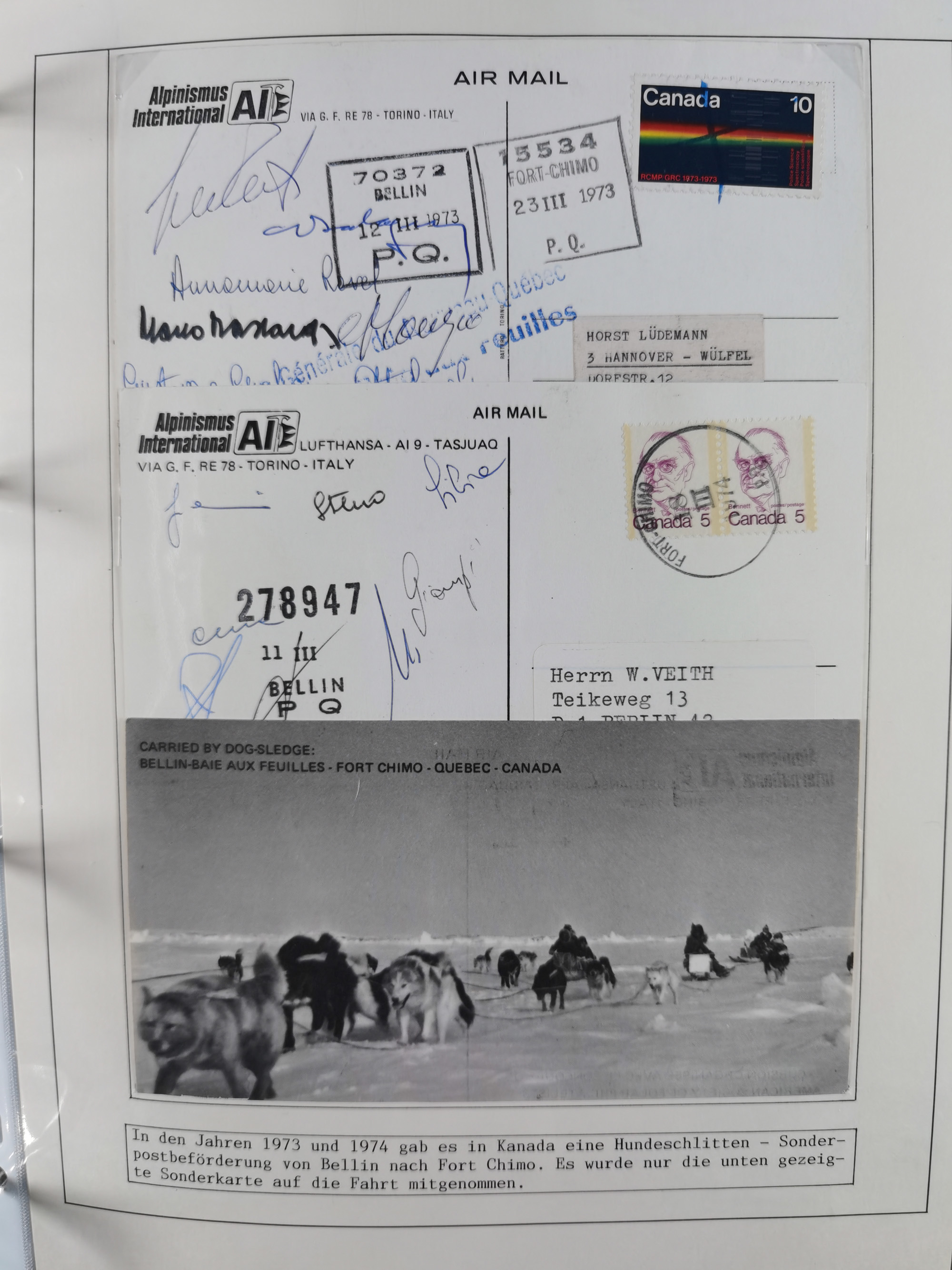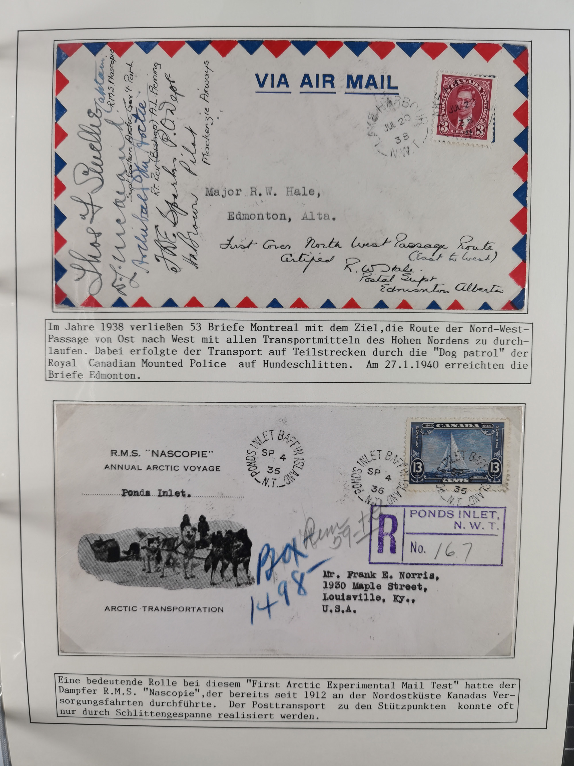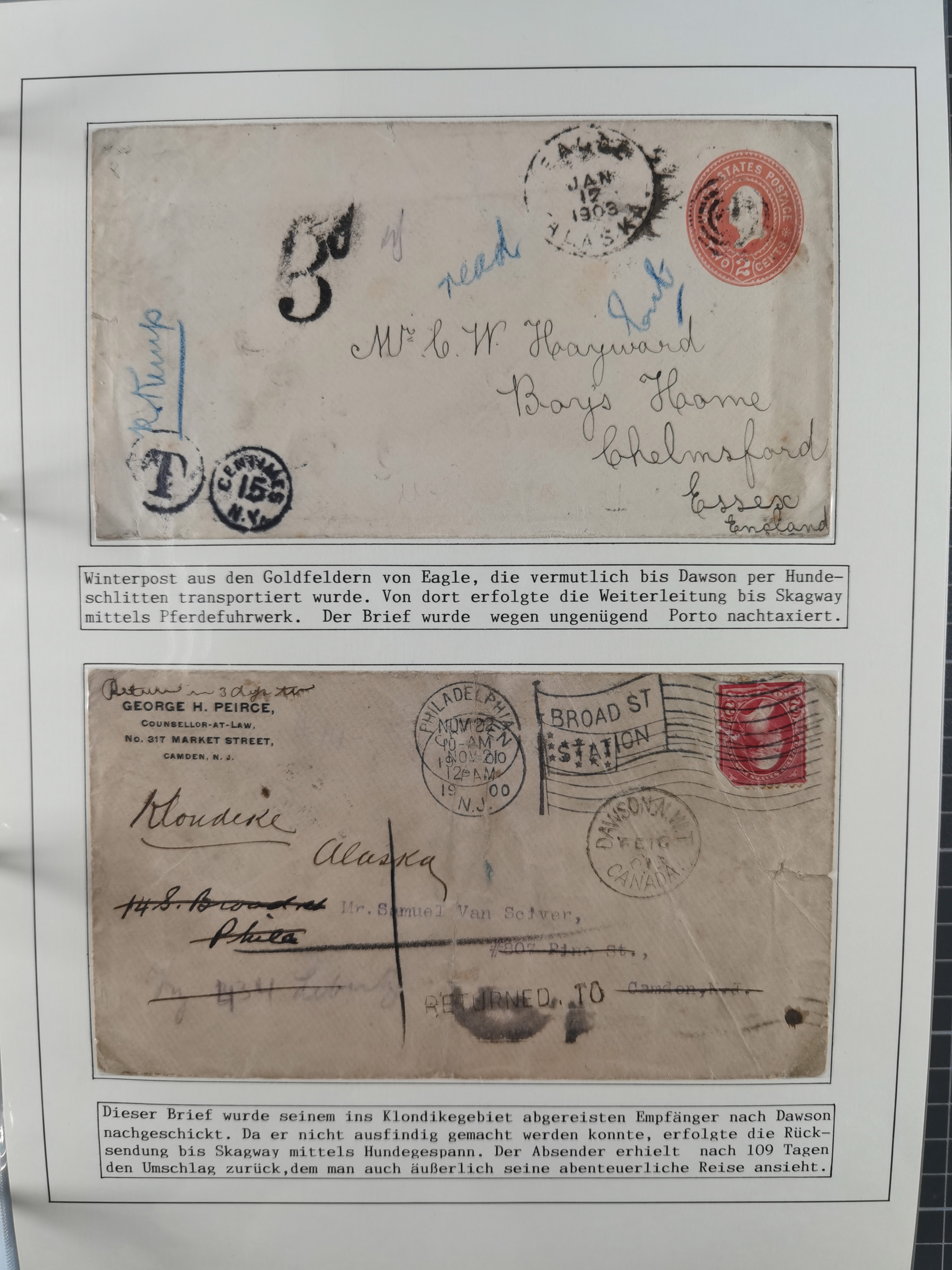 HUNDE: 1893/2010 (ca.), interessante Sammlung mit Schwerpunkt Schlittenhunde, dabei ca. 500 Briefe und Karten, mit u.a. Neufundland Mi.-Nr. 35 im 4er-Block auf Ganzsachenumschlag, 115 FDC, 193II auf Brief, 193 (25), ferner Kanada, USA, Grönland mit u.a. Mi.-Nr. 13 4er-Block auf Brief und Belgien mit u.a. Werbestempeln, Flugpost-Cachets, “By labrador dog team post”, Dogteam-Mail, etc., viele bessere, ferner etwas Literatur, gute Erhaltung