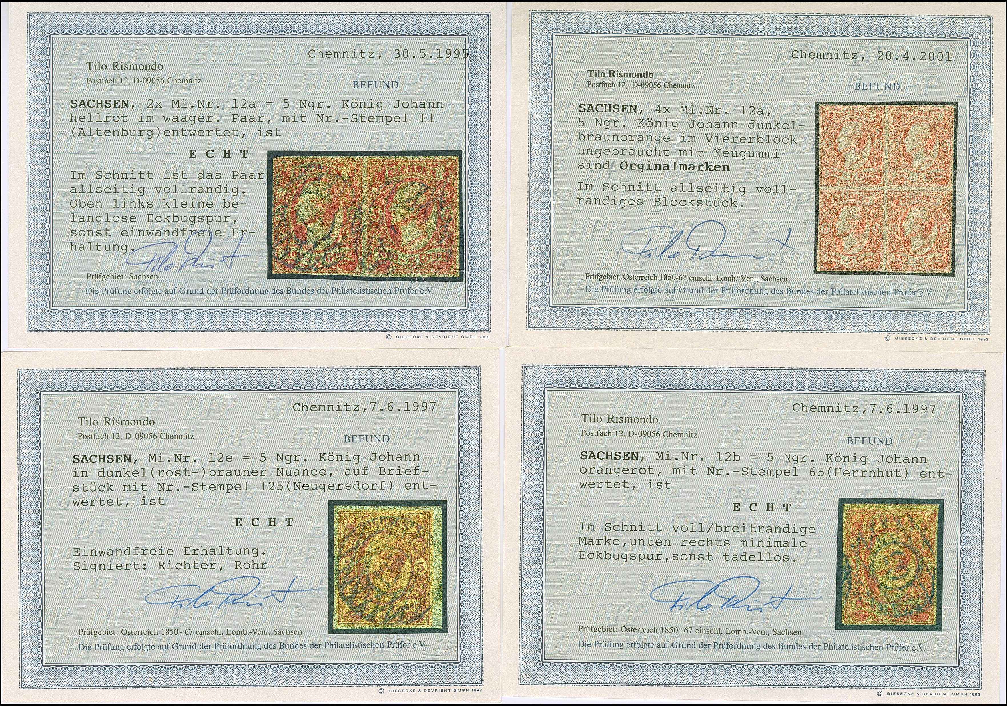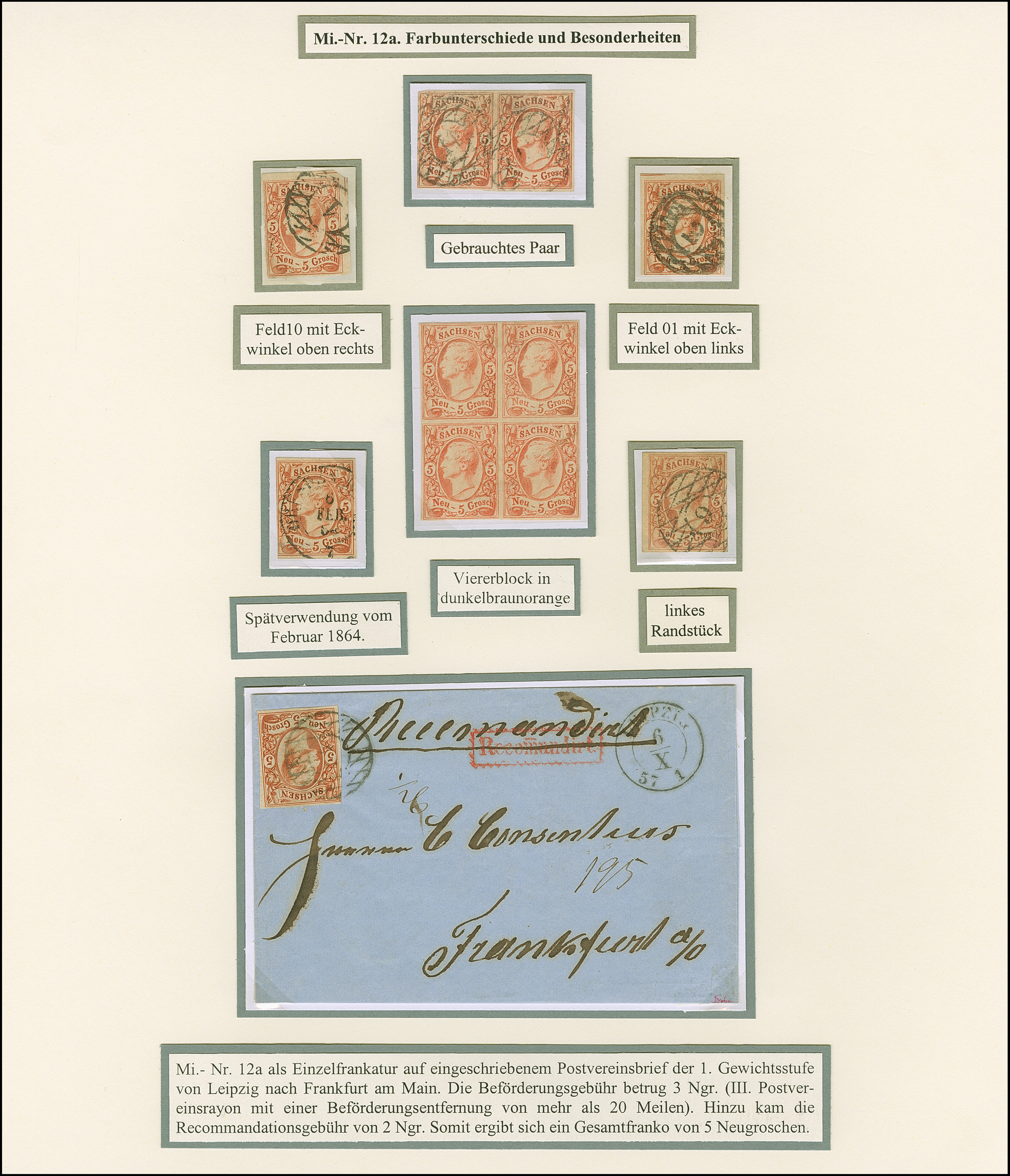 5 Ngr., Farbstudie auf 4 Ausstellungsseiten mit 15 gebrauchten Einzelwerten, gebrauchtem Paar, ungebrauchtem Viererblock und 4 Einzelfrankaturen (je 2 in den Postverein bzw. nach England). 4 Fotobefunde Rismondo BPP