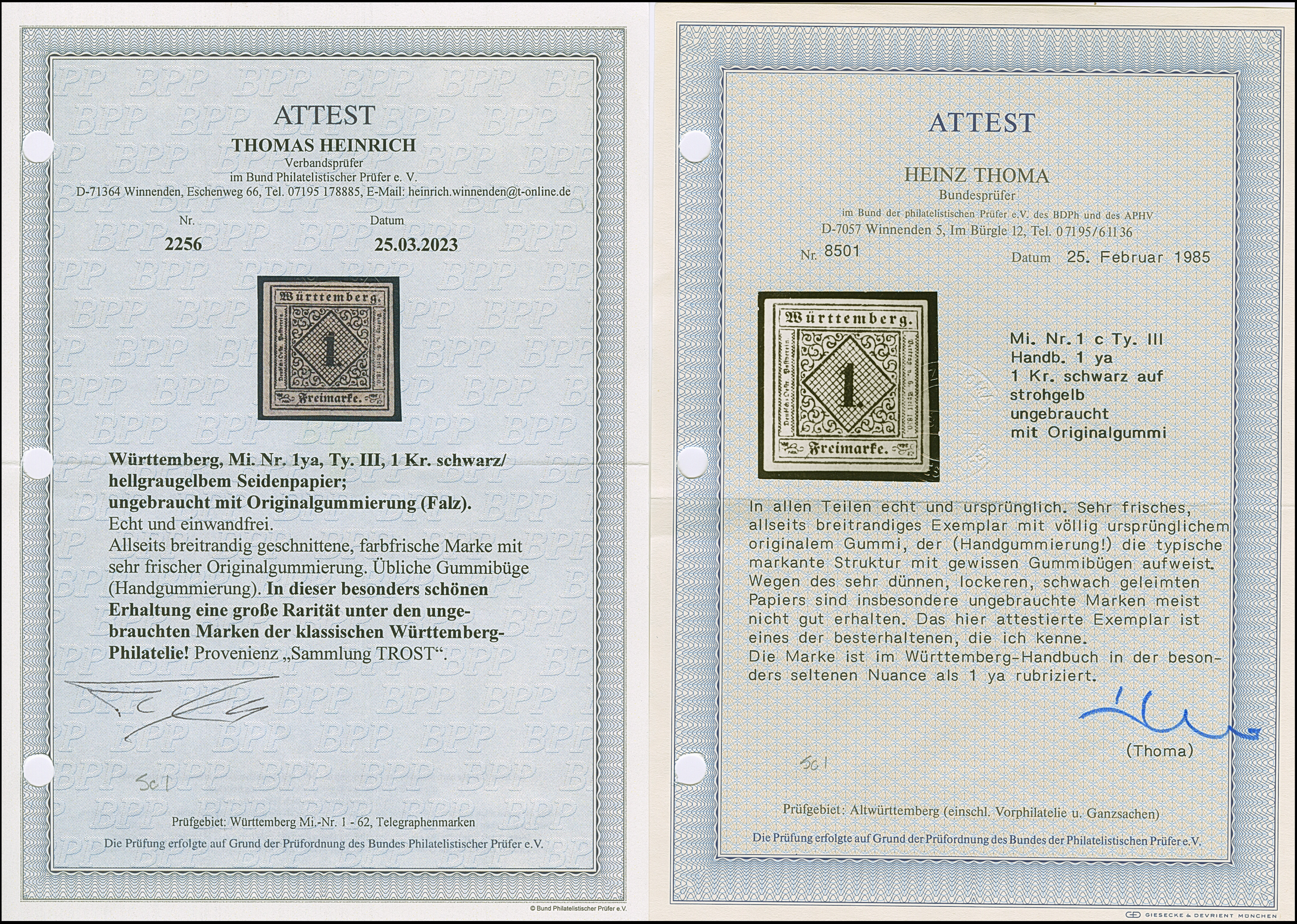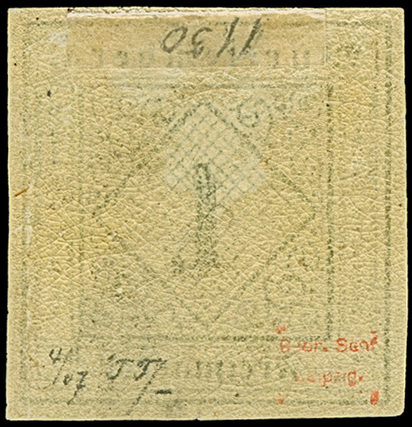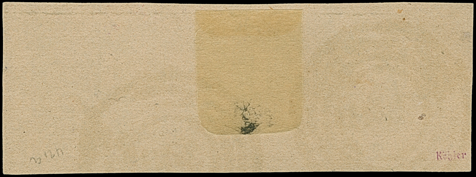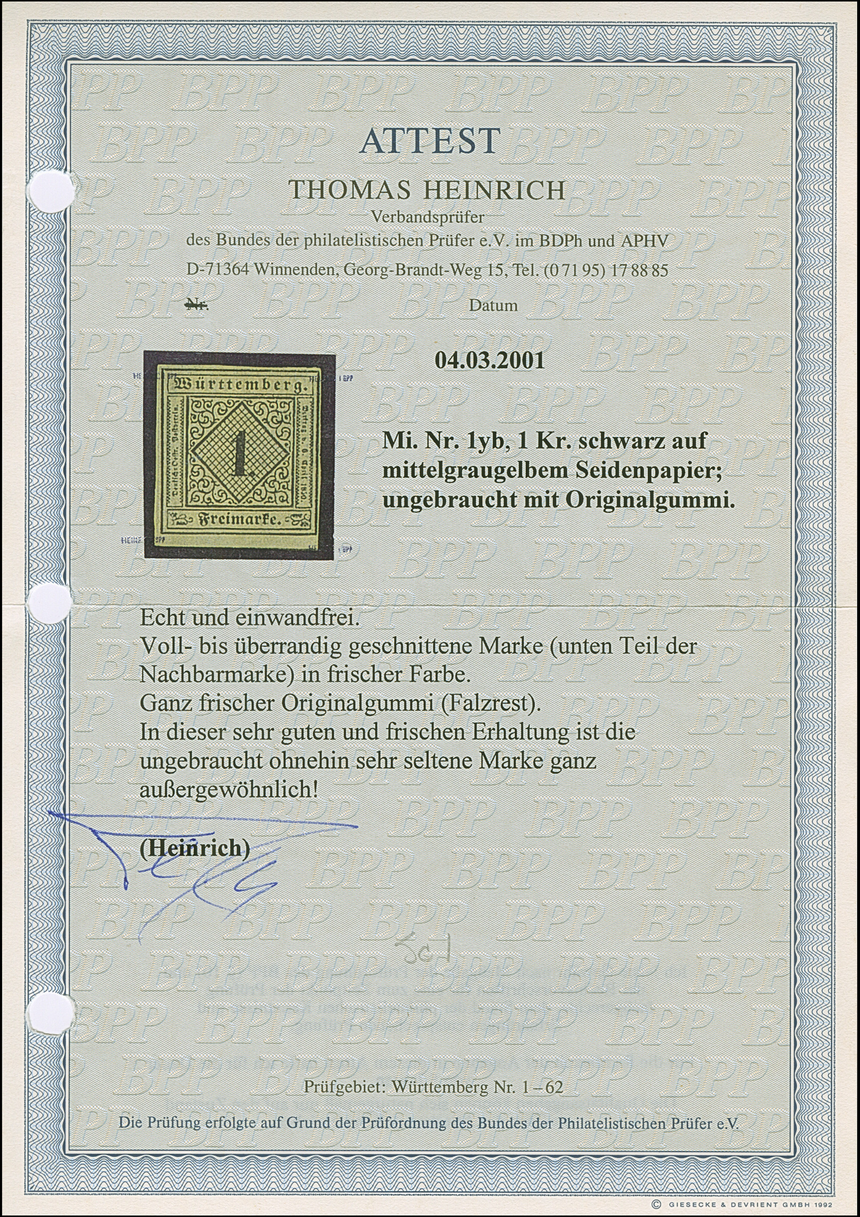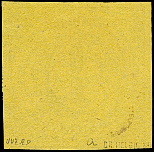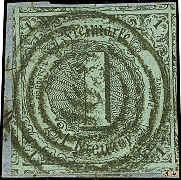 1 Kreuzer auf mittelgraugelbem Seidenpapier, farbfrisch und voll-bis überrandig, unten mit Teil der Nachbarmarke, ungebraucht mit frischem Originalgummi. Tadellos. Eine in und gebrauchte Erhaltung außerordentlich seltene Marke; Profi hat nur eine Hand voll Exemplaren registriert. Unsigniert, Fotoattest Heinrich BPP (2001)