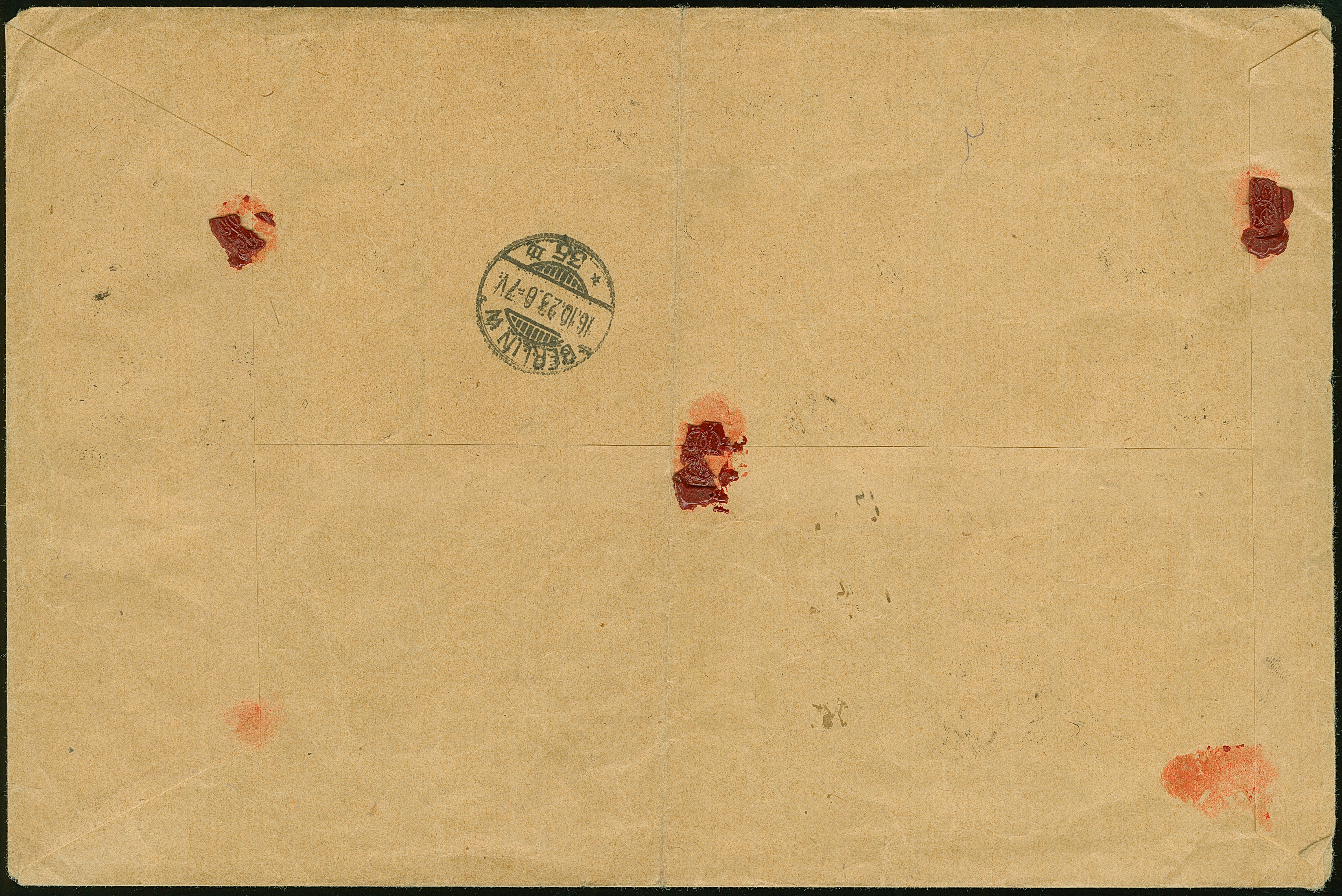 1923, Aufdruck-Ausgaben der Hochinflation komplett mit 36 verschiedenen Werten inkl. 800 Tausend auf 500 M. je mit Stempel “BERLIN W81 *b 15.10.23” auf überfrankiertem Wertbrief im Ortsverkehr mit Ankunftsstempel. Der Umschlag mit senkrechter Faltung und Randspuren, die Marken fast alle mit zentrischer Entwertung und bis auf ganz wenige Eckzahnbüge durchgehend in einwandfreier Erhaltung, Fotoattest Oechsner BPP (2010)