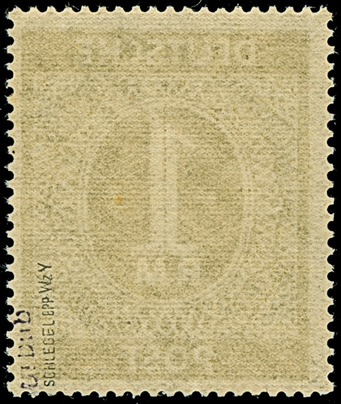10 Pfg. dunkelgelblichgrün, Type I, gezähnt L 11 und mit Wasserzeichen 1X, postfrisch und in tadelloser Erhaltung. Bisher sind weniger als 15 Exemplare in postfrischer/ungebrauchter Erhaltung bekannt, unsigniert mit Fotoattest Stemmler BPP (2008)