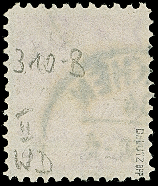5 Pfg. dunkel(grau)ultramarin, Type V, gezähnt K 11¼ : 11 mit Wasserzeichen 3X (fallende Wellenlinien), gestempelt mit zwei verkürzten Zähnen, ansonsten in einwandfreier Erhaltung. Ein schönes Exemplar mit dieser äußerst seltenen Wasserzeichen-Abart, bisher sind nur ganz wenige Marken bekannt, Fotoattest Rolle BPP (2019)