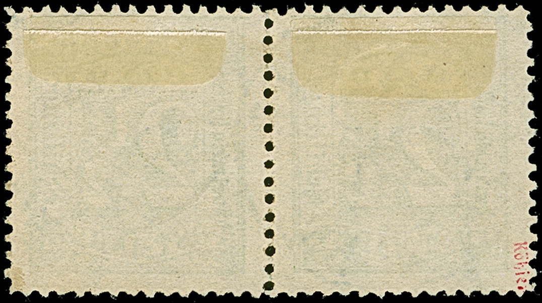 2½ Sch. dunkelolivgrün in 2 stark unterschiedliche Nuancen, jeweils im ungezähnten Paar, ungebraucht mit Originalgummi.