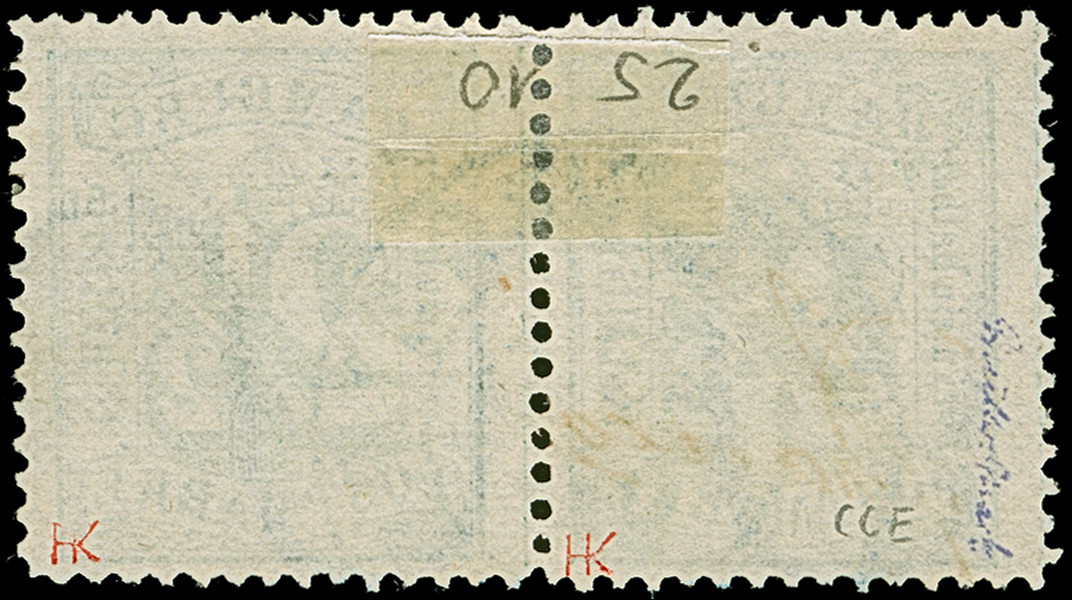 1½ Sch. rosakarmin im waagerechten Paar, mit sauber aufgesetztem blauen DKr. auf