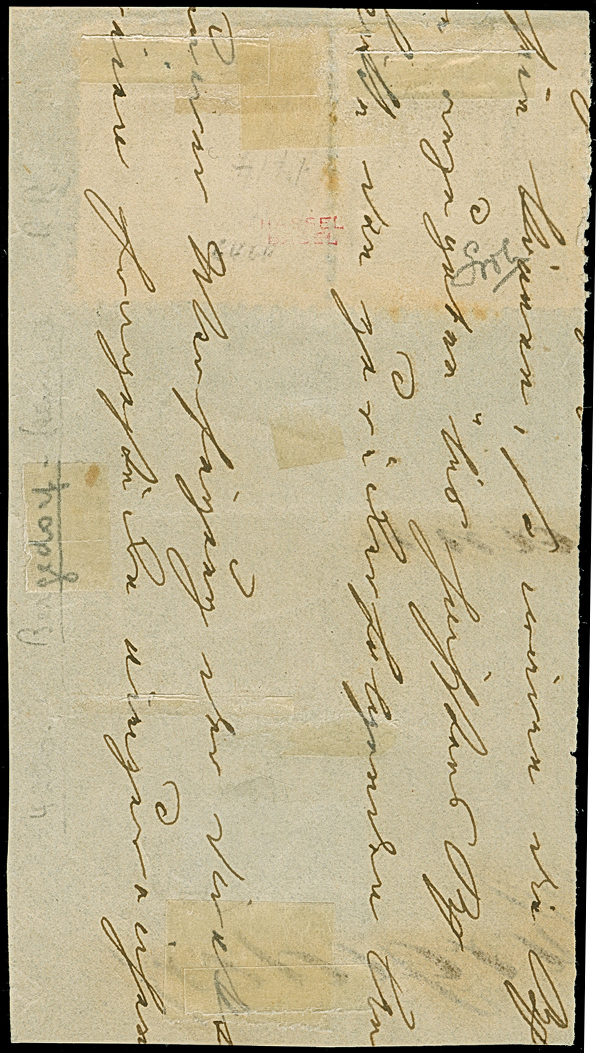 ½ Sch. schwarz, waagerechtes Paar mit jeweils sauber aufgesetztem Strichstempel auf größerem Briefstück (gelöst und replaziert). Im Zwischenraum gefaltet, leichte Unzulänglichkeiten. Signiert Hassel und Grobe, Fotoattest Dr. Mozek BPP (2026)