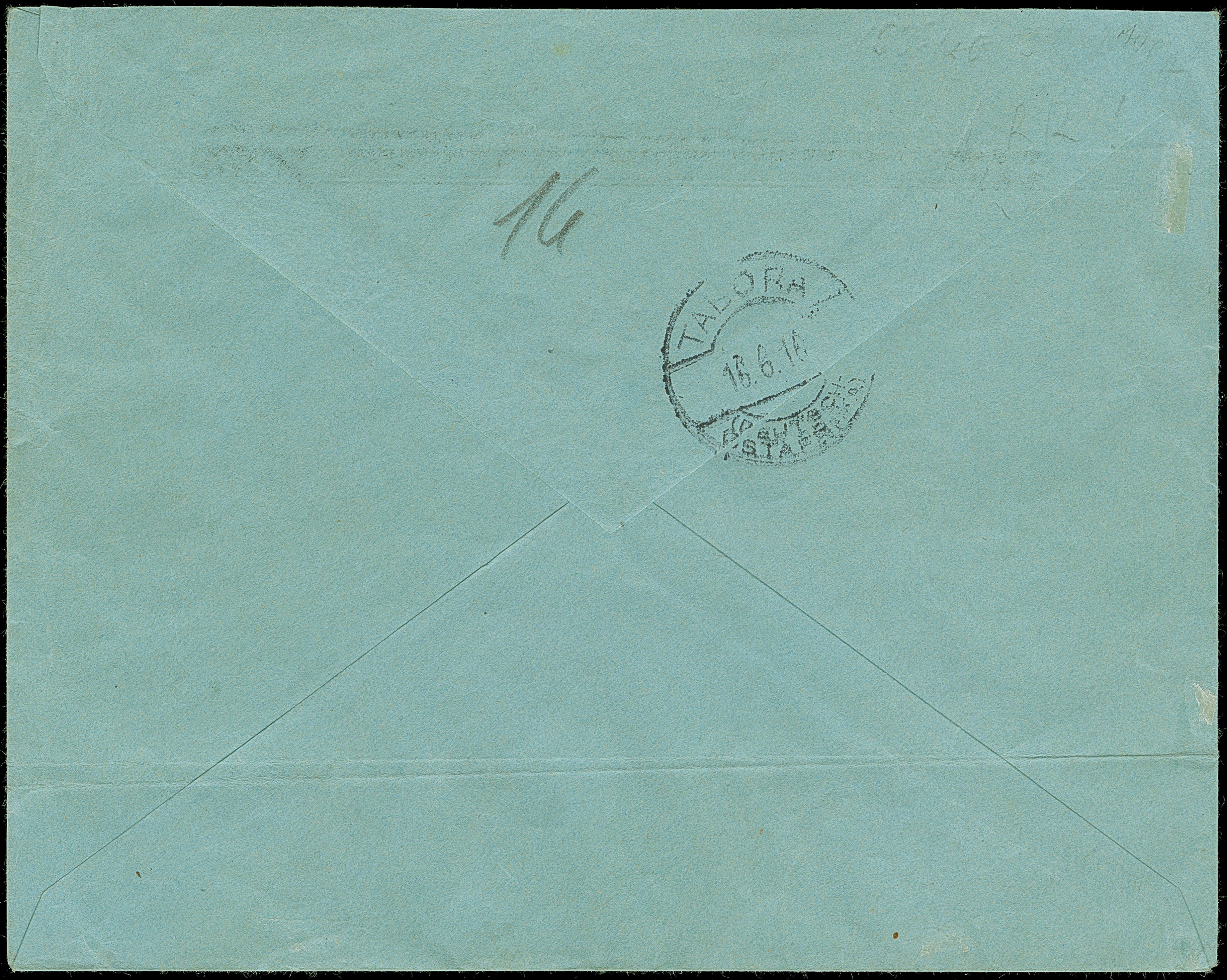 1916, “Fr. lt. Einn. Nachw. in Tanga” violetter Rahmenstempel und L2 “Frankiert mit 7½ H.” als Barfrankierung auf Brief von “TANGA (DOA) a 7.6.16” nach Tabora mit geänderter Adresse und Ankunftsstempel vom 16.6.16. Der Umschlag unten mit waagerechter Faltung, ansonsten in guter Erhaltung. Eine ganz seltene Art der Barfreimachung von Tanga, die nur am 7.6.1916 verwendet wurde