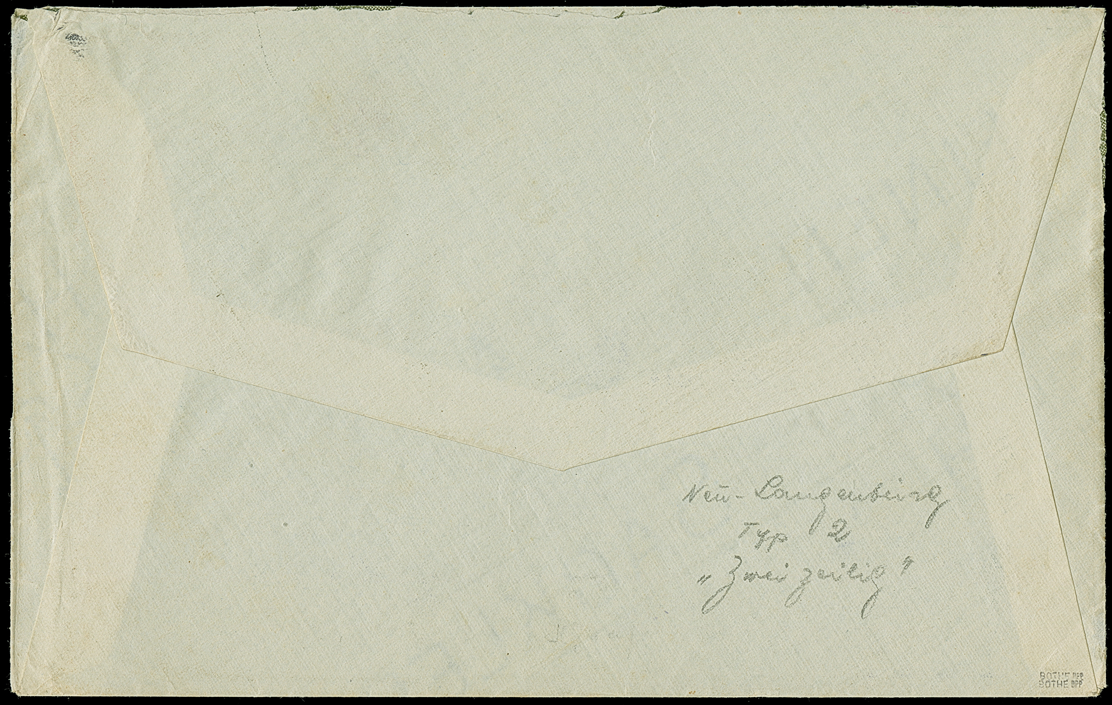 "Neu Langenburg 12.2.13" der zweizeilige Langstempel mit handschriftlich ergänzter Tageszahl, sauber leicht übergehend nebengesetzt auf Briefkuvert, frankiert mit 7½ H., entwertet durch Federkreuz, an die bekannte Firma Rudolf Hertzog in Berlin, mit vorderseitigen Eingangsstempel vom 4.4.13. Ein besonders schönes Bedarfsstück dieser großen Stempel-Seltenheit; von dem 2-zeiligen Notstempel hat PROFI nur 4 weitere Belege registriert; mit der handschriftlich zugefügten Tageszahl Unikat. Signiert Bothe BPP mit Fotoattest (1980)