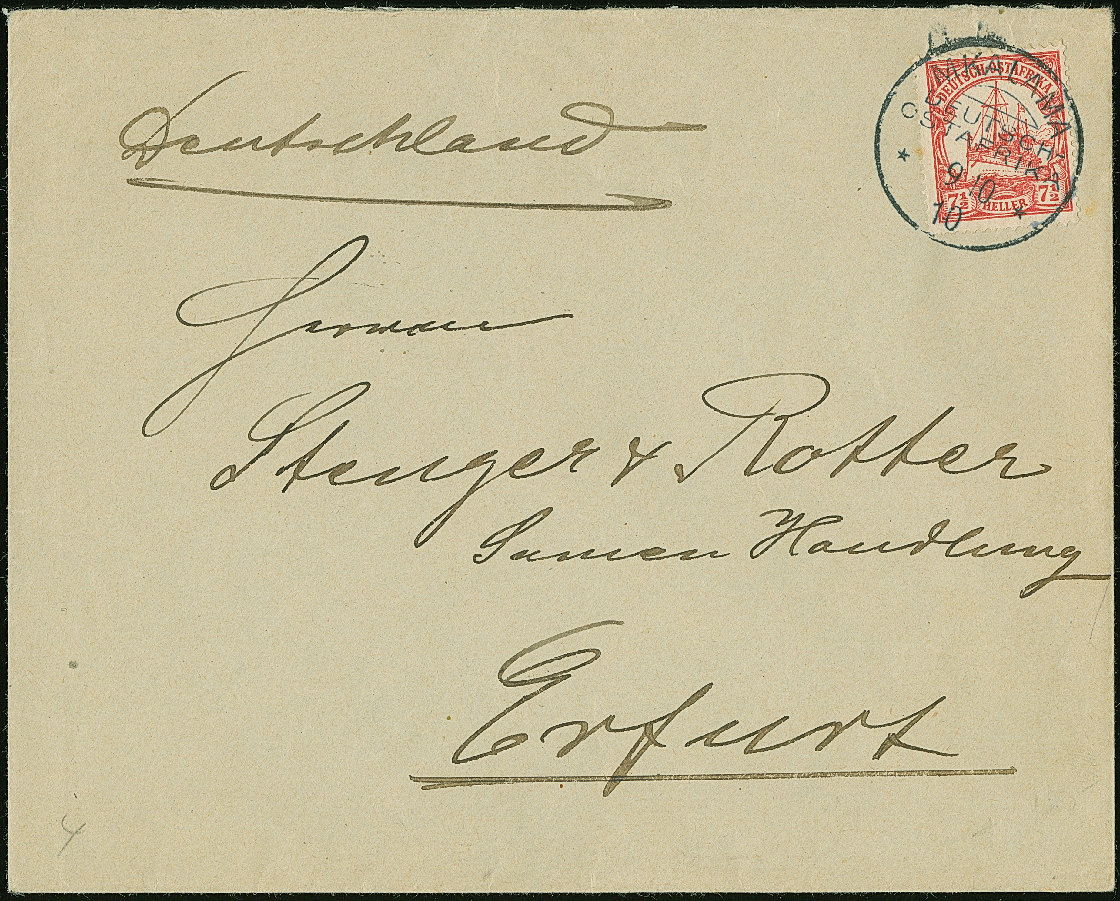 "MKALAMA 9/ 10 10", sauber auf 7½ H., portogerecht auf Bedarfsbrief nach Erfurt