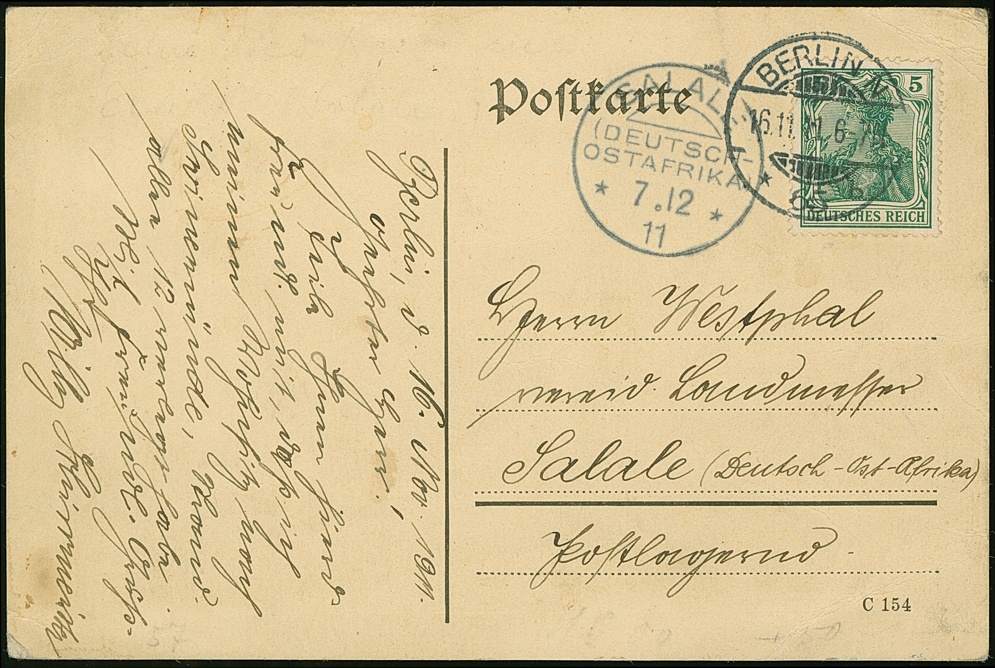 "SALALE 7.12 11", sehr klar als Ankunftsstempel auf Bedarfskarte aus Berlin