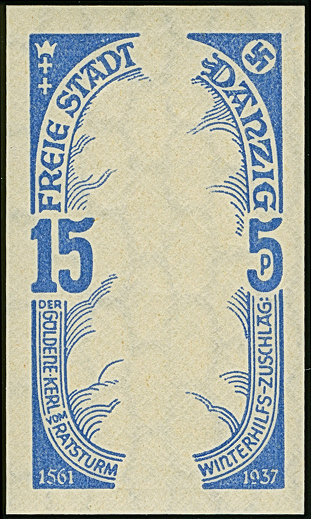 1937, WHW Denkmäler 15 Pfennig ultramarin, ungezähnter Phasendruck nur des Rahmens, postfrisch, tadellos
