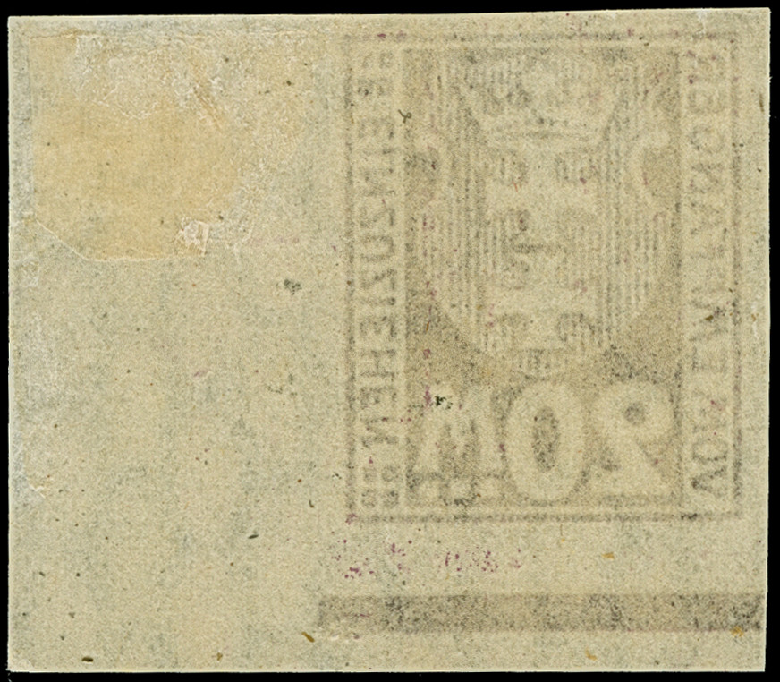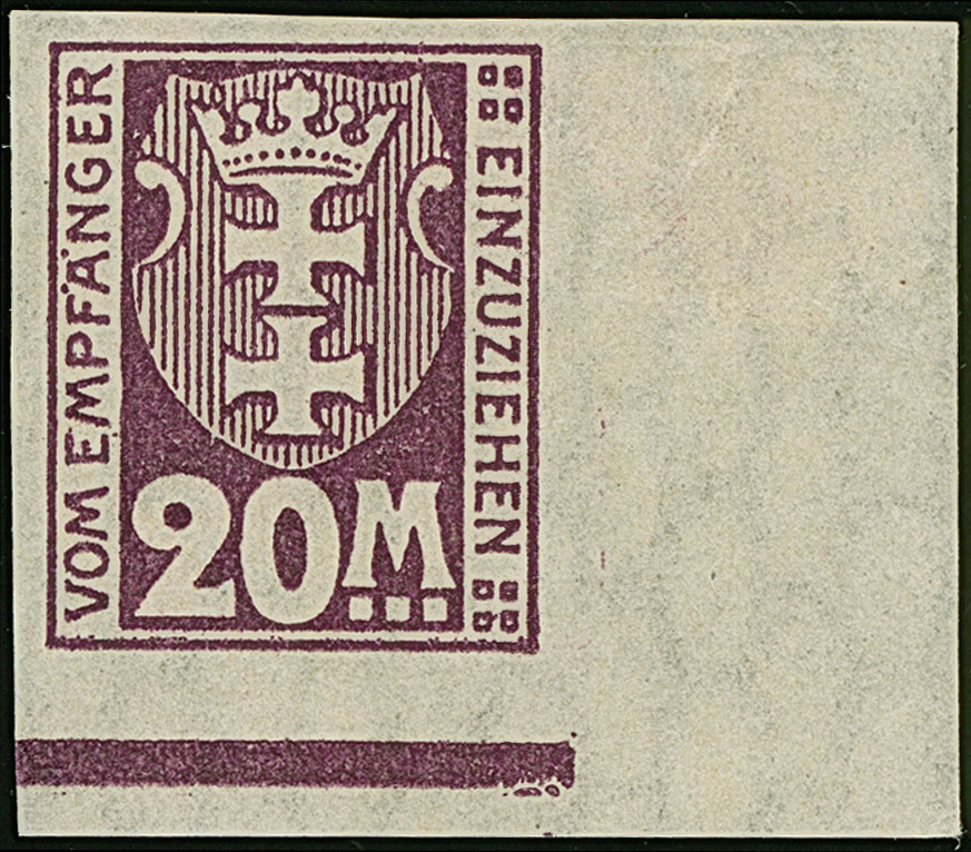 1923, Staatswappen 20 Mark, ungezähnt, ohne Aufdruck, stehendes Wasserzeichen, aus der rechten unteren Bogenecke, postfrisch bzw. Falz im Rand, tadellos, Fotoattest Soecknick BPP (2018)