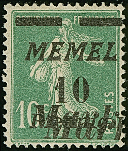 1922, M. auf 10 Pfennig auf 10 Centime dunkelopalgrün, mit klarem Doppeldruck, postfrisch, tadellos, u.a. sign. Dr. Petersen BPP mit Fotoattest (1985)