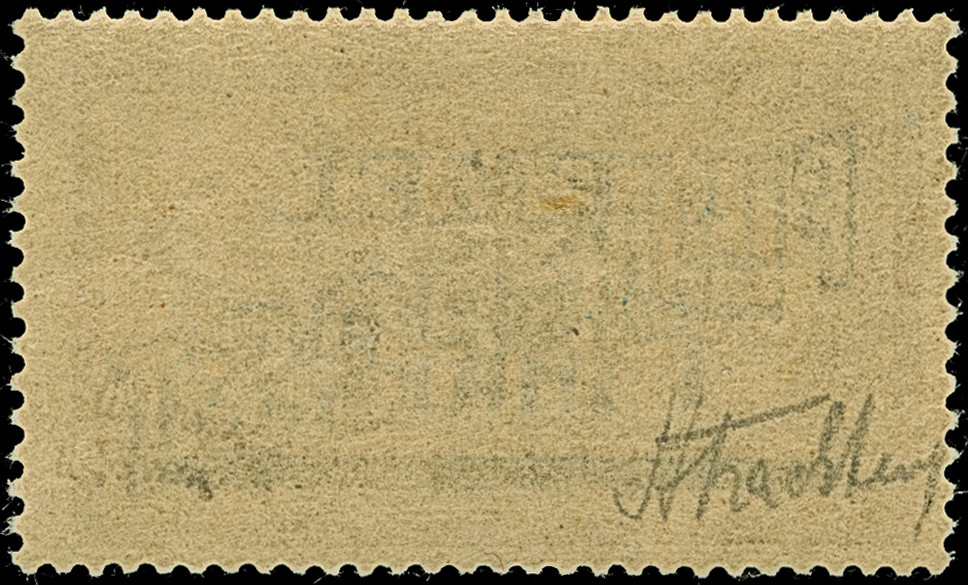 1921, Flugpost 1 mark auf 50 Centimes dunkelgrün/grauultramarin auf weißem Papier, doppelter Aufdruck, postfrisch, tadellos, eine seltene Marke, sign. Trachtenberg sowie Fotoattest Dr. Petersen BPP (1996)