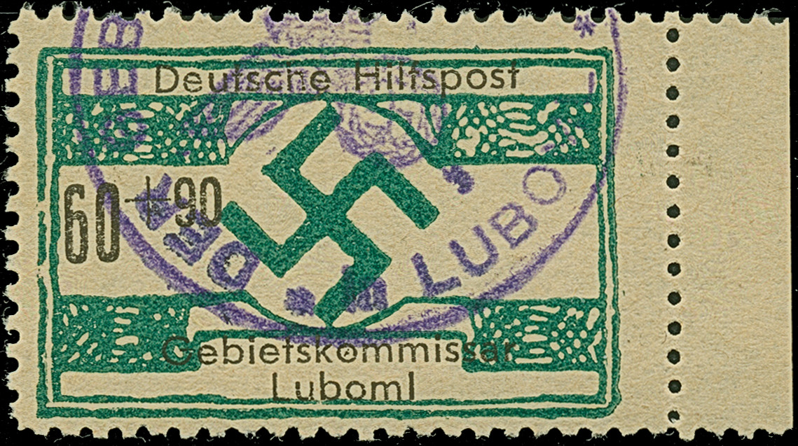 1944, Luboml 6-60 Pfennig, einheitlich mit rechtem Seitenrand, sauber mit Dienstsiegel entwertet, tadellos