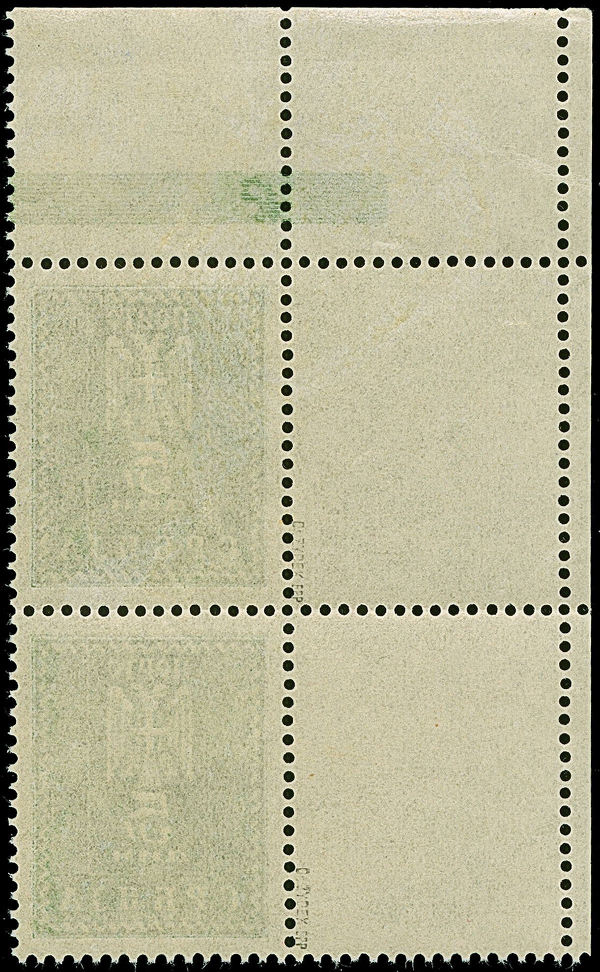 1943, 5 Dinar, mit Leerfeld links in Markengröße, senkrechtes Paar aus der linken oberen Bogenecke, postfrisch mit kleiner Haftstelle im Oberrand, tadellos