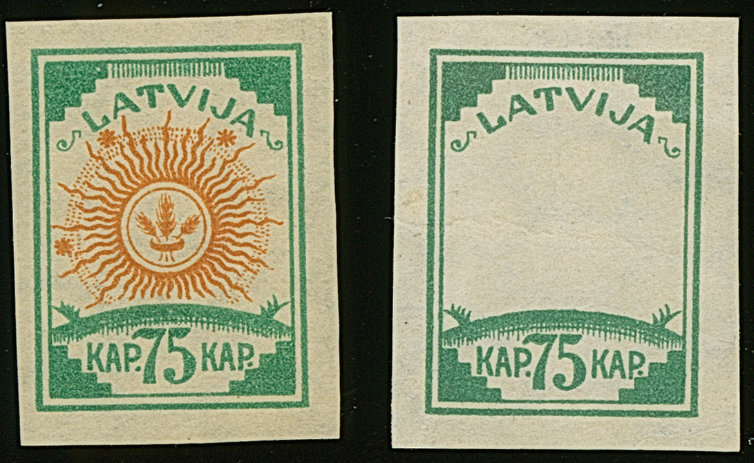 1919, Ear of corn 75 kopeks green/orange and frame only, on honeycomb watermarked paper, without gum, frame only small crease, otherwise fine