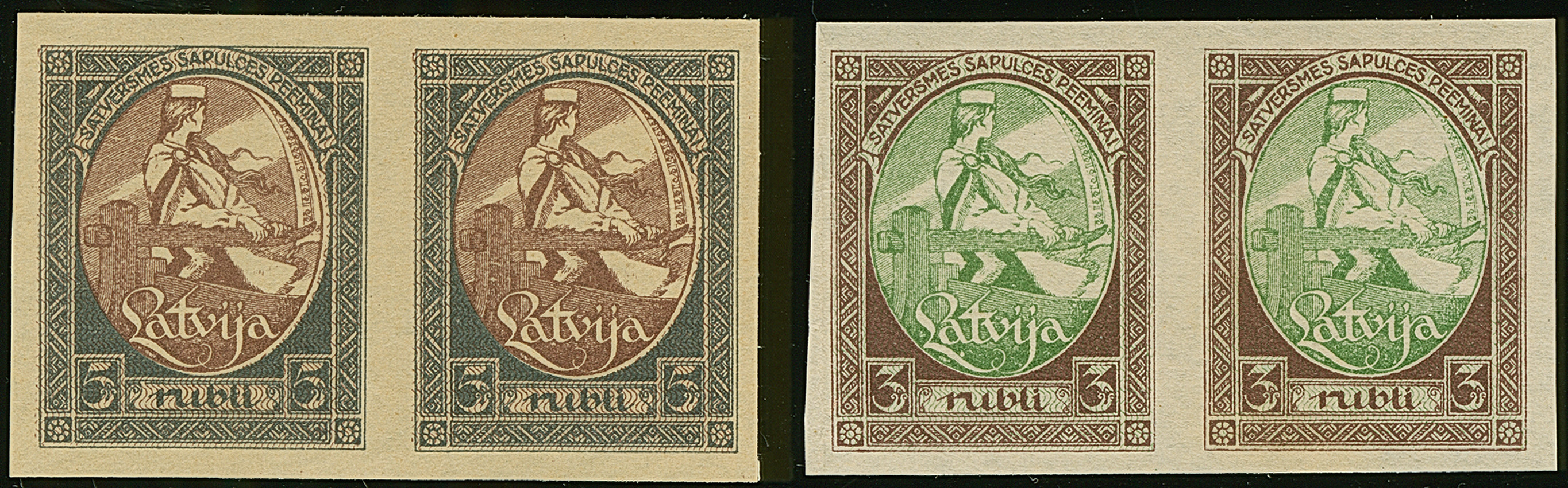 First Constitution Assembly 3-5 rubel, imperforated archive proofs, horizontal pairs, without gum, very scarce, fine, signed R