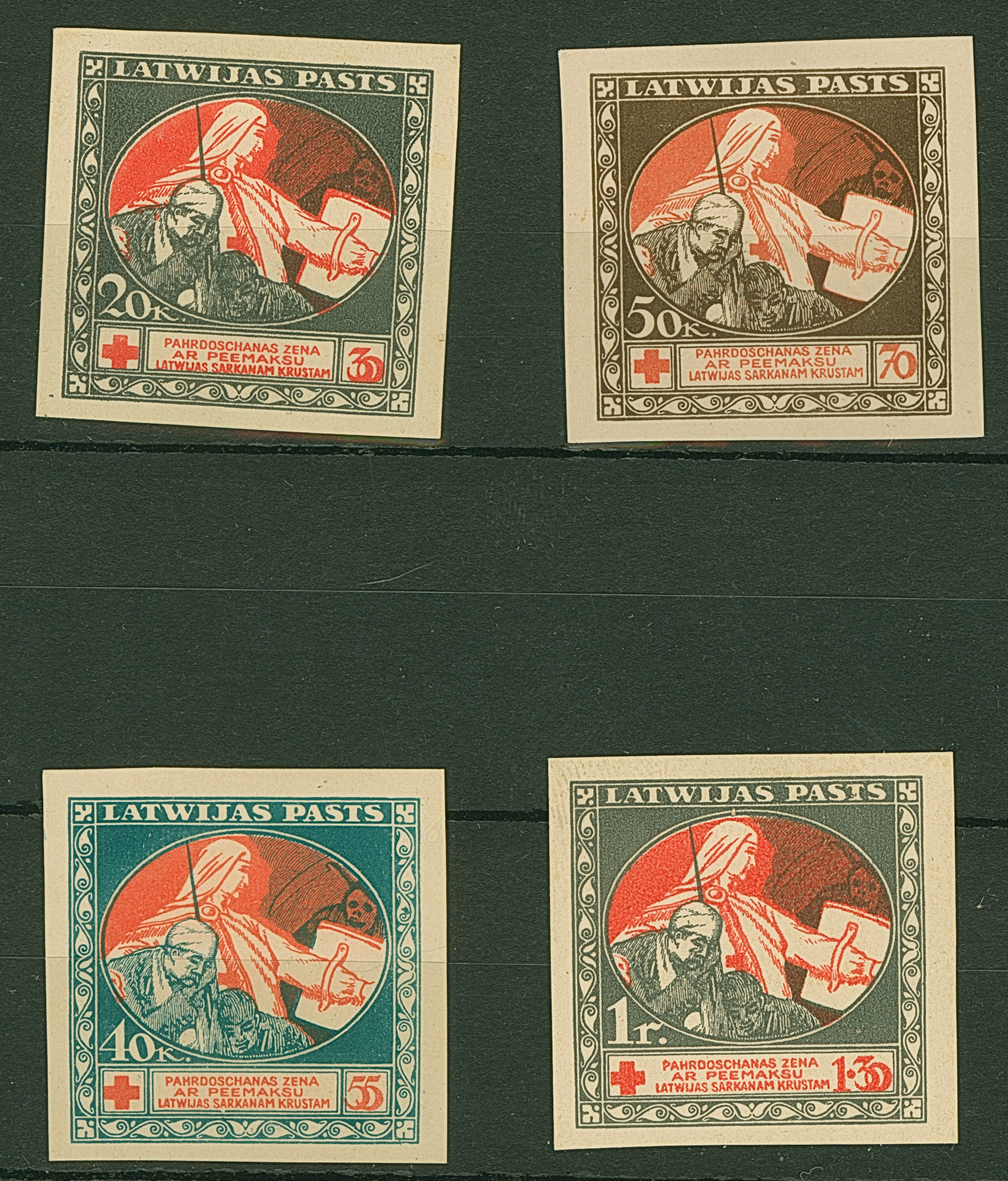 1920, Red Cross 20 kopeks -1 rubel on chalky paper, different colors, 40 kopeks with additional center in red on reverse, fine, signed Hofmann BPP