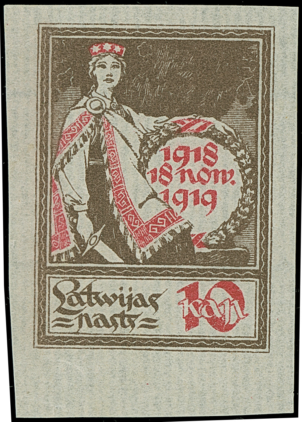 1919, 1st Anniversary of Independence 10 kopek, imperforated archive proof, without gum, very rare only few copies known, fine