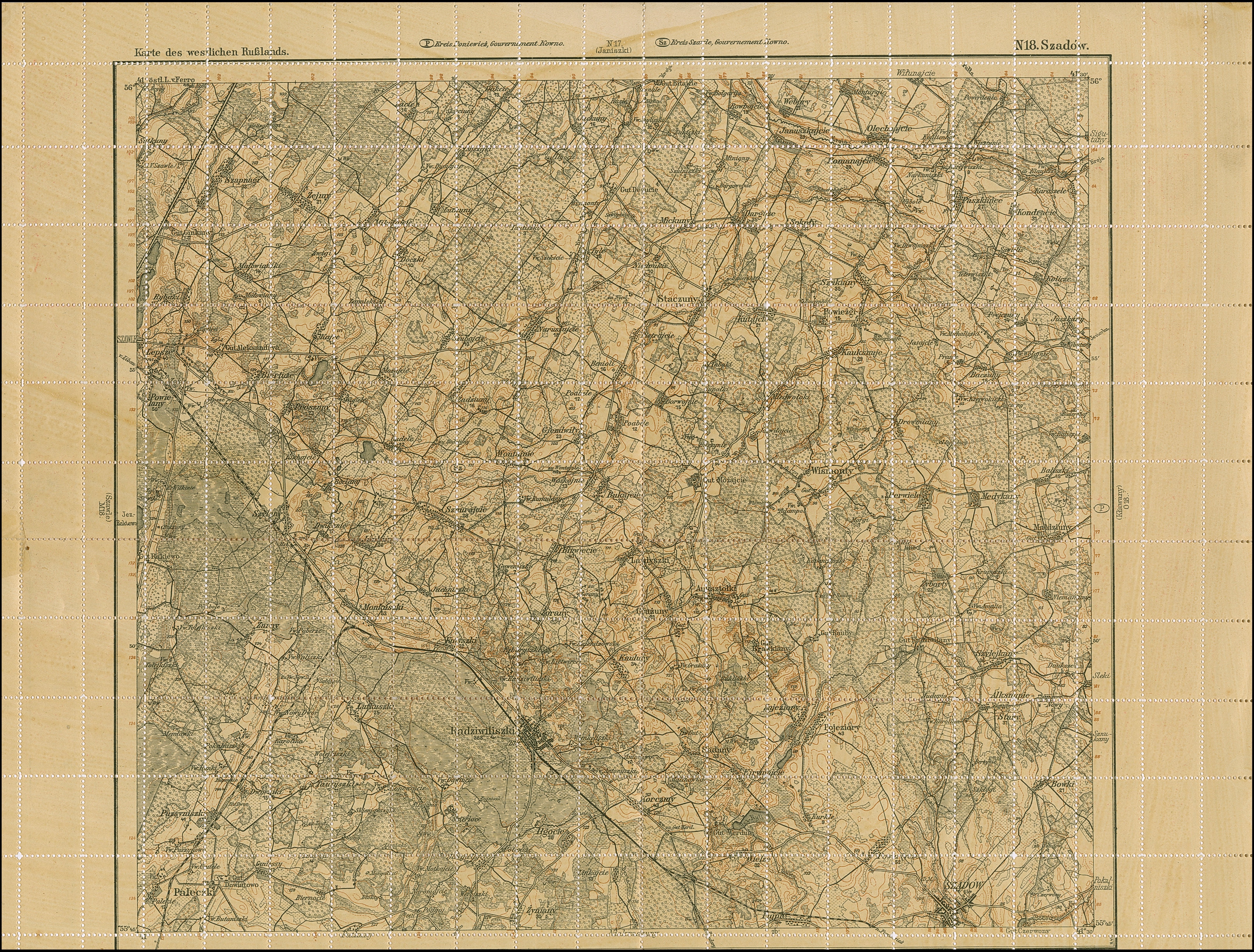 1919, Ear of corn 10 kopek red, perforated, complete sheet on map N18 Szadow, mint never hinged, some minor perf separations, hinge in the left margin, otherwise fine