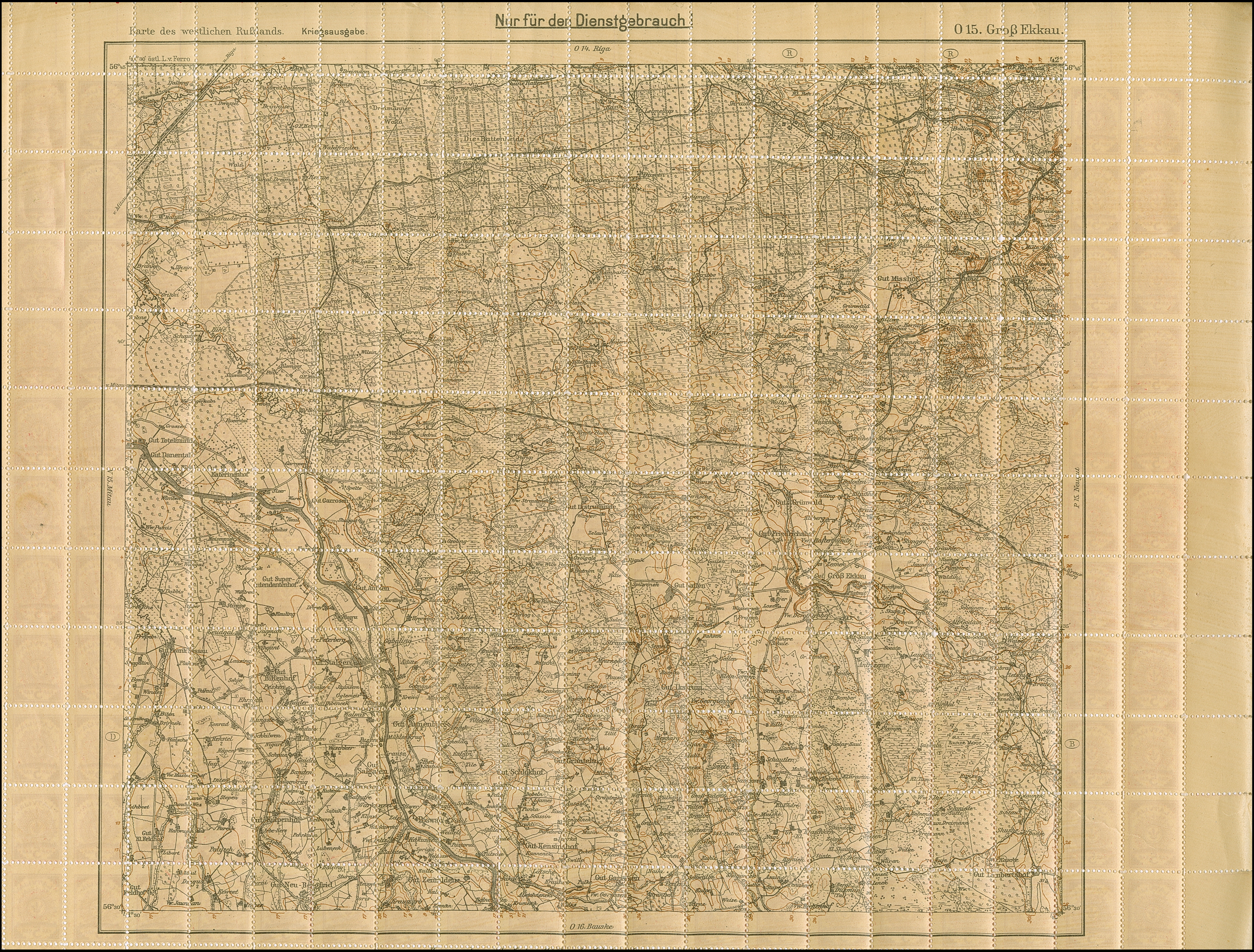 1919, Ear of corn 10 kopek red, perforated, complete sheet on map O15 Groß Ekkau, mint never hinged, some minor perf separations, otherwise fine