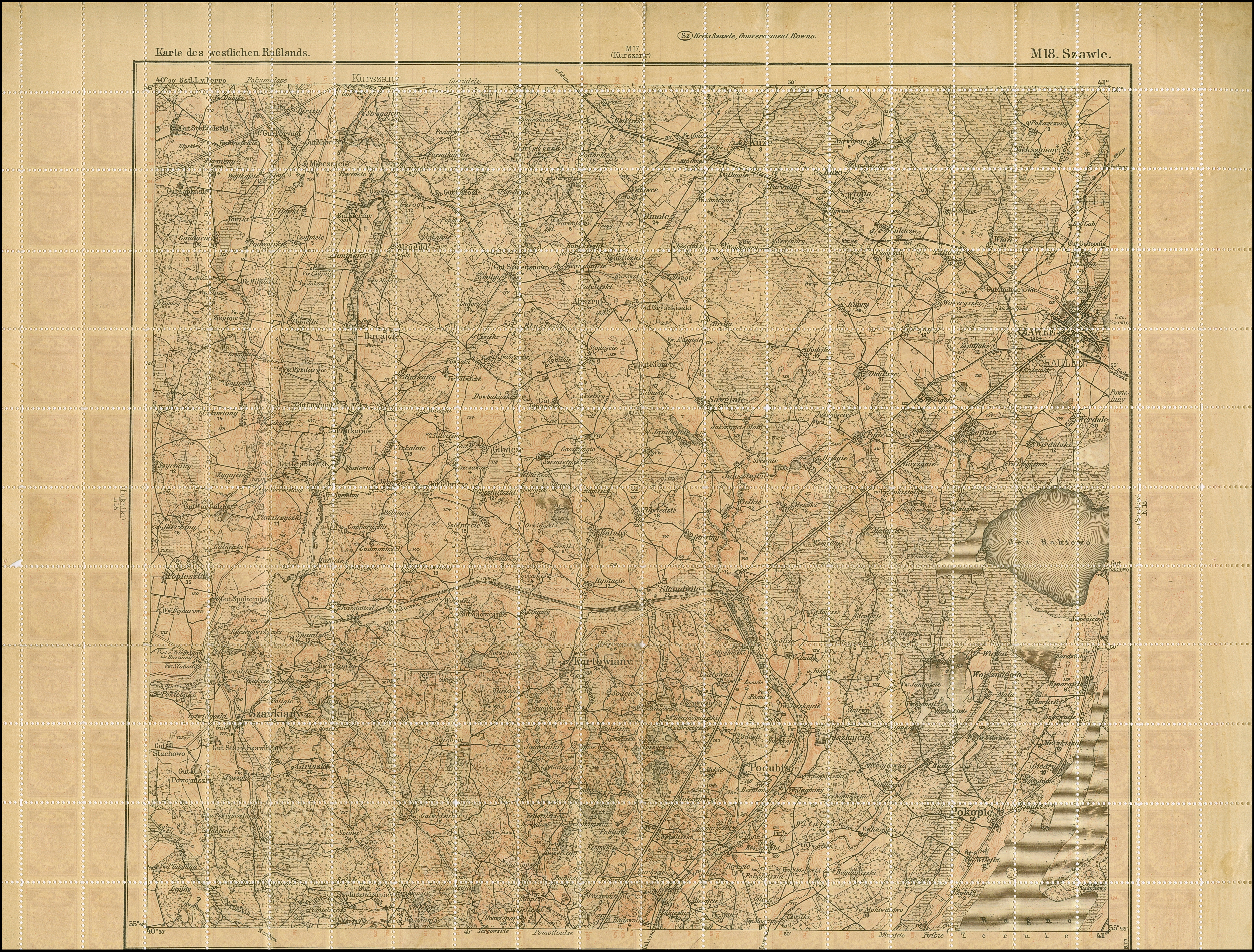 1919, Ear of corn 10 kopek red, perforated, complete sheet on map M18 Szawle, mint never hinged, some minor perf separations, otherwise fine