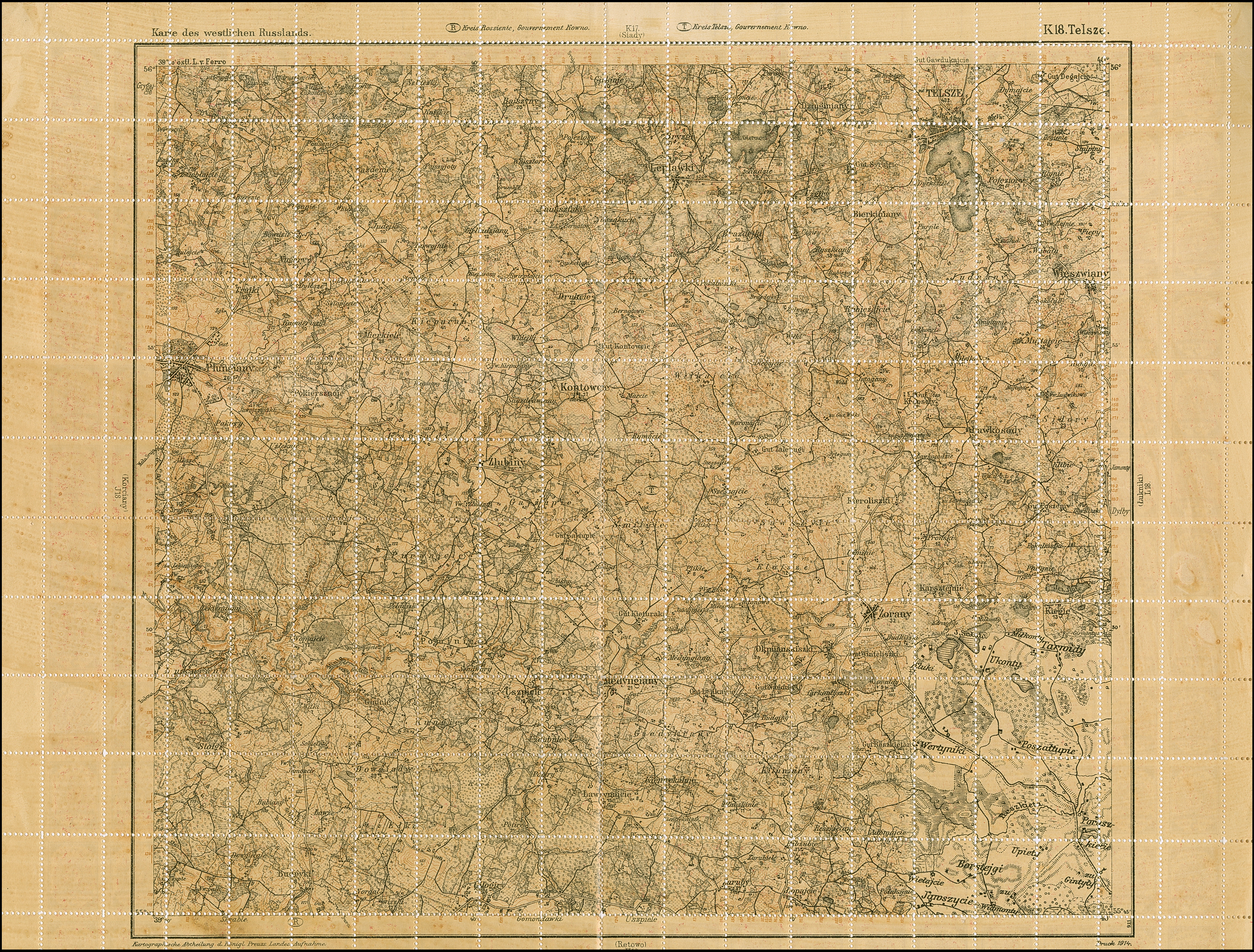 1919, Ear of corn 10 kopek red, perforated, complete sheet on map K18 Telsze, mint never hinged, some minor perf separations, otherwise fine