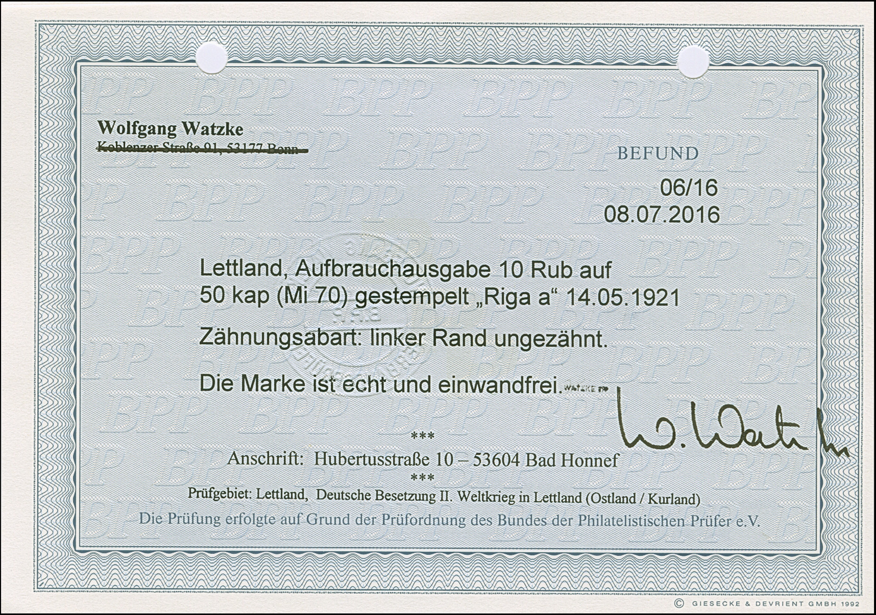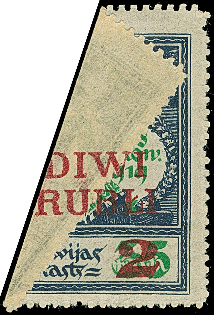 1931, 10 rubel on 50 kopeks, left marginal single, imperforated at left, used with clear cds. “RIGA 14.5.21”, fine, certificate Watzke BPP (2016)