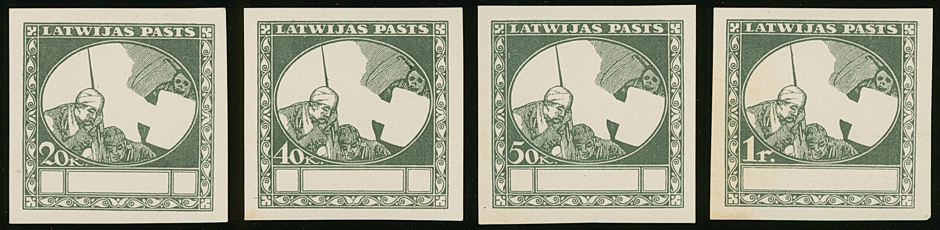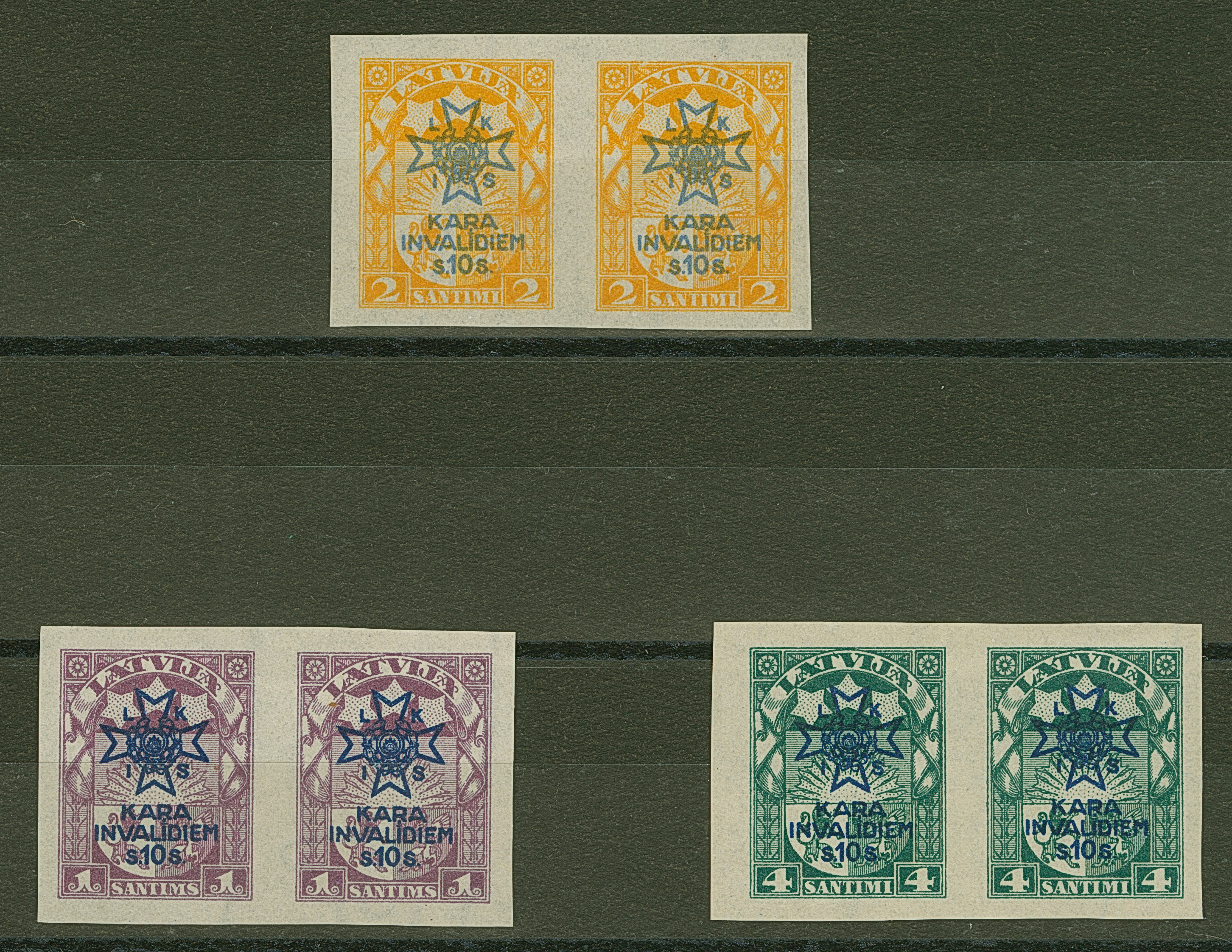 1923, War Invalid Fund 1-4 santimi, archive proofs, imperforated horizontal pairs, without gum, scarce, fine