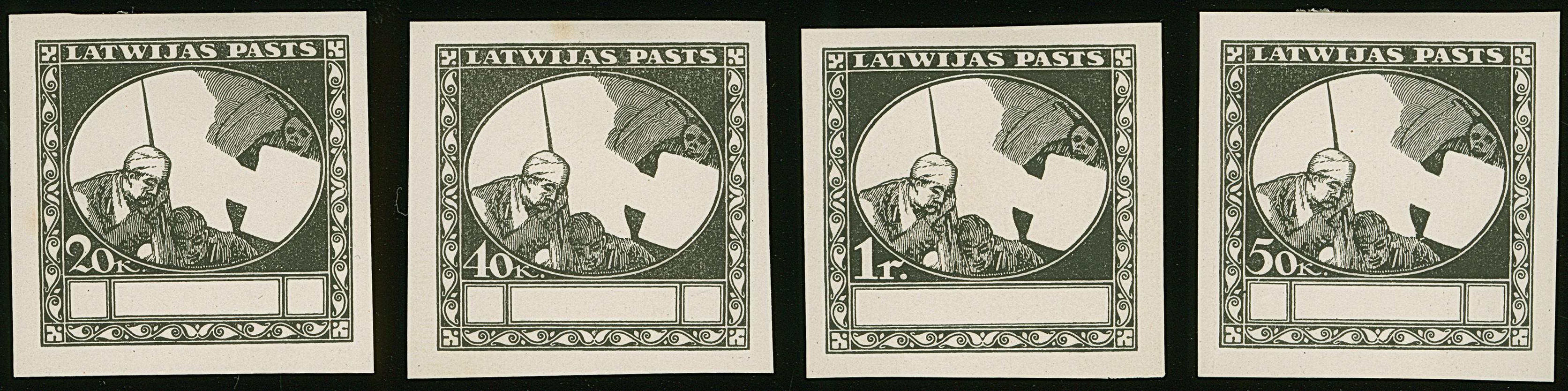 1925, Coat of arms 6-25 santimi, imperforated archival proofs, horizontal pairs with sheet margin, without gum, fine