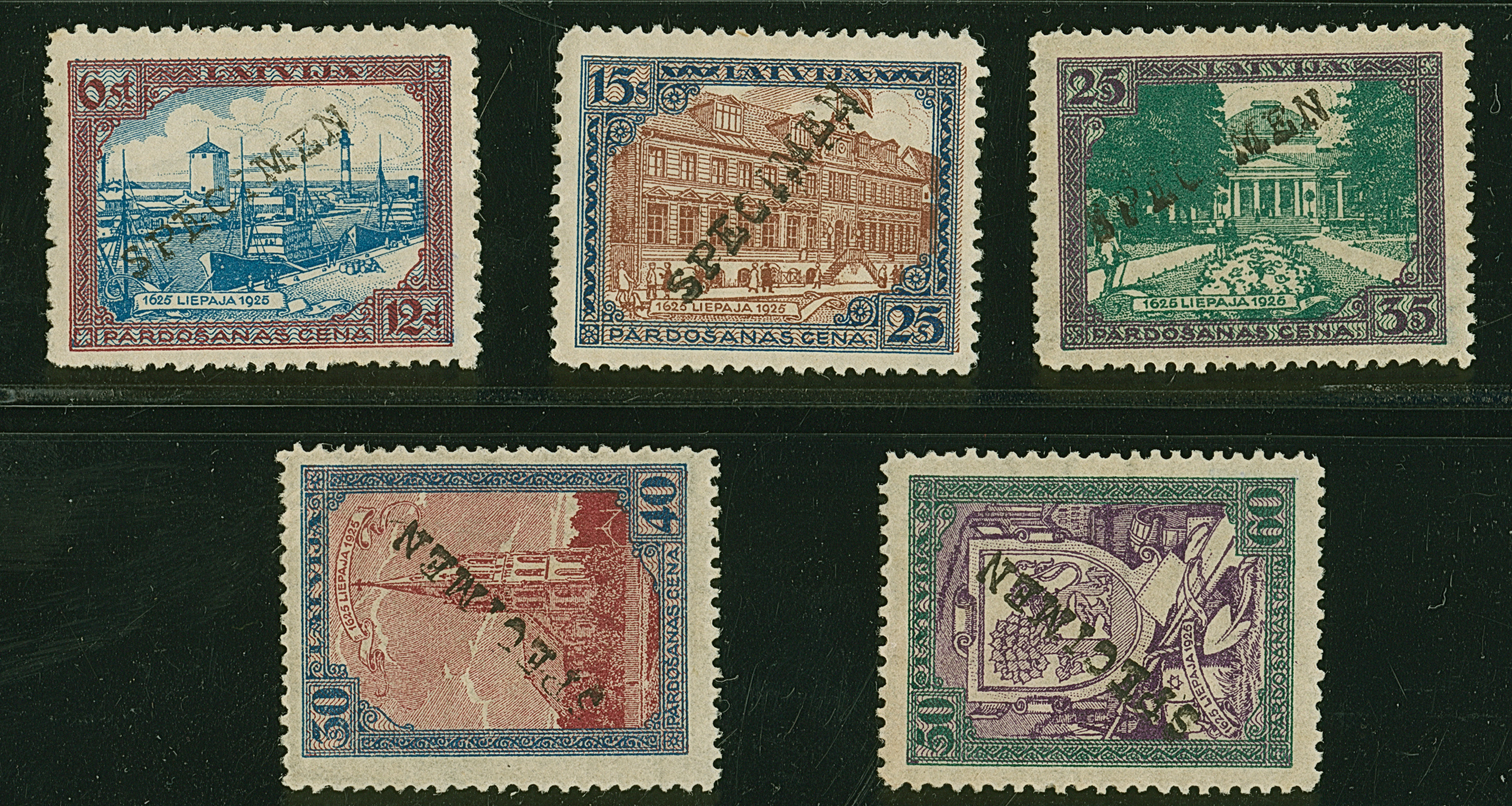1925, Tercentenary of Liepaja 6-50 s., complete set, each with handstamp “SPECIMEN”; unused, few minor imperfections, signed v. Hofmann BPP
