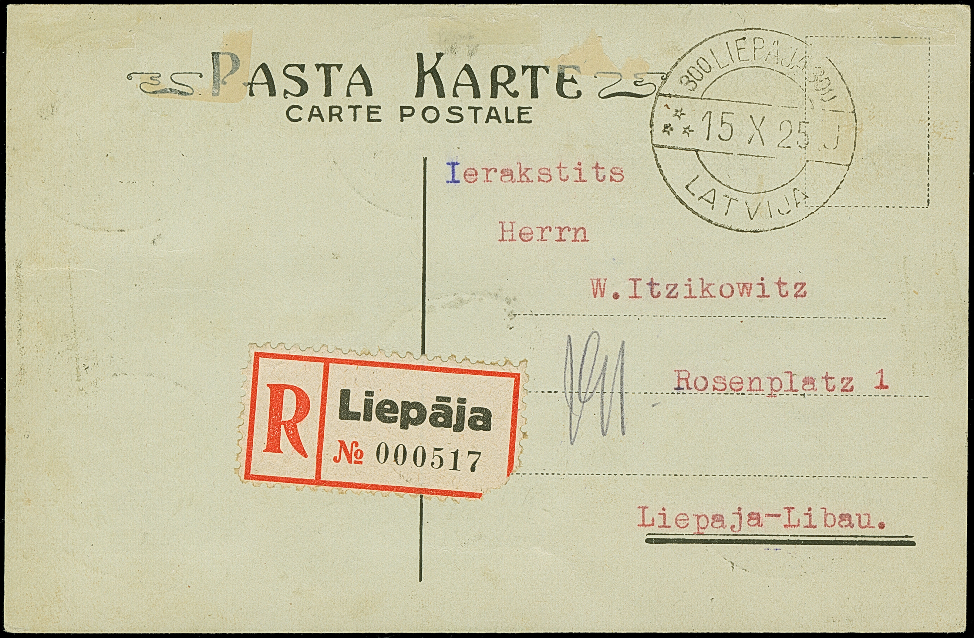 1925, Tercentenary of Liepaja 6-50 s., complete set, tied by special cds. to reverse of local registered card, fine and scarce