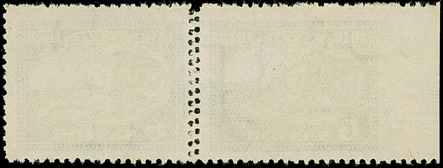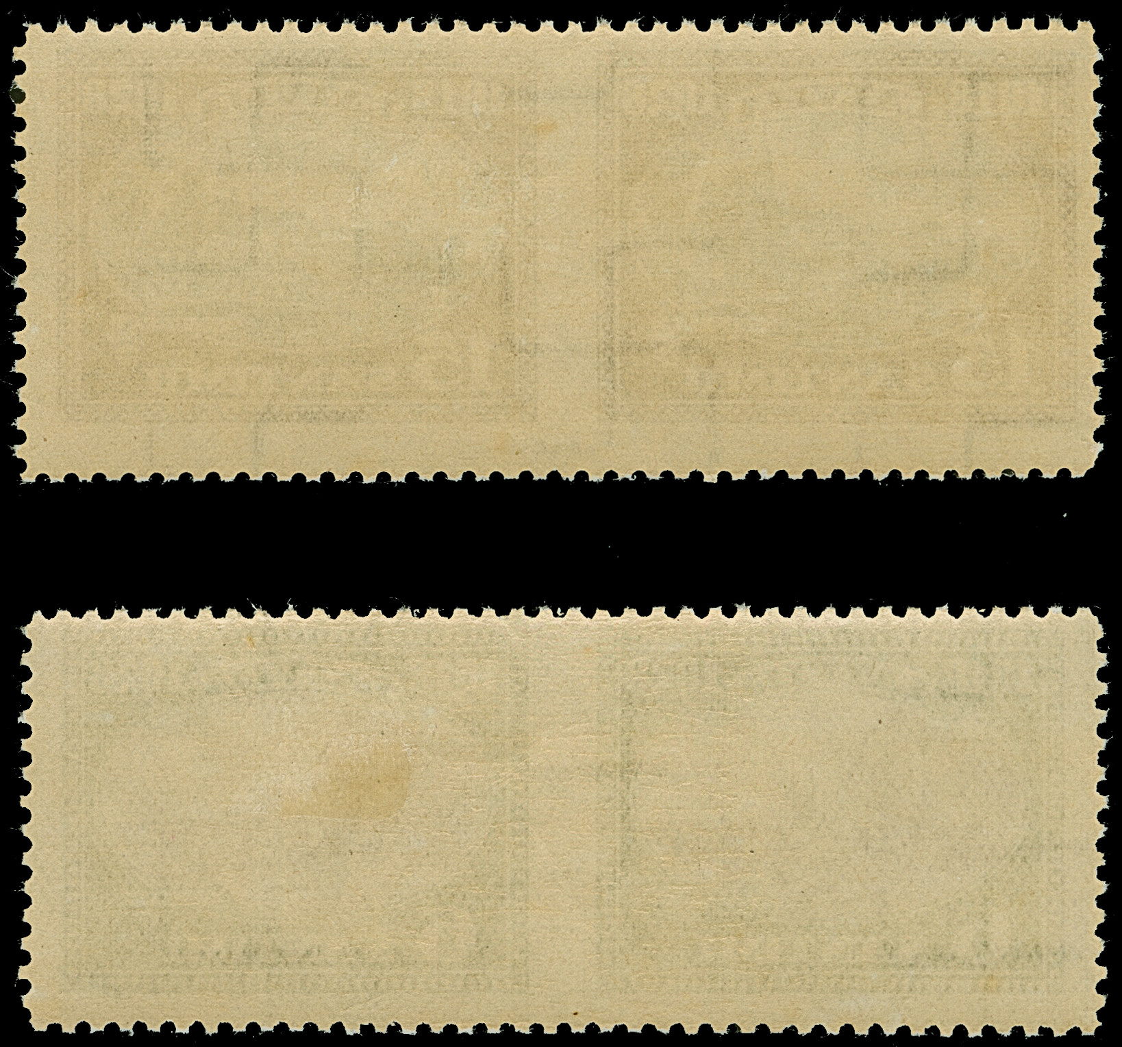 1928, 10th Anniversary of Independence 6 santimi gray-green/lilac and 15 santimi brown/green, each as horizontal pair, imperforated vertically, unused, fine