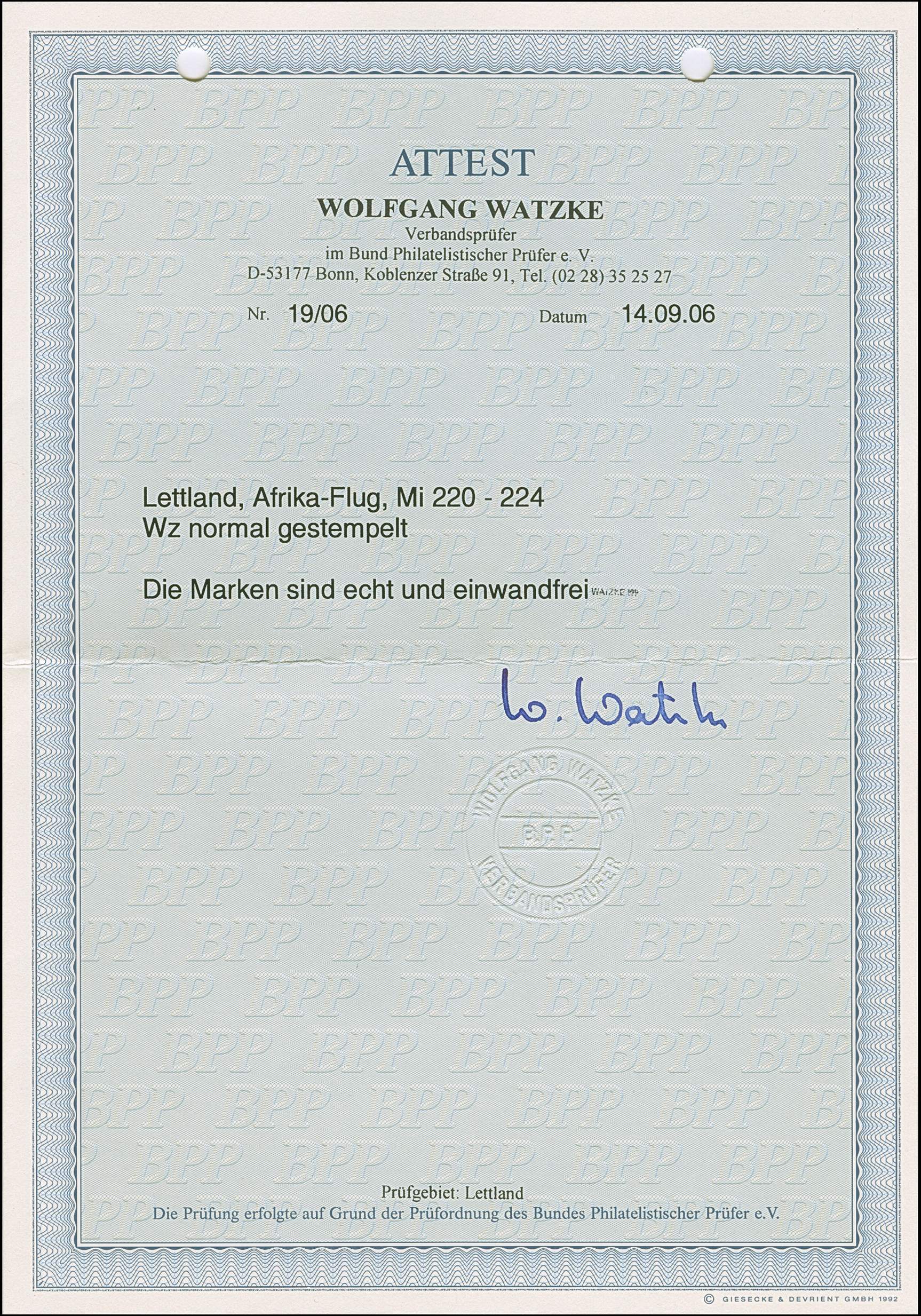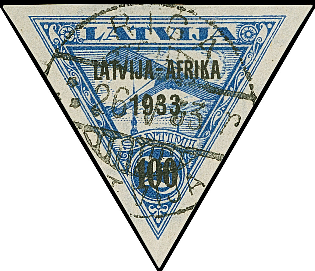 1933, Riga-Bathurst-Flight 10-100 santimi, used with clear cds. “RIGA 26 V 33”, very fine, certificate Watzke BPP (2006)