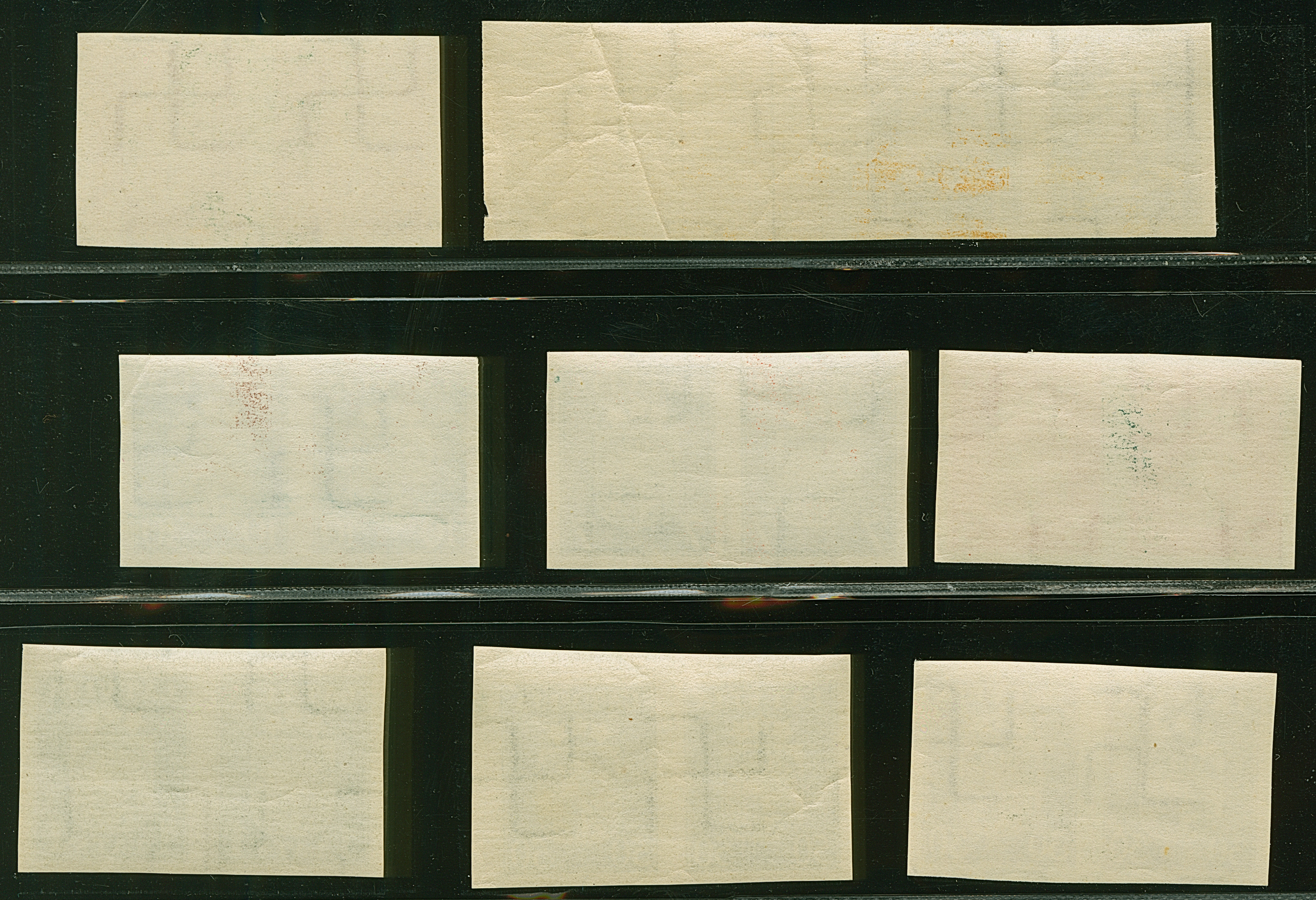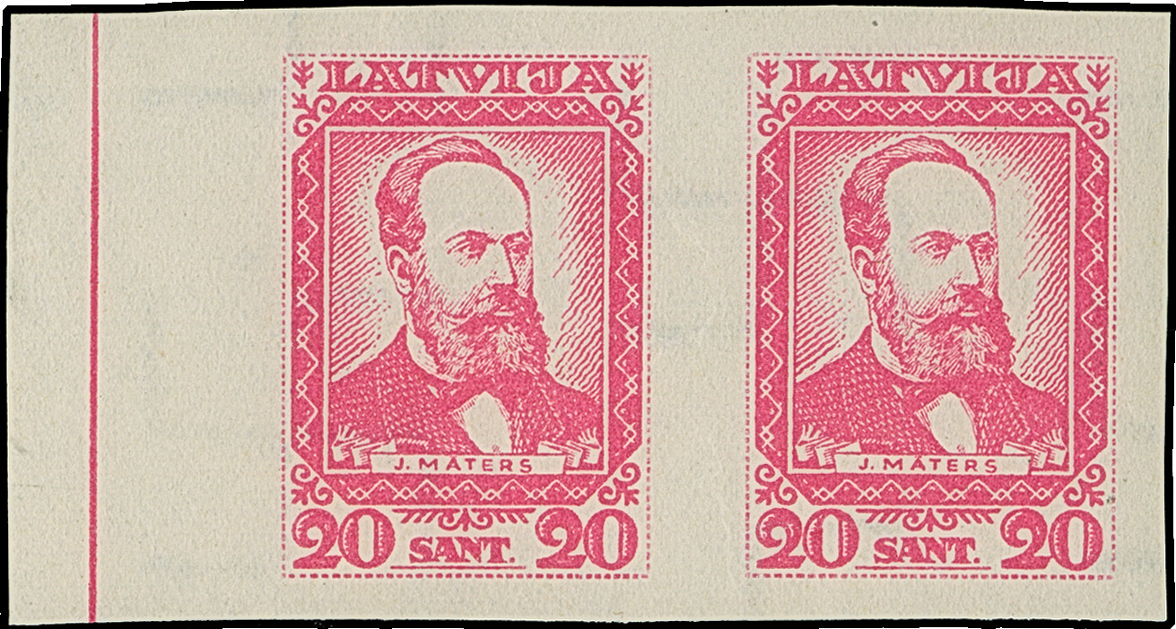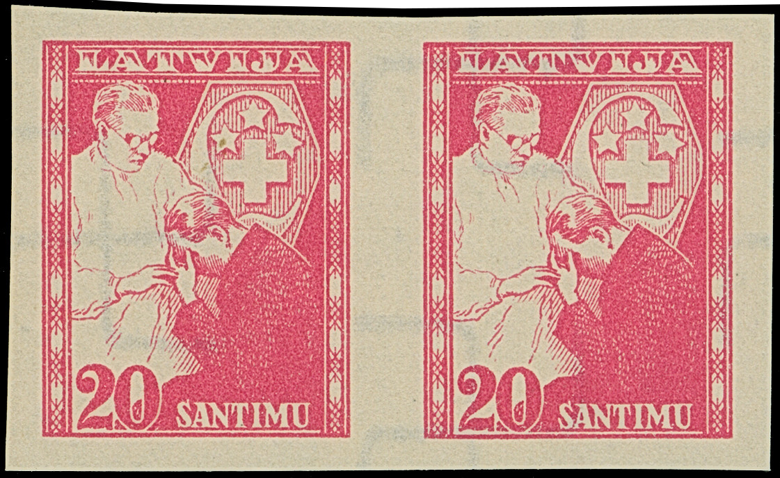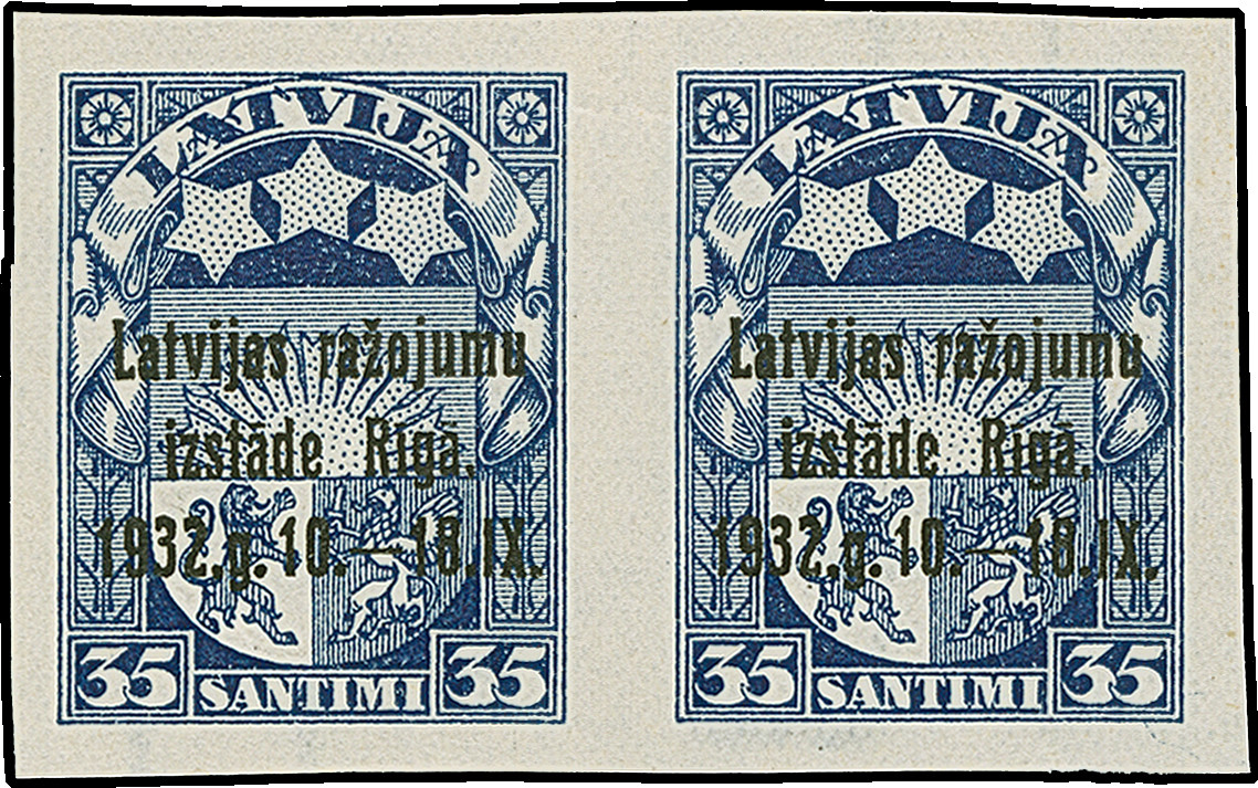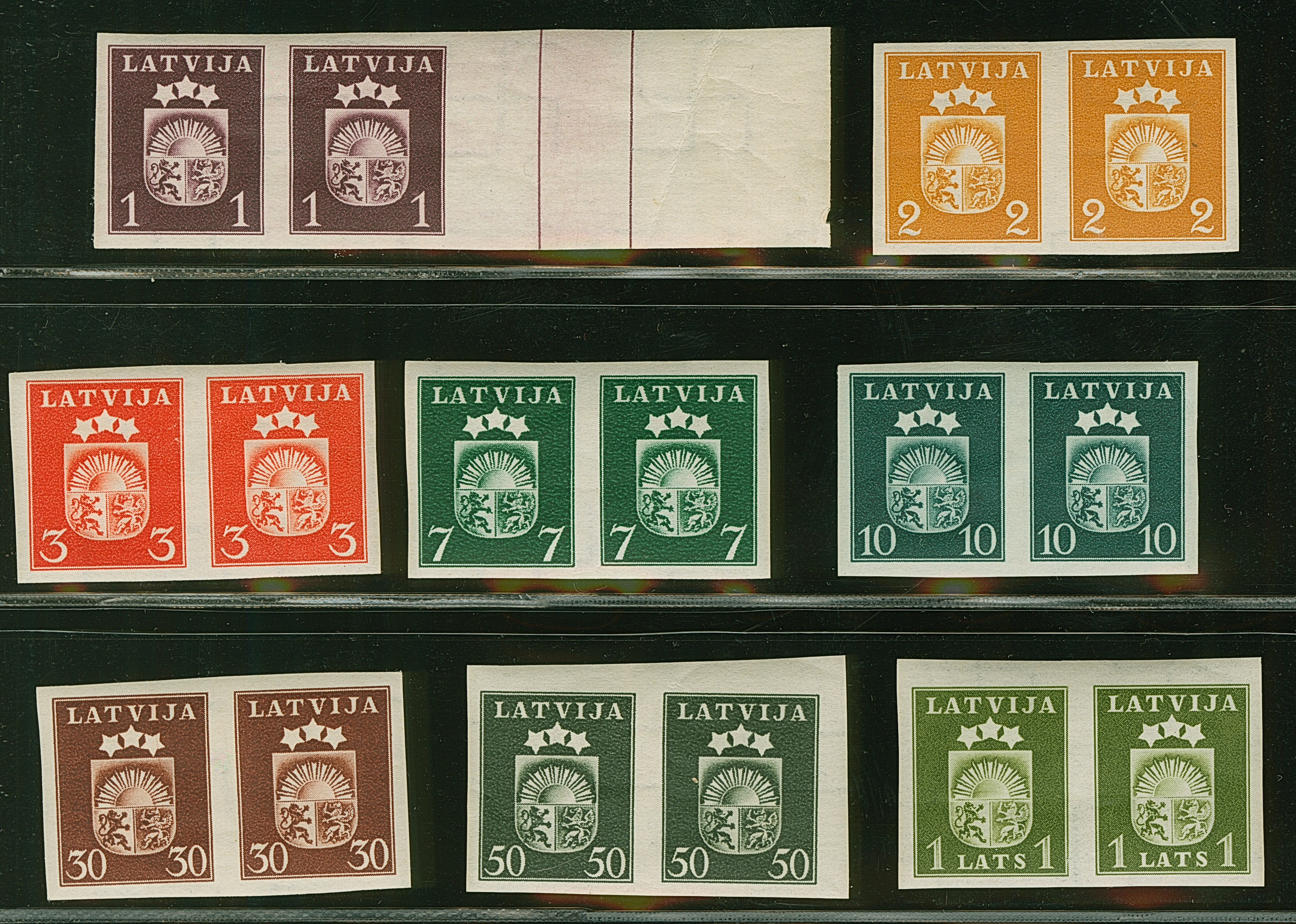 1932, Riga Exhibition 3-35 santimi, archive proofs, imperforated horizontal pairs, without gum, scarce, fine