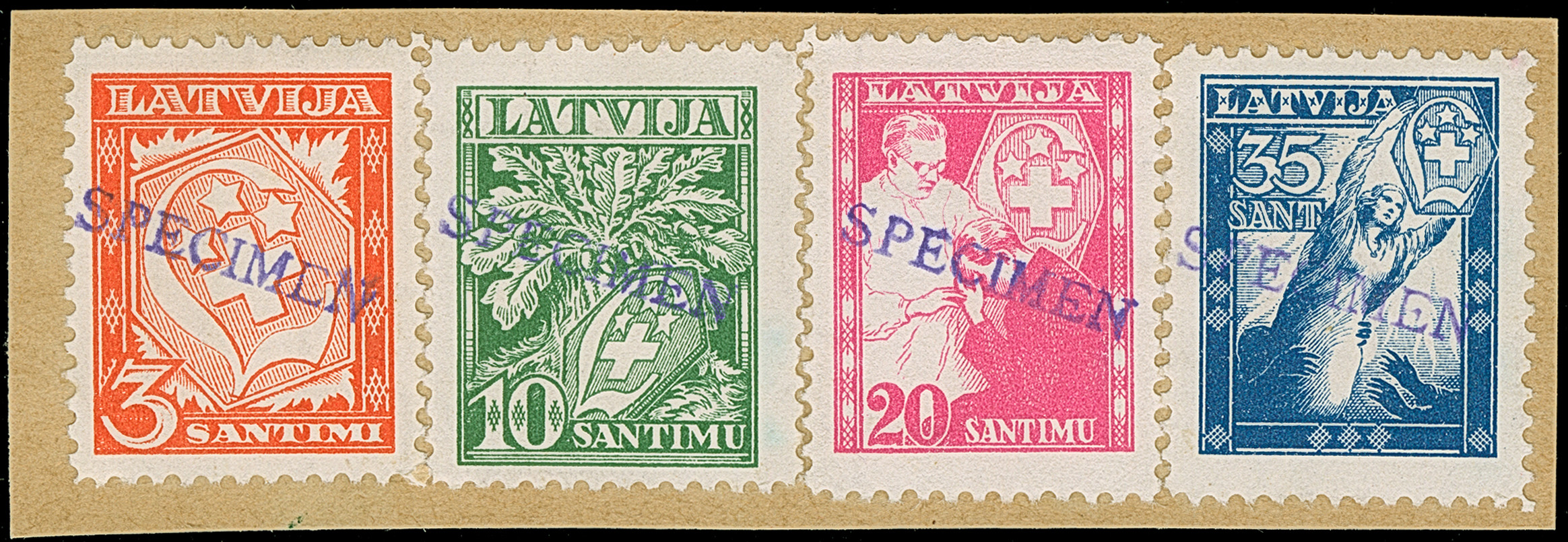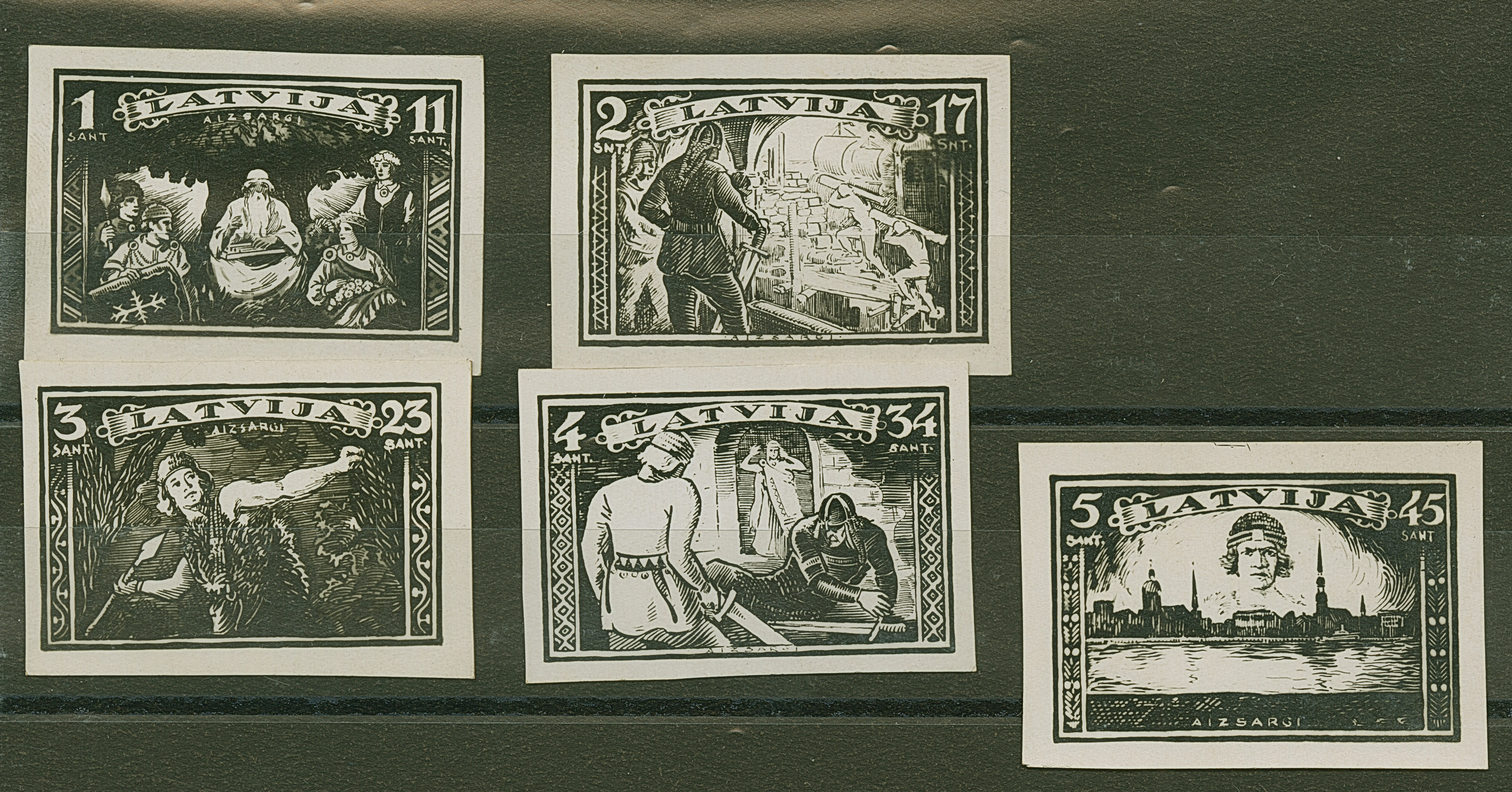 1932, Vigilante Aizsargi, five photo essays in accepted designs and denomination, fine and scarce