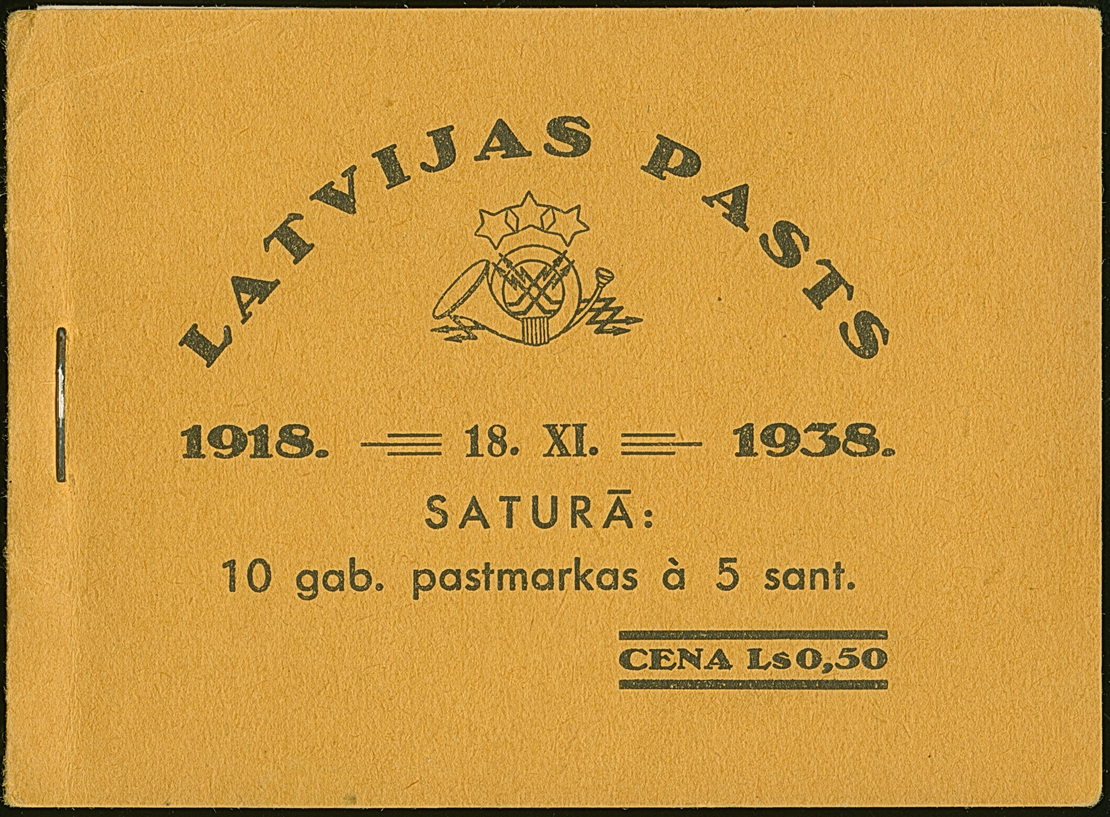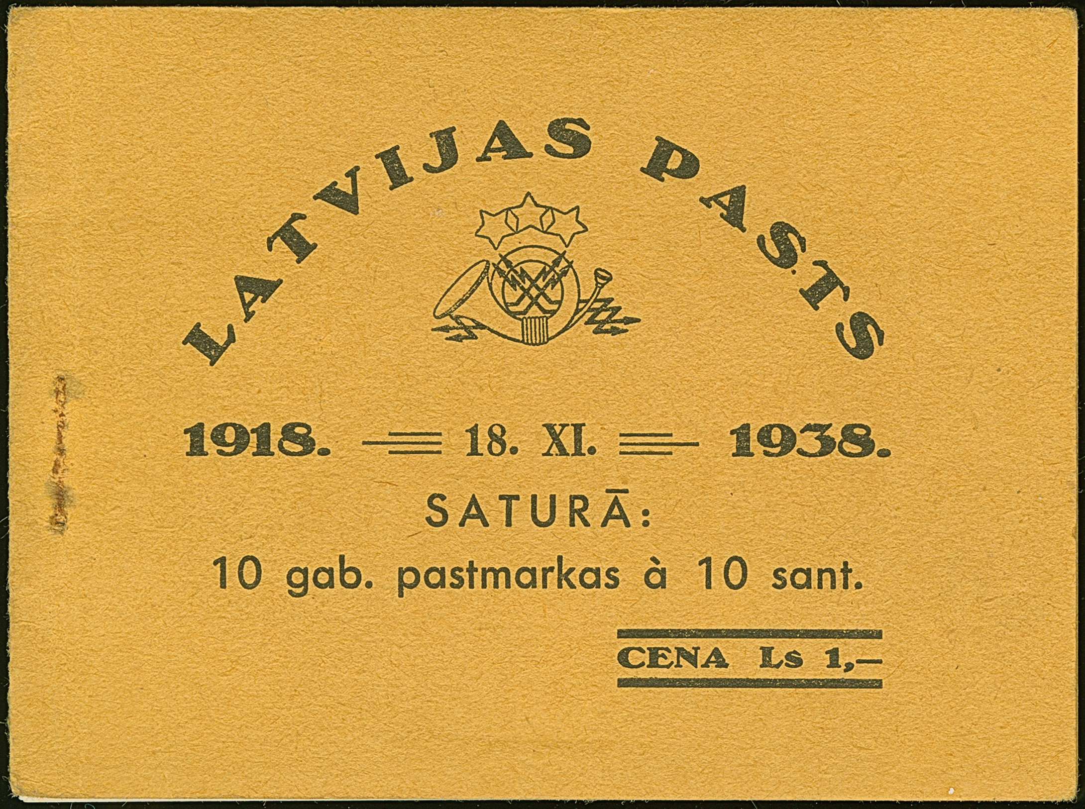 1938, 20th Anniversary of the Republic, booklet with 10 stamps at 10 santimi, taken apart without metal clip, unused, rare, slightly oxidised where the metal clip was, otherwise very fine