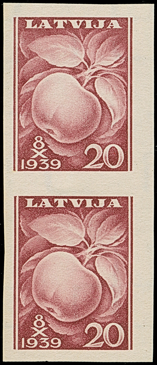 1939 Harvest Festival 20 santimi, imperforated archive proof, vertical pair, without gum, fine