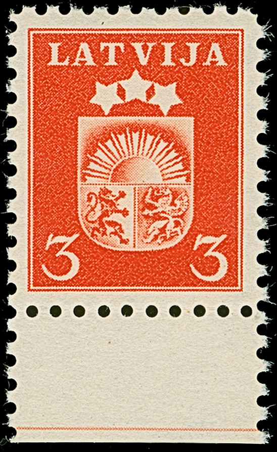 1940, Coat of arms 3 santimi orange, without watermark, mint never hinged, scarce, fine