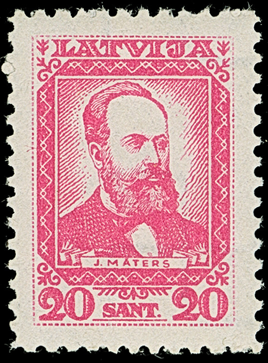 1940, Coat of arms 20 santimi lilac-carmine, without watermark, used, very scarce, fine