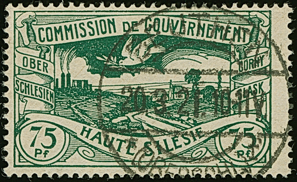 1920, Hüttenwerke 75 Pfennig schwarzgrün, farbfrisch und gut gezähnt, sauber gestempel “BEUTHEN 20.3.21”, tadellos, Fotoattest Gruber BPP (2005)